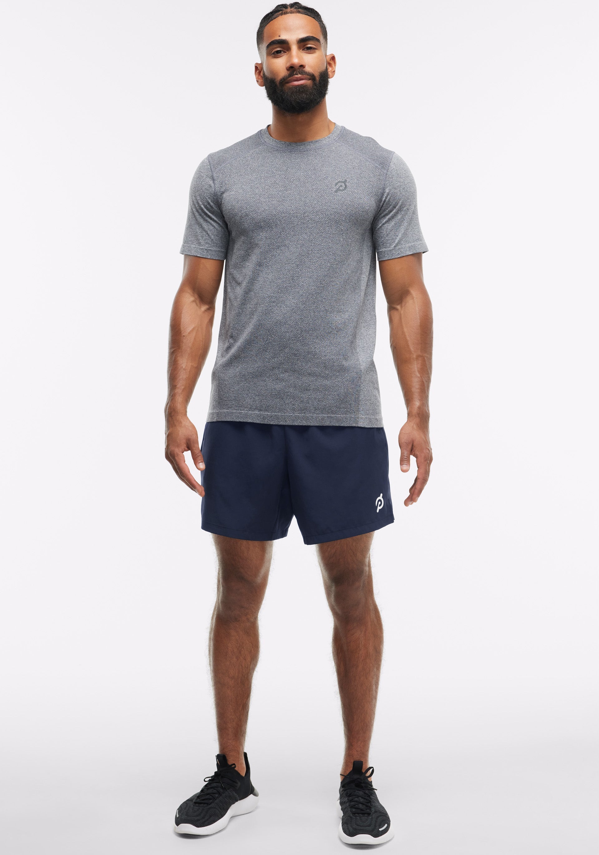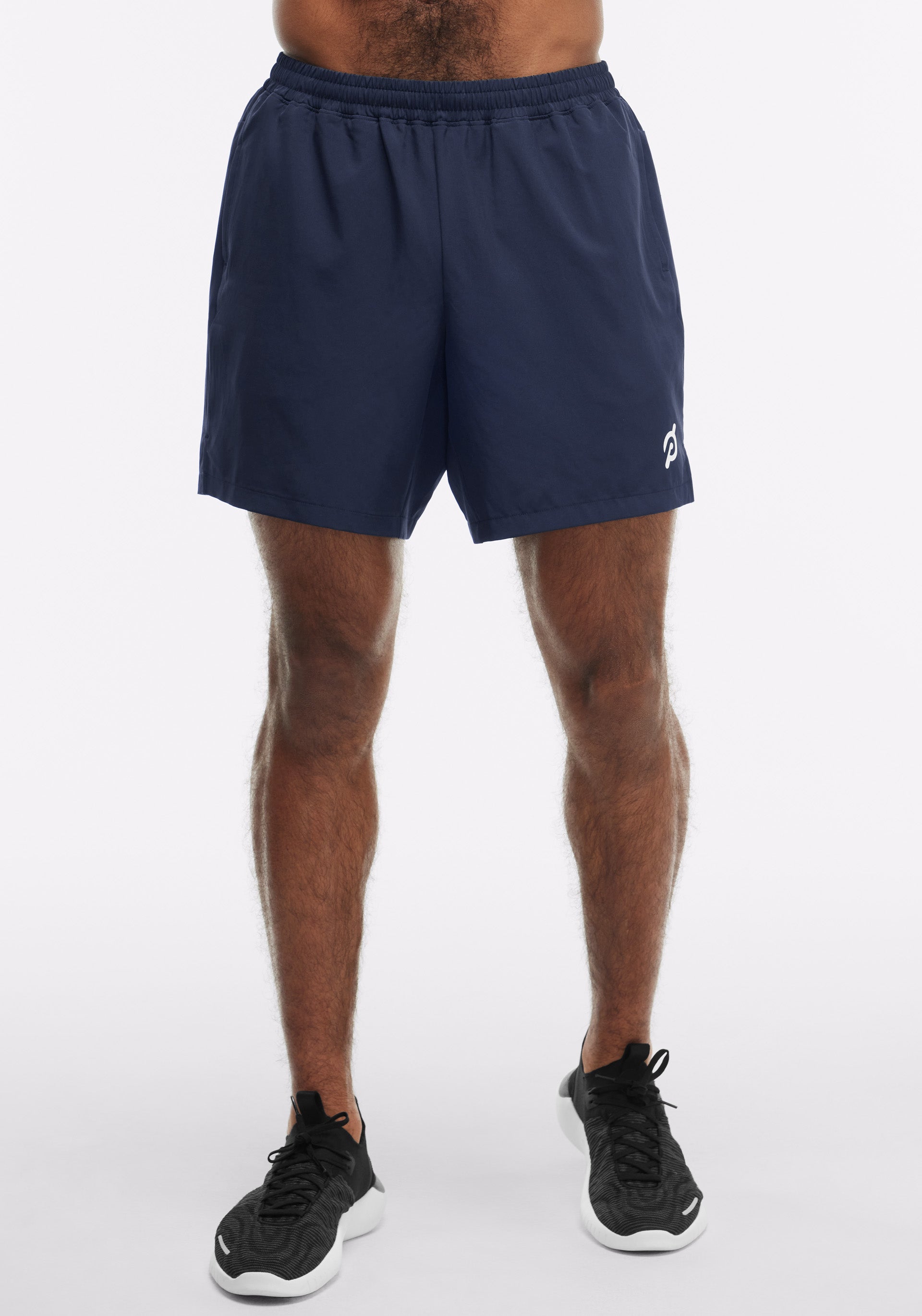 •  7" inseam lined short with encased elastic waistband, functional gusset, back yoke detailing, and on seam front pockets