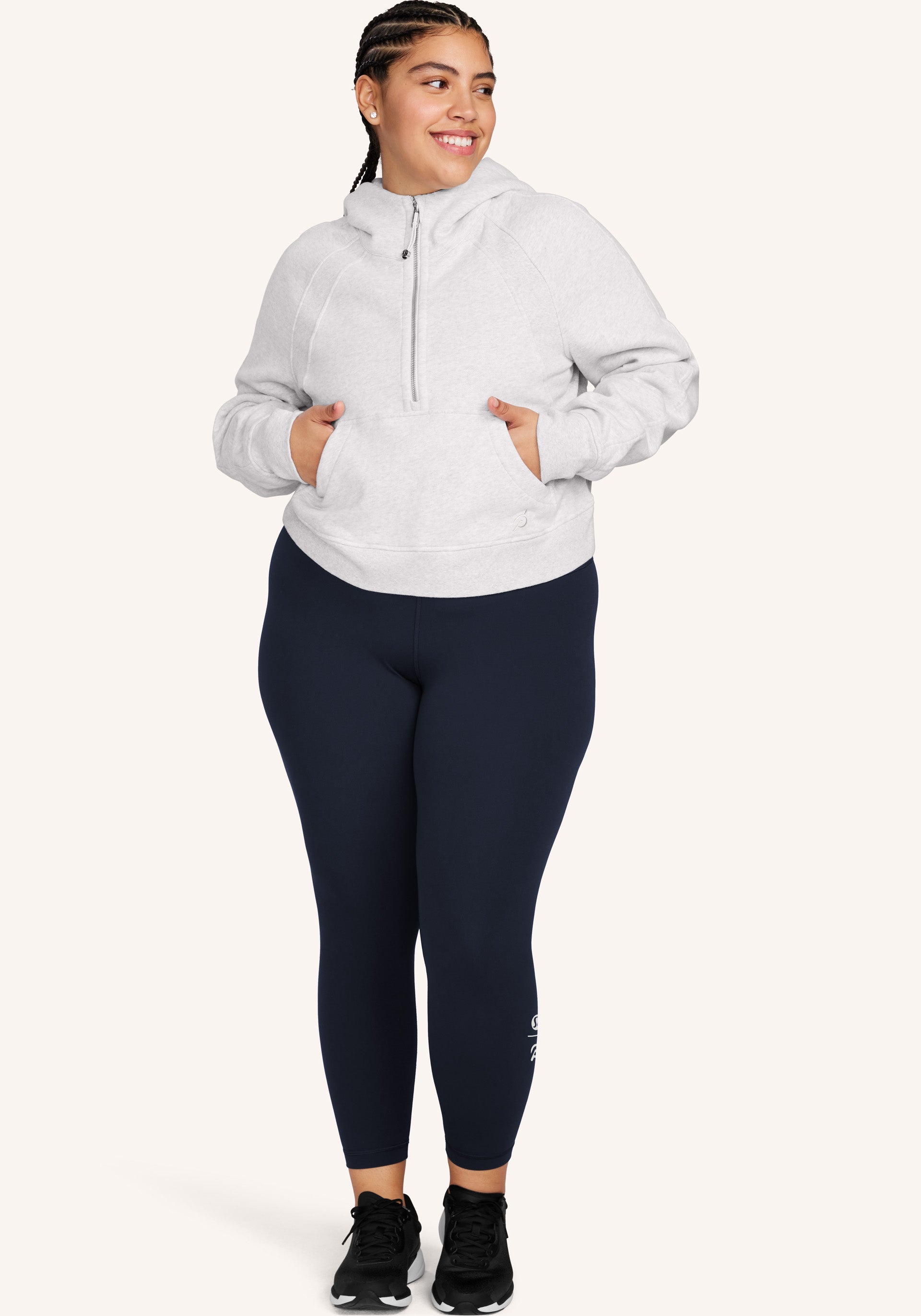 High rise, 25” inseam legging with hidden waistband pocket fits a card or a key, and won’t get in your way