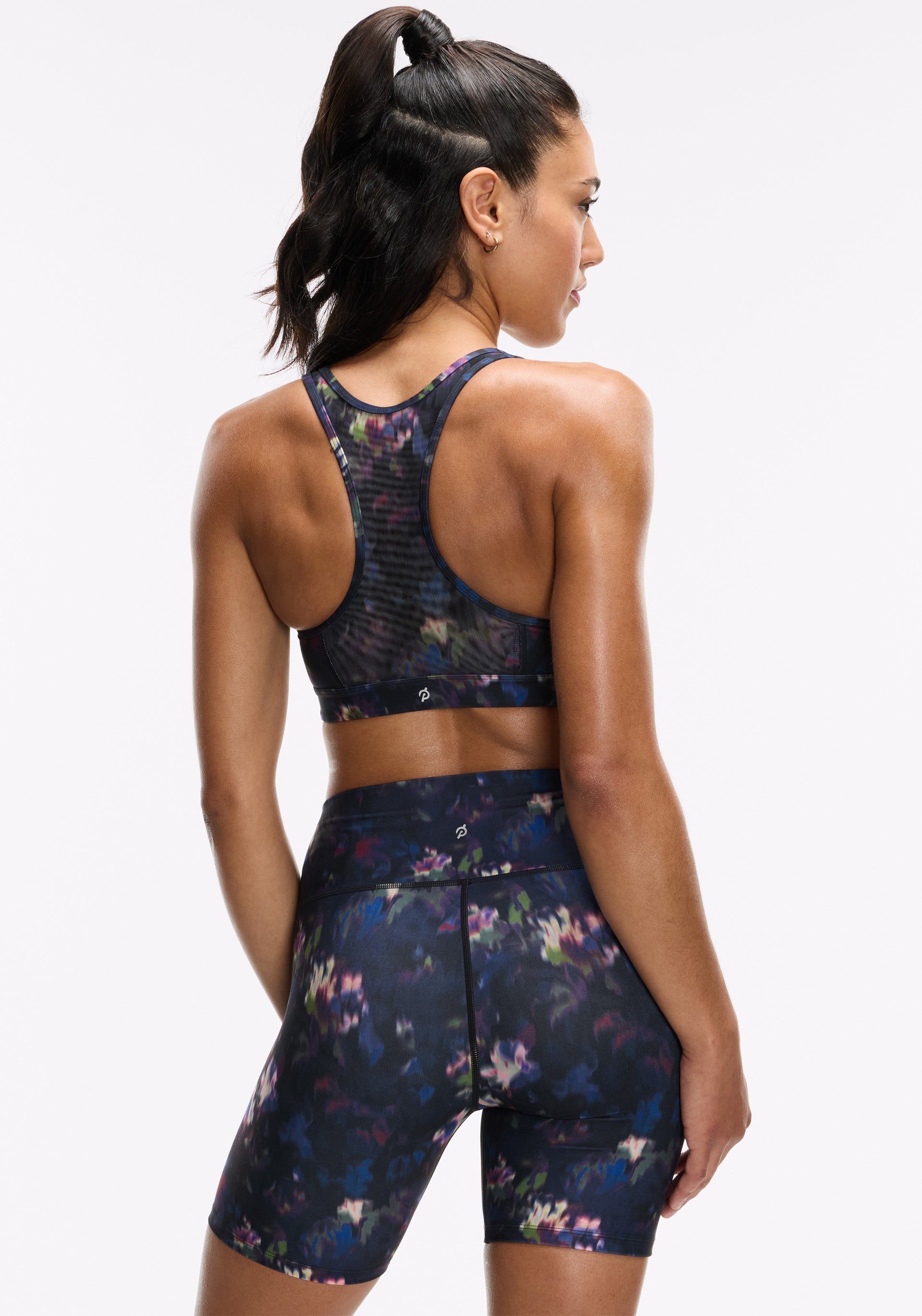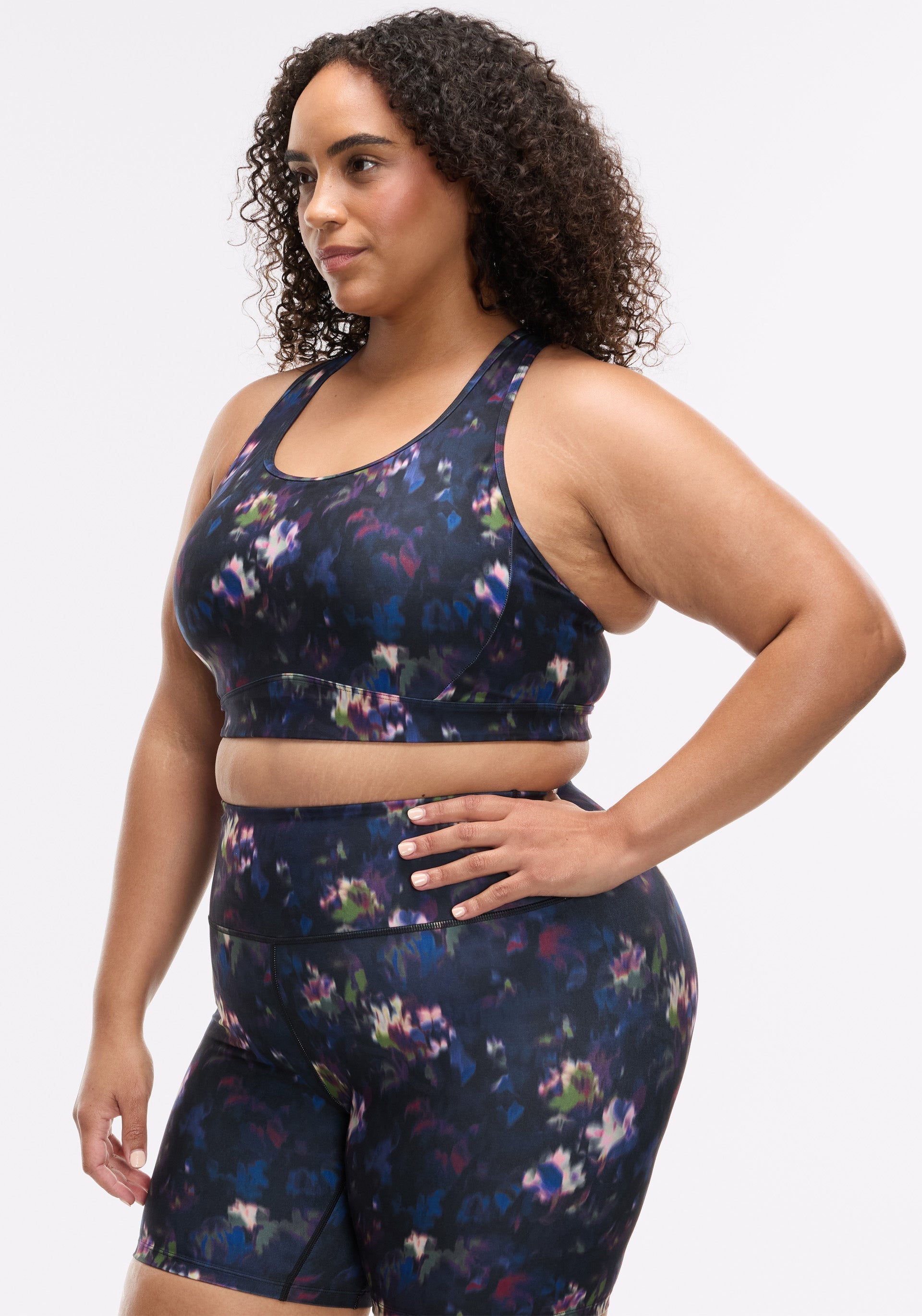 Yes — medium to high support, with removable pads and moisture-wicking stretch fabric.