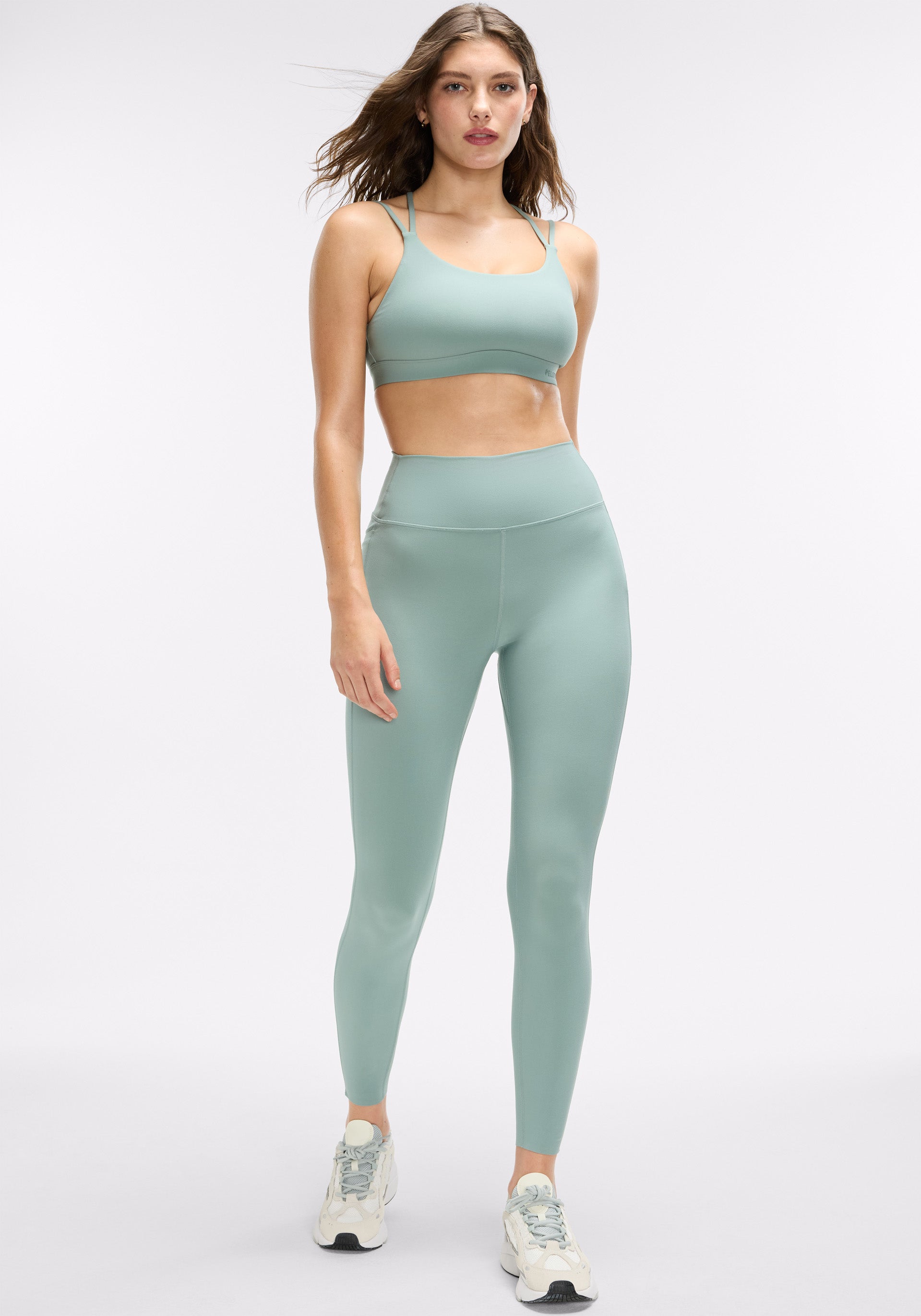 • High rise, 25" inseam legging with medium compression, side pockets, and elongated gusset