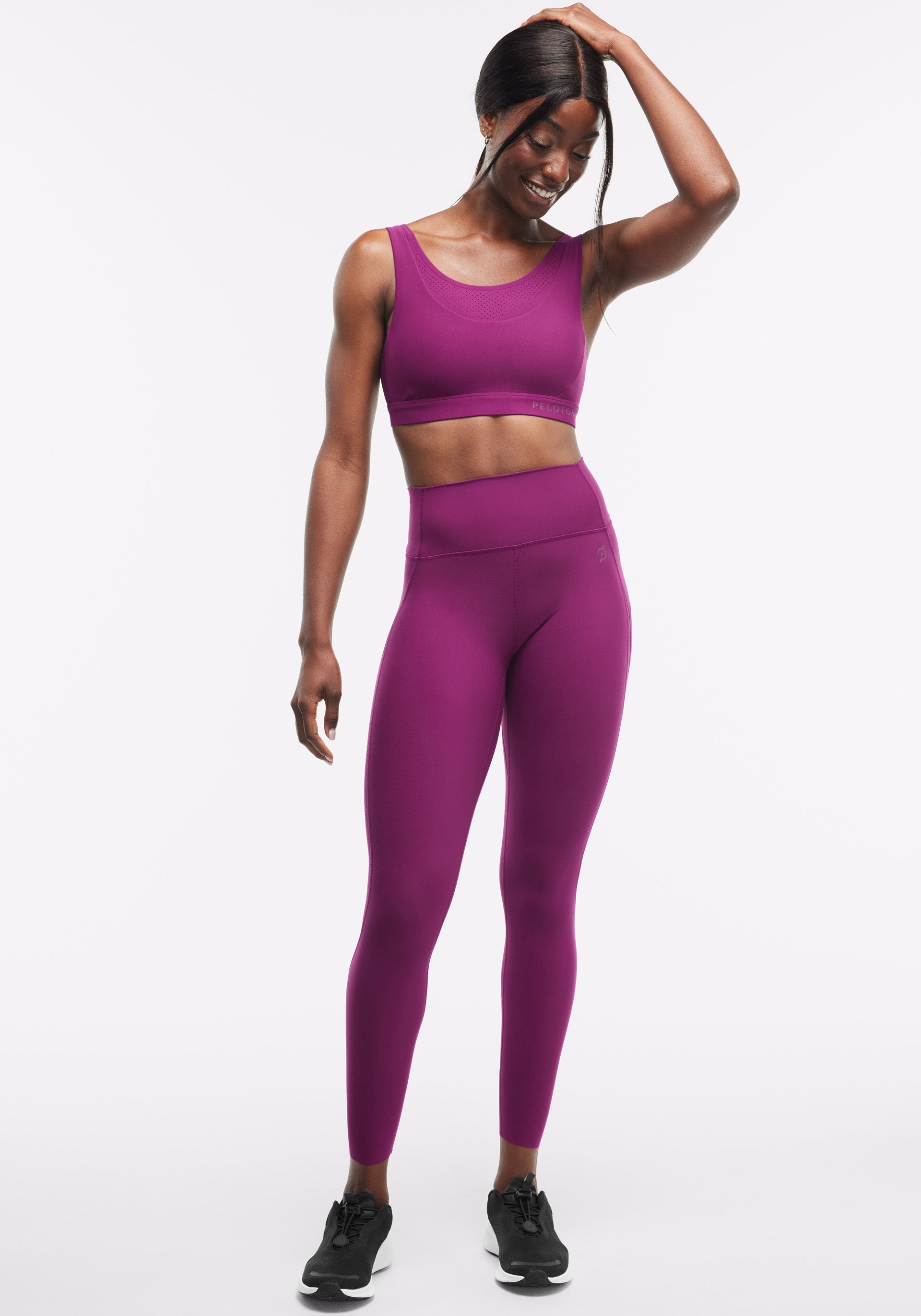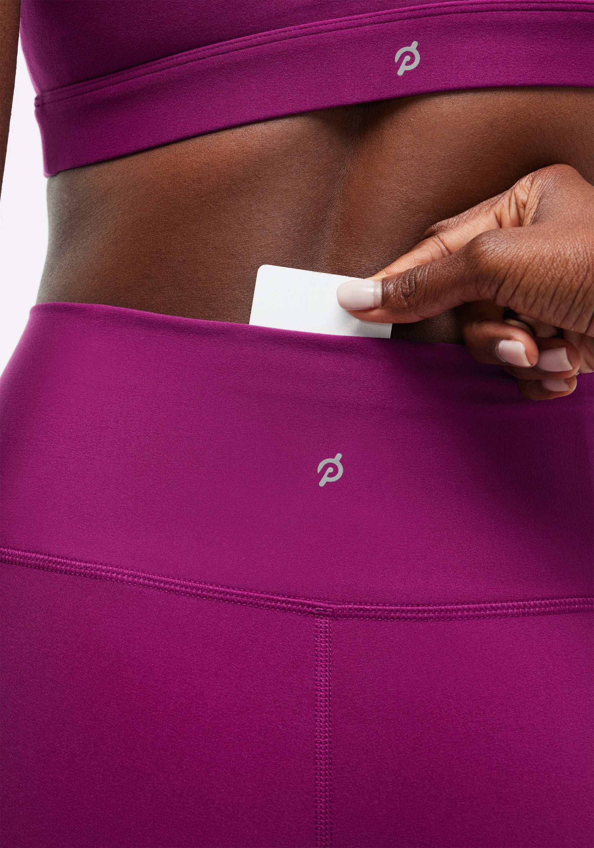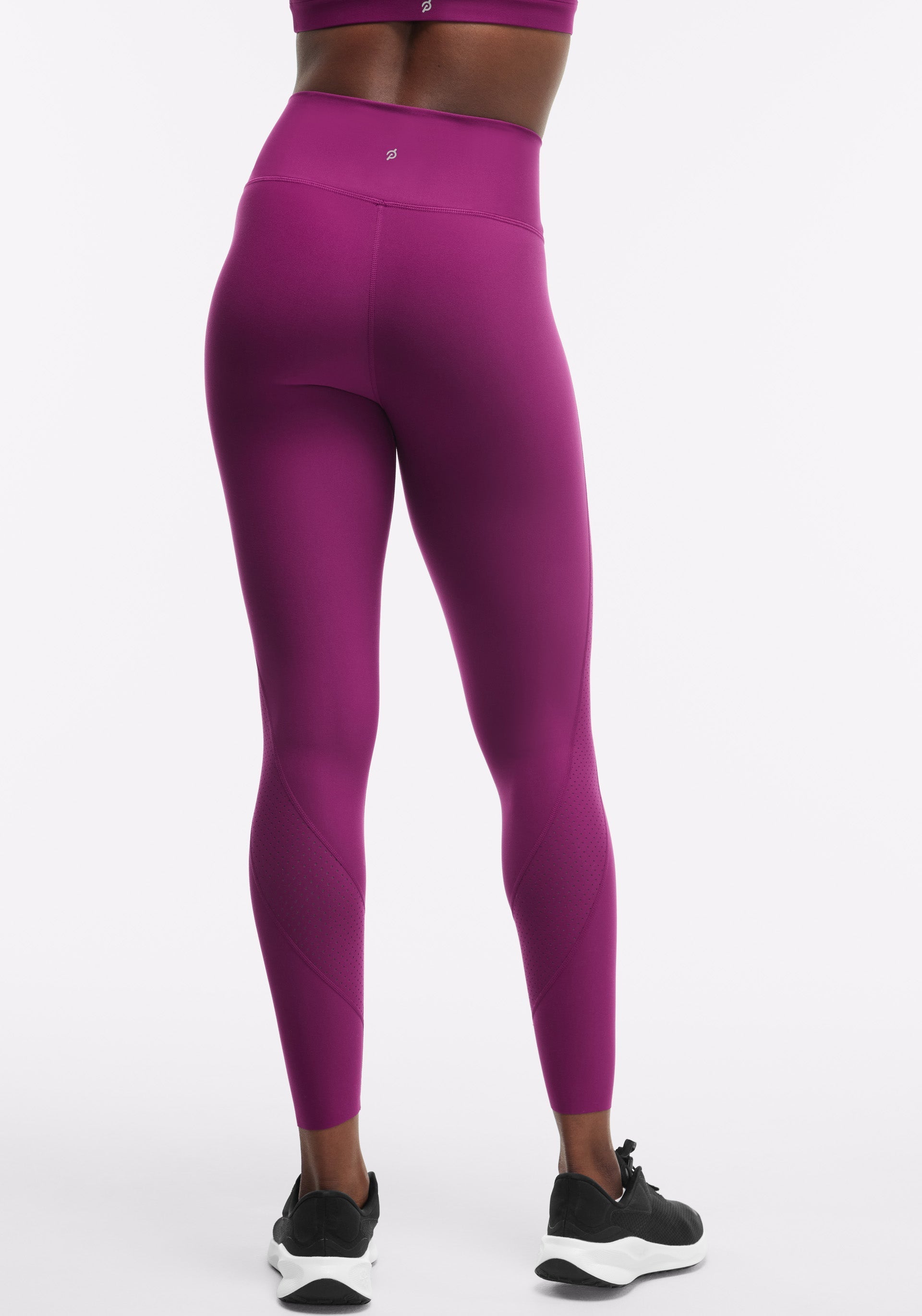 •  High rise, 25" inseam legging with laser perforated ventilation at side, back stash pocket, and elongated gusset