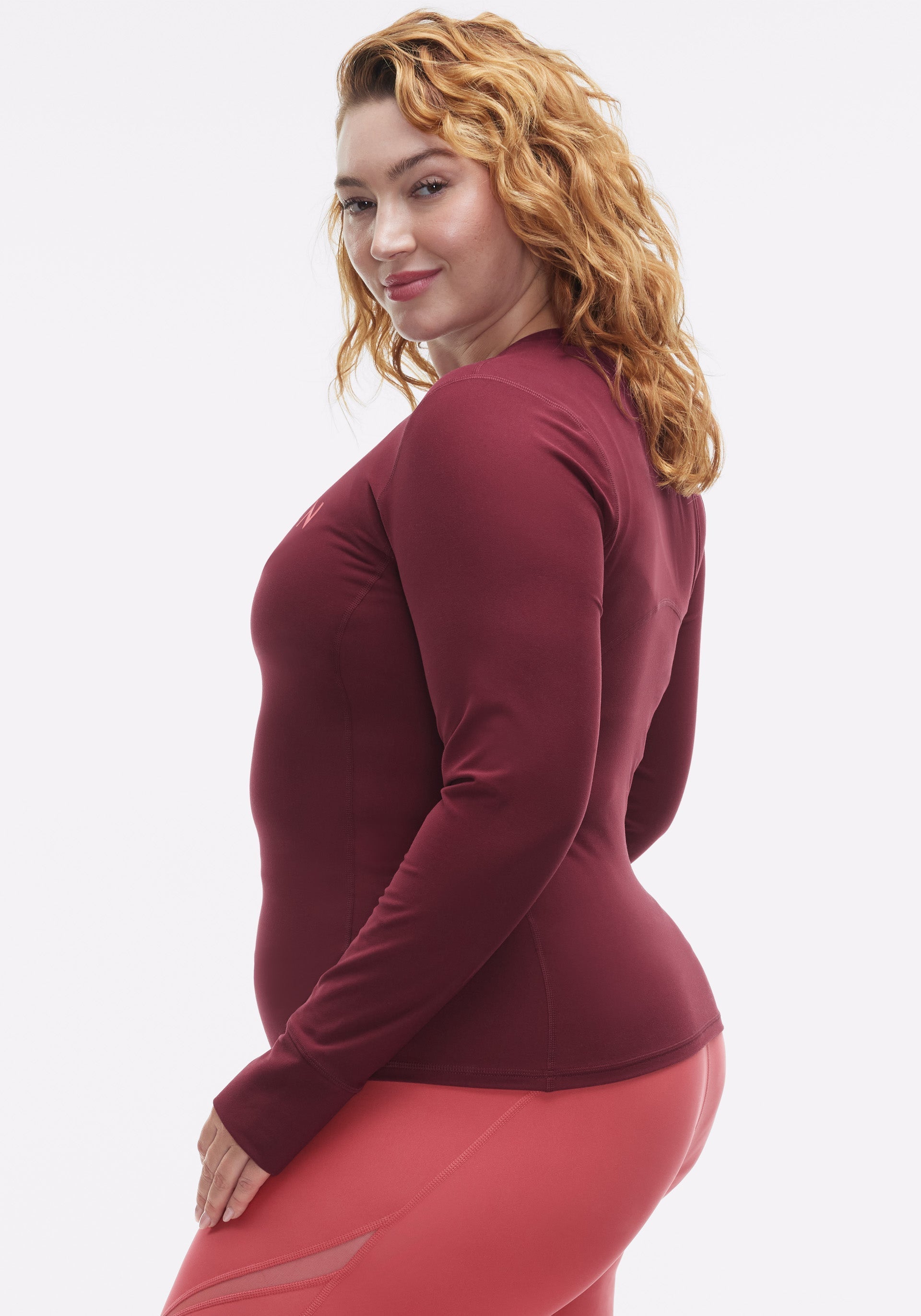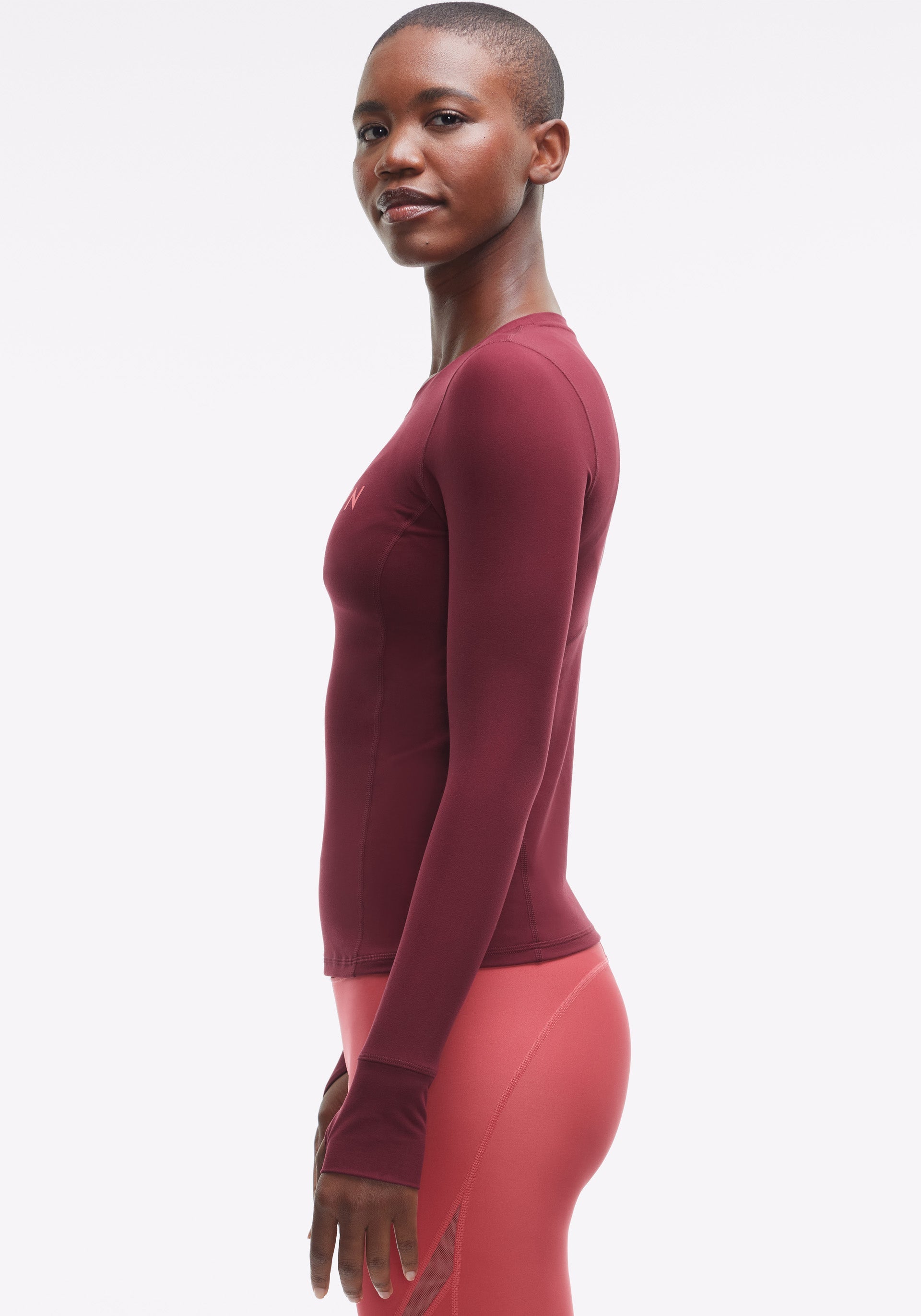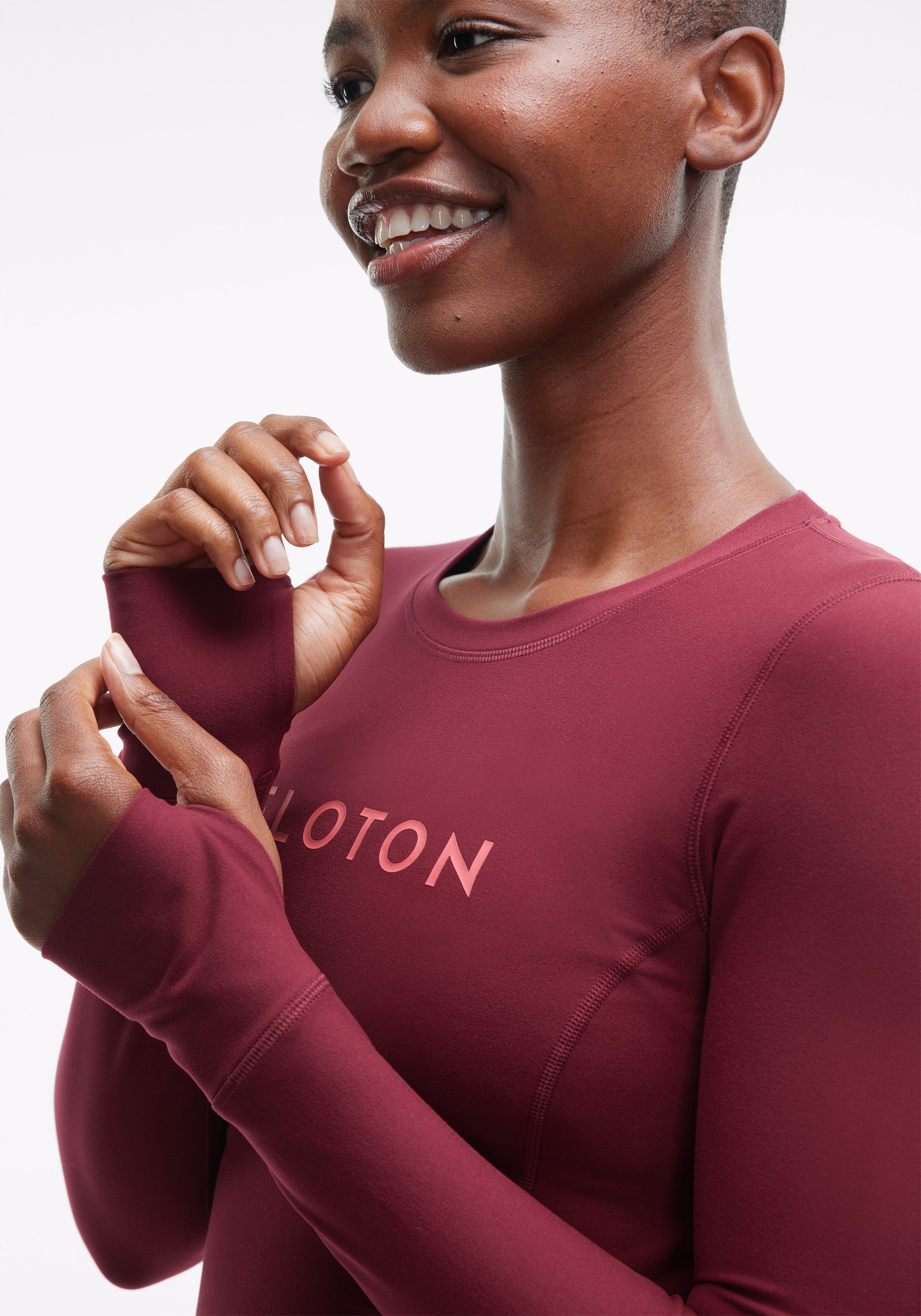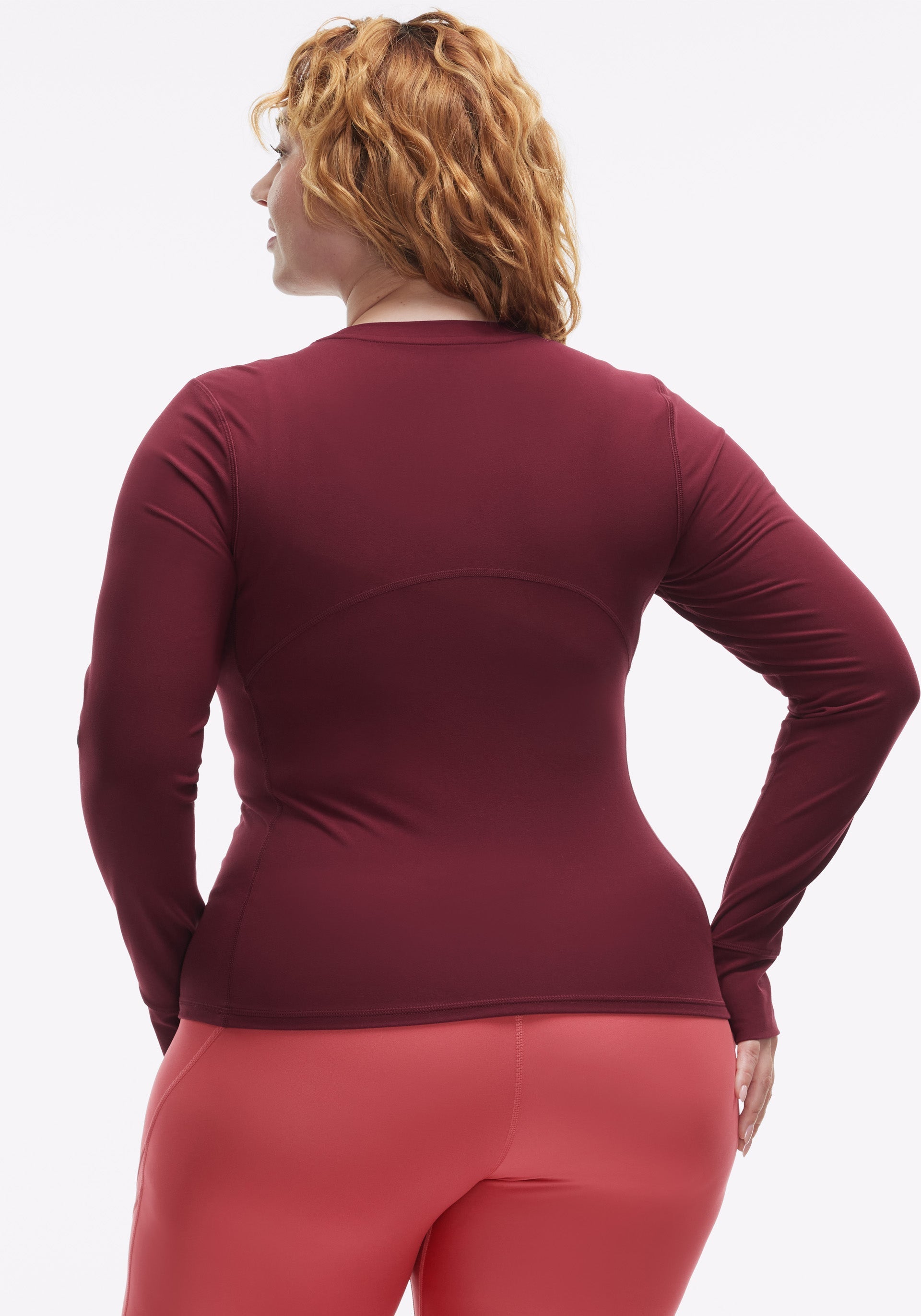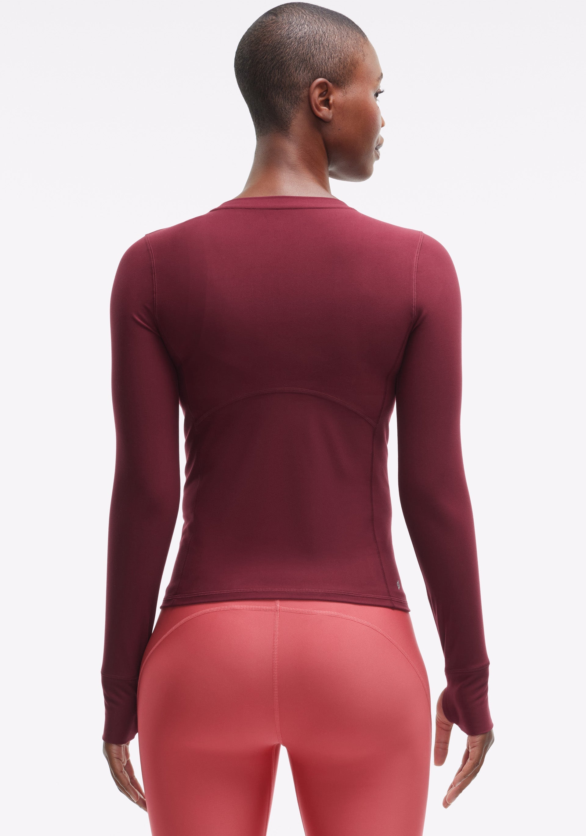 • Crew neck, long sleeve with princess seams for shaping and thumbholes