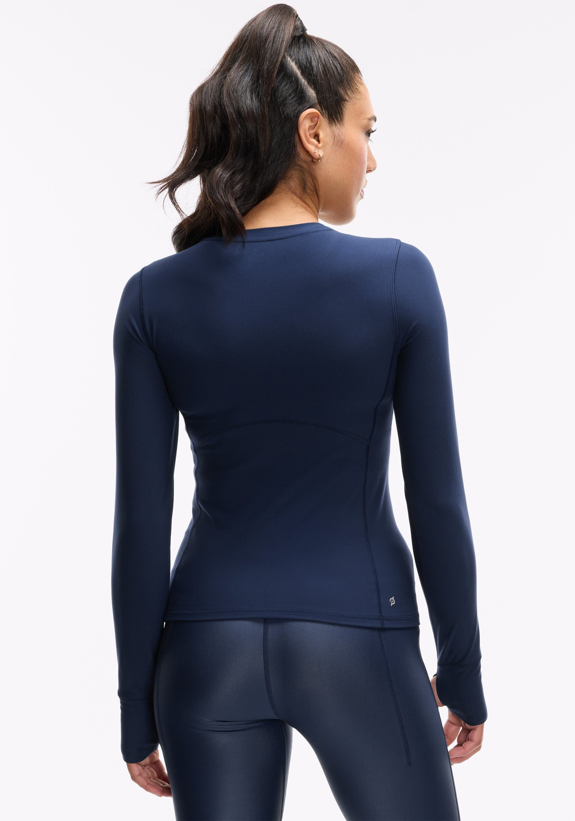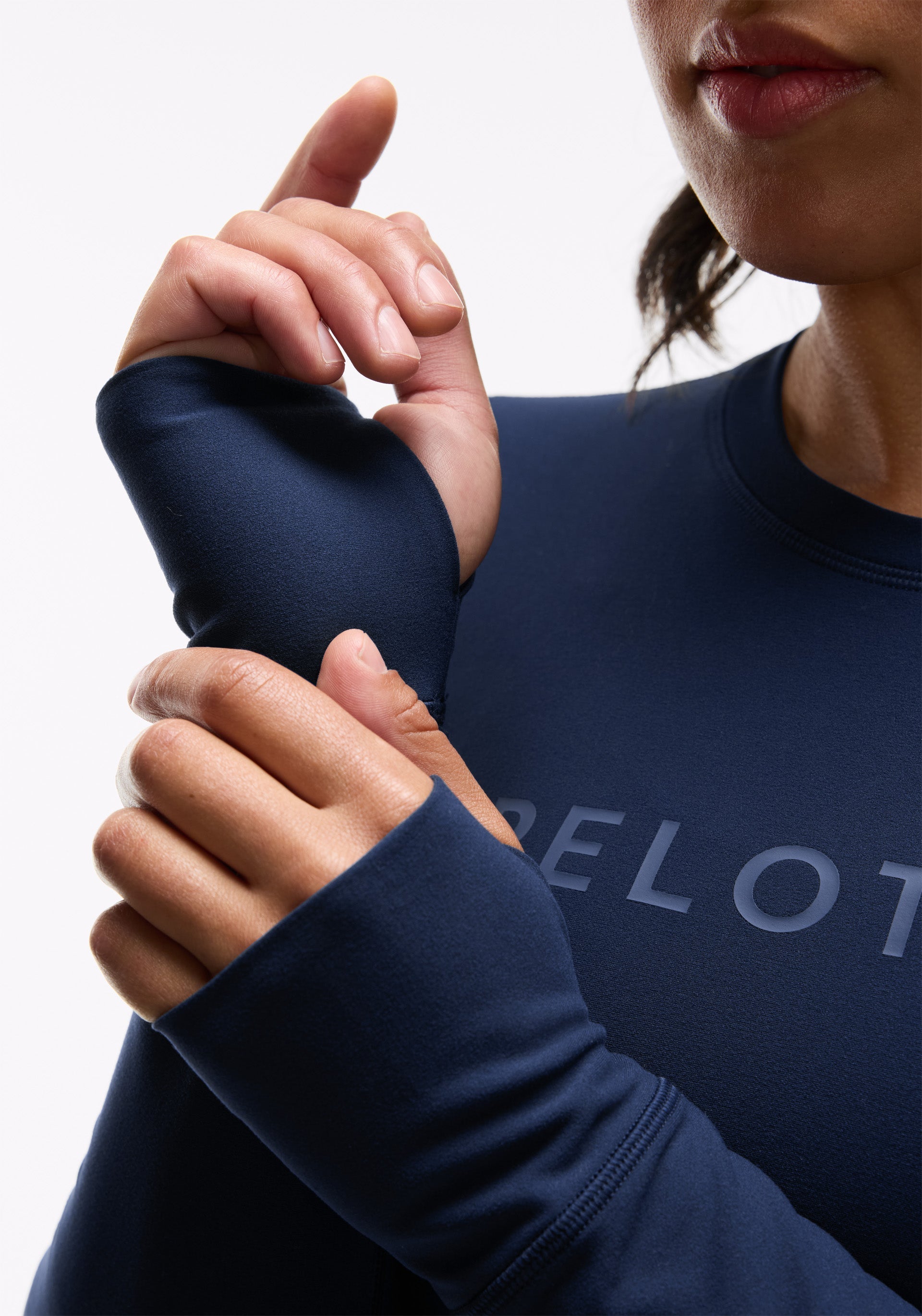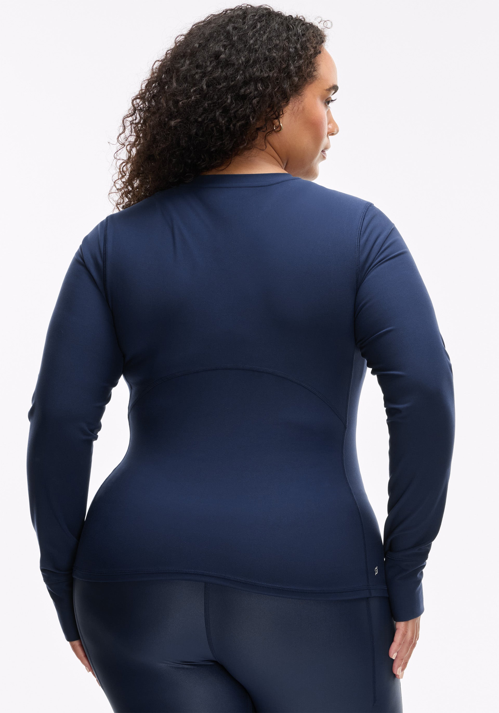 • Crew neck, long sleeve with princess seams for shaping and thumbholes