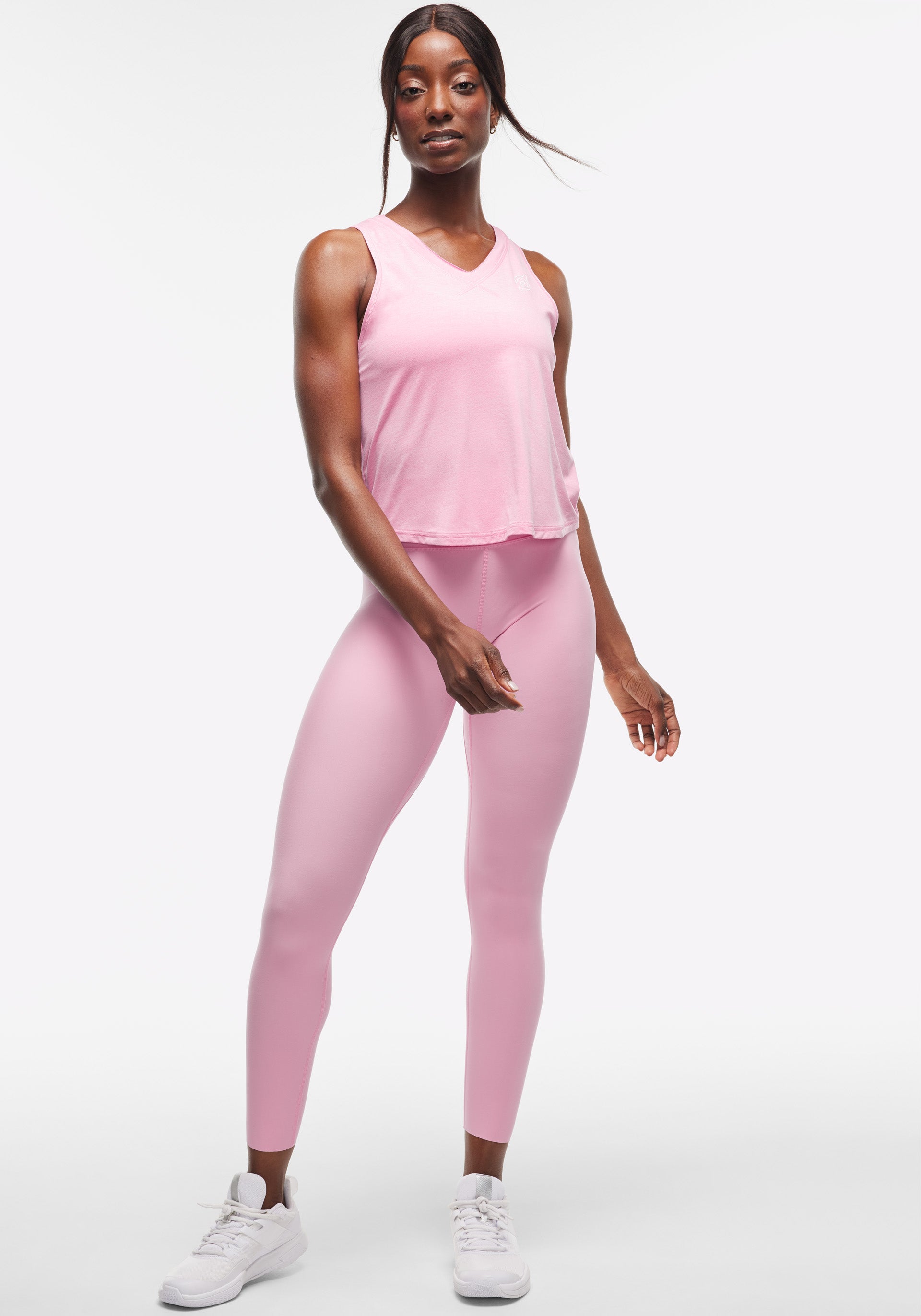 • High rise, 25” inseam legging with medium compression, back stash pocket, and elongated gusset