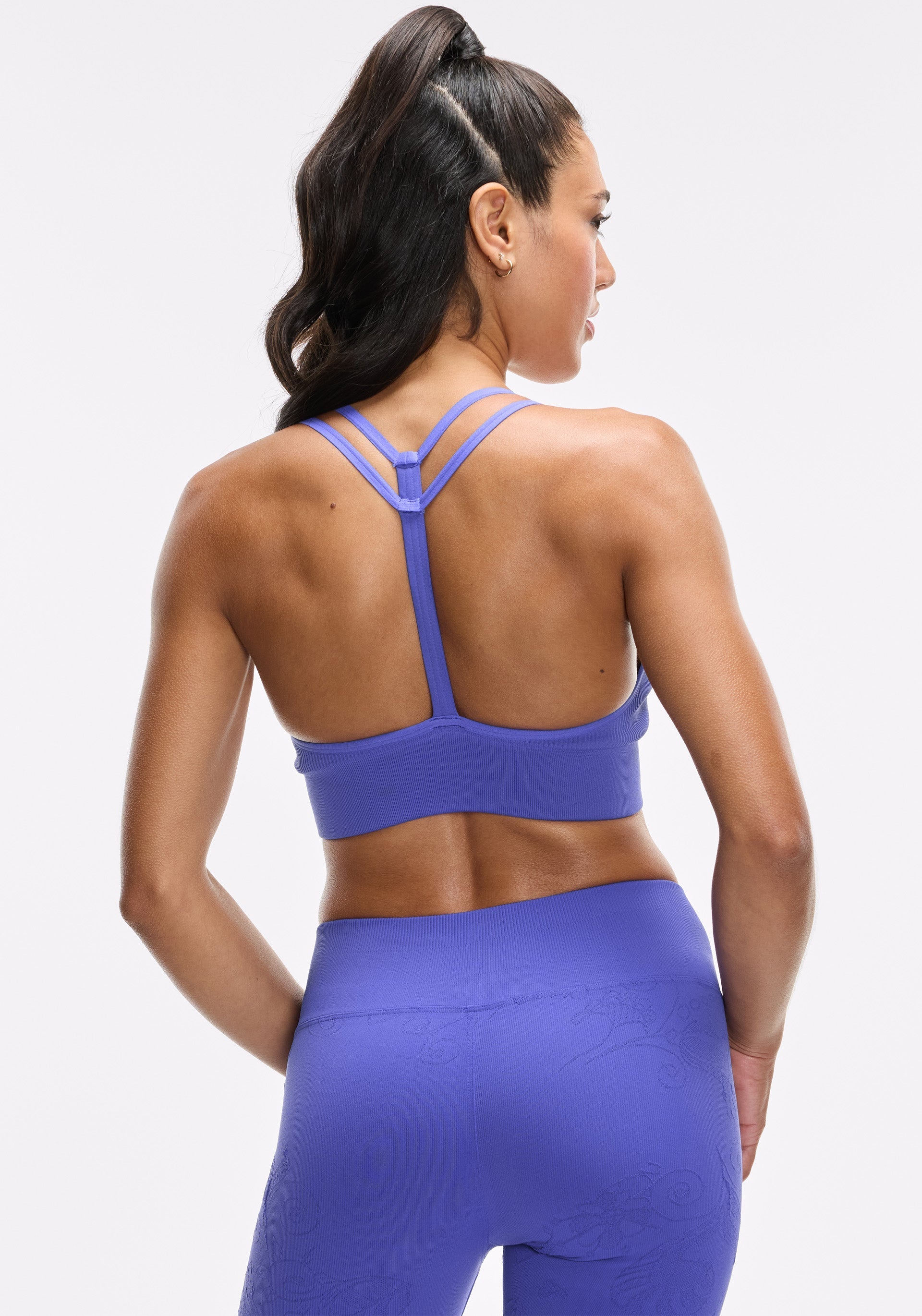 • With its back strap detail and plunging neckline, this bra is the perfect way to feel extra confident at your next sweat session. The all-over rib details add a touch of playfulness, while the removable cups provide the support you need. The Chloe Bra is like a secret weapon - you'll feel like a total bombshell every time you wear it!