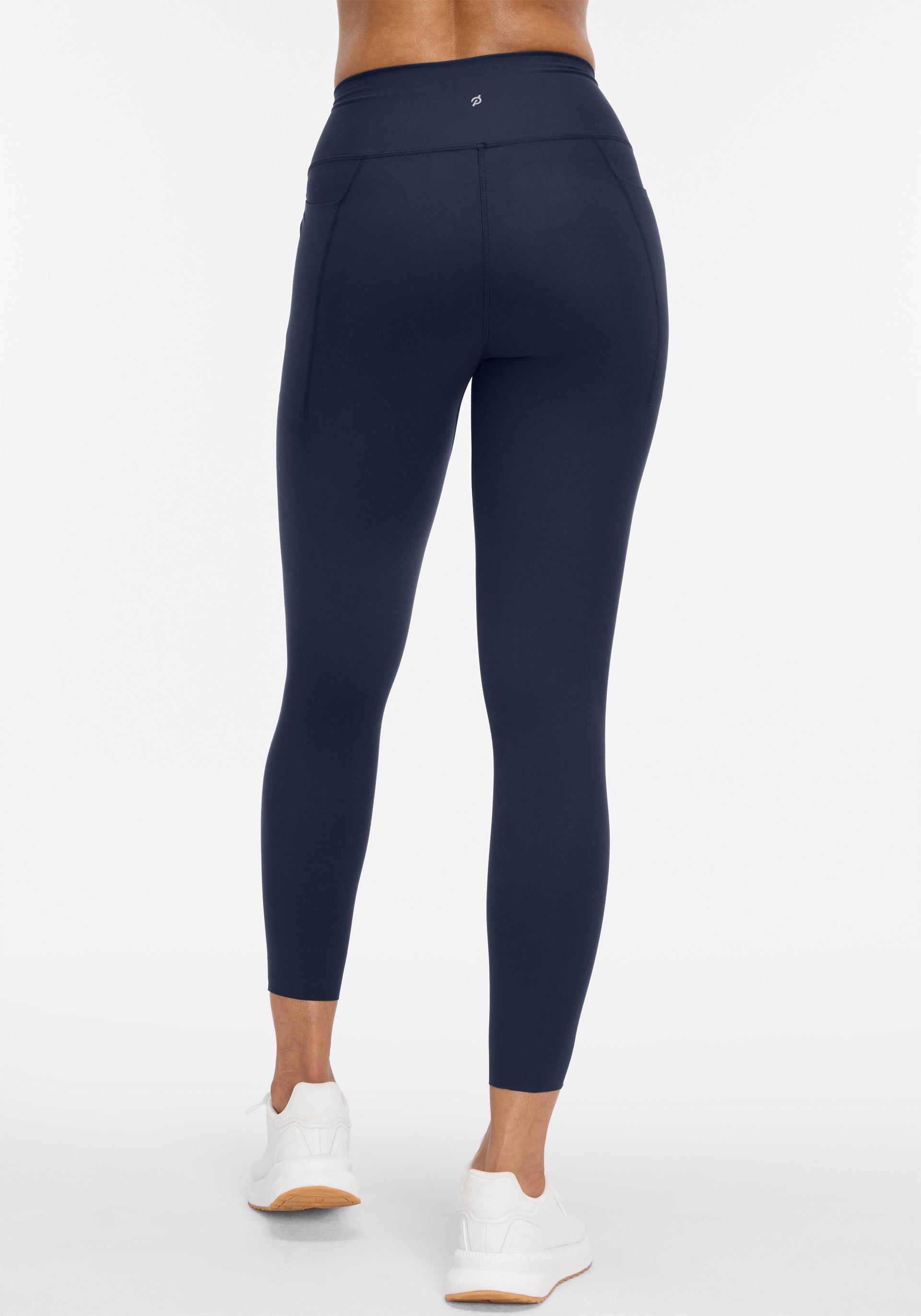 High rise, 25" inseam legging with medium compression, side pockets, and elongated gusset