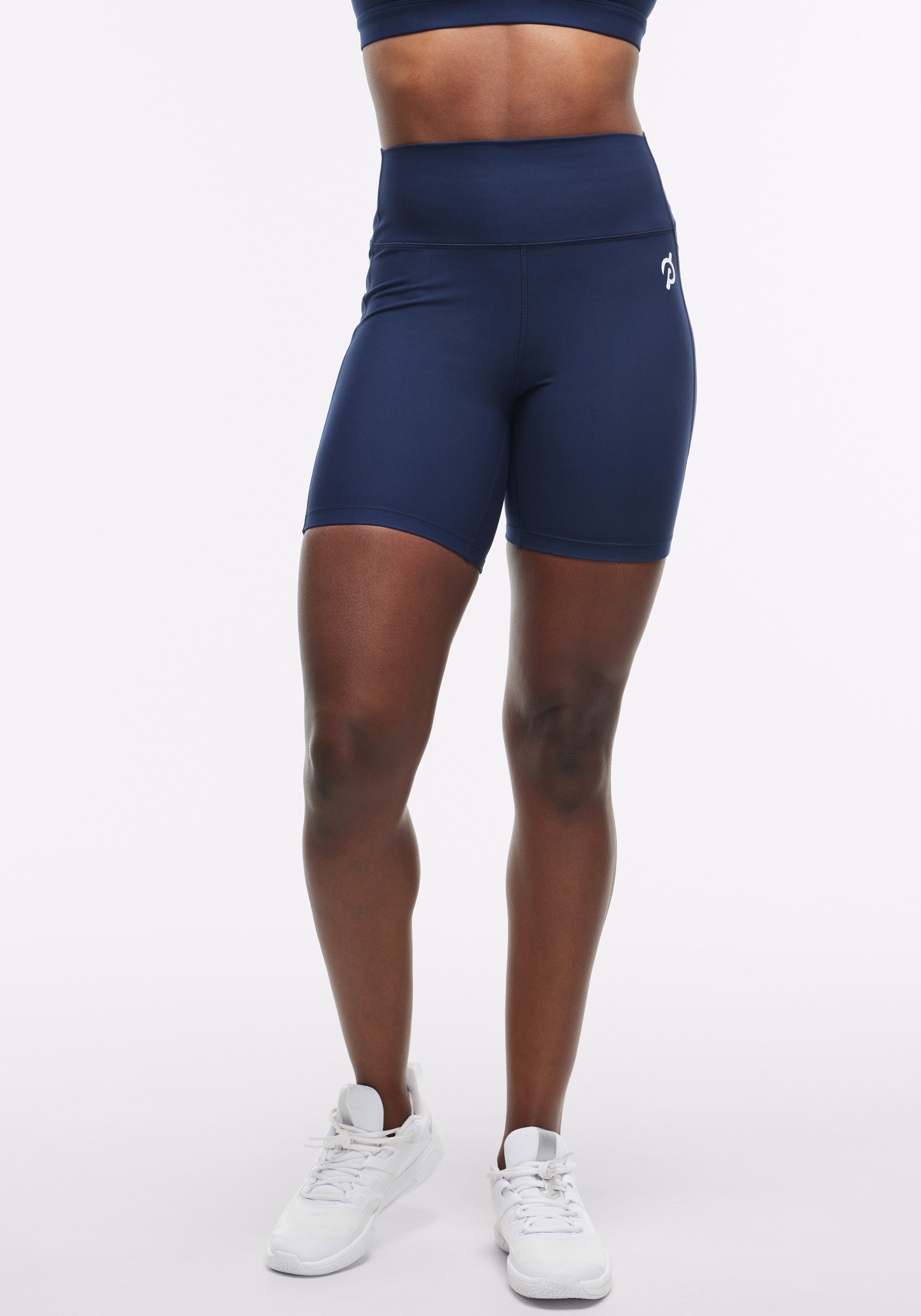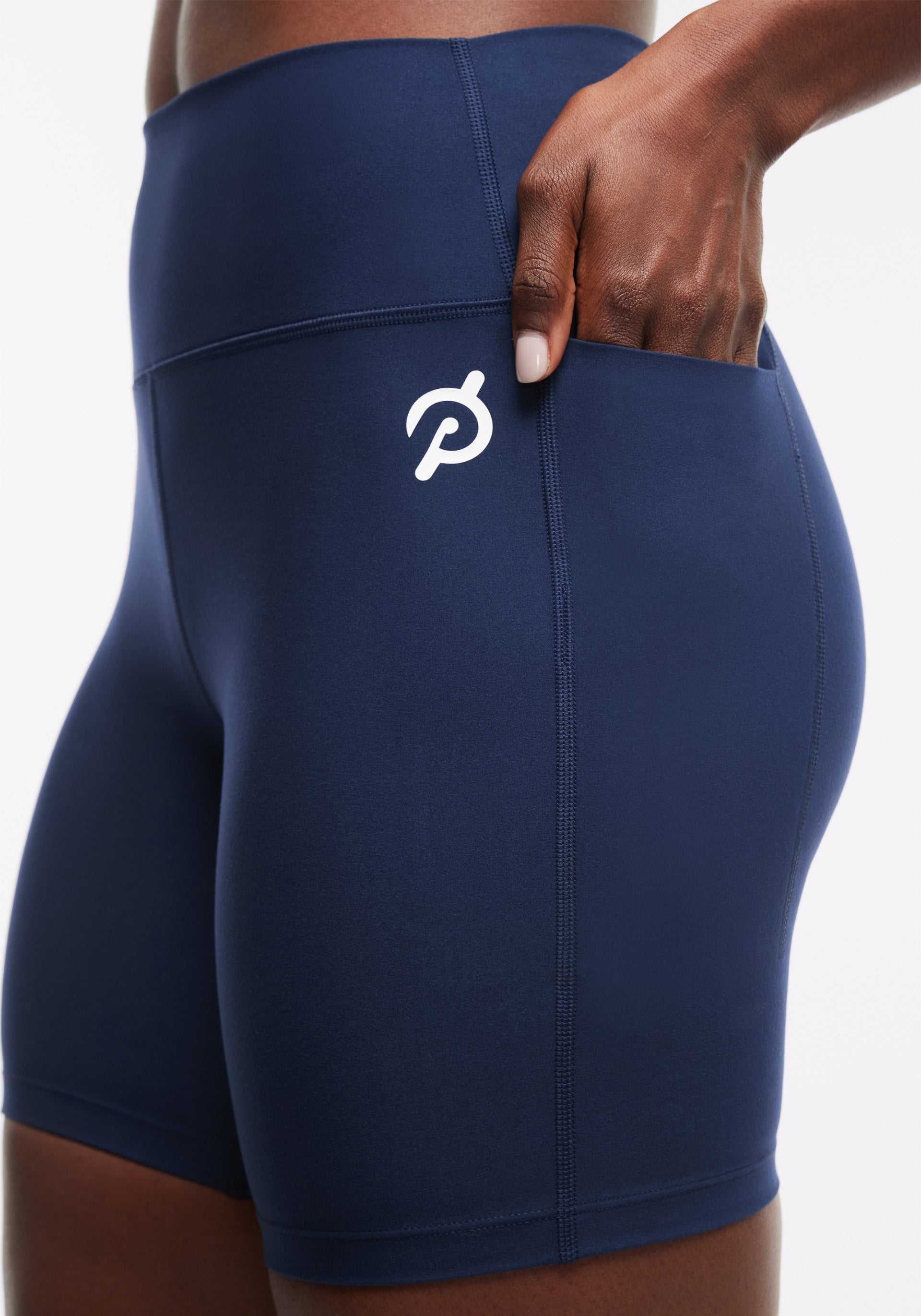 High rise, 7" inseam bike short with medium compression, side pockets, and elongated gusset