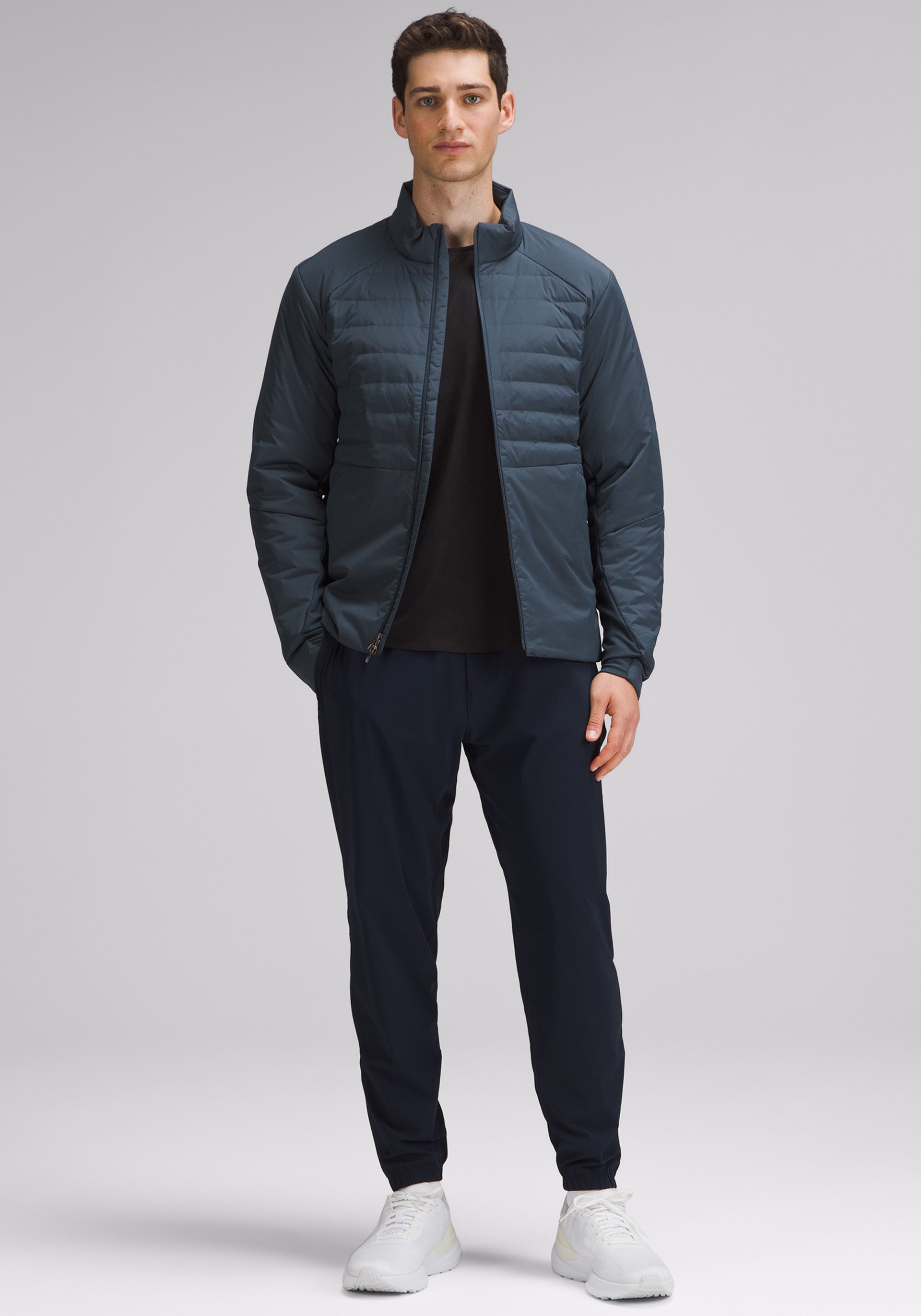• Puffer jacket with zippered hand pockets with a hidden phone sleeve, zippered pocket at back waistband, and reflective detail