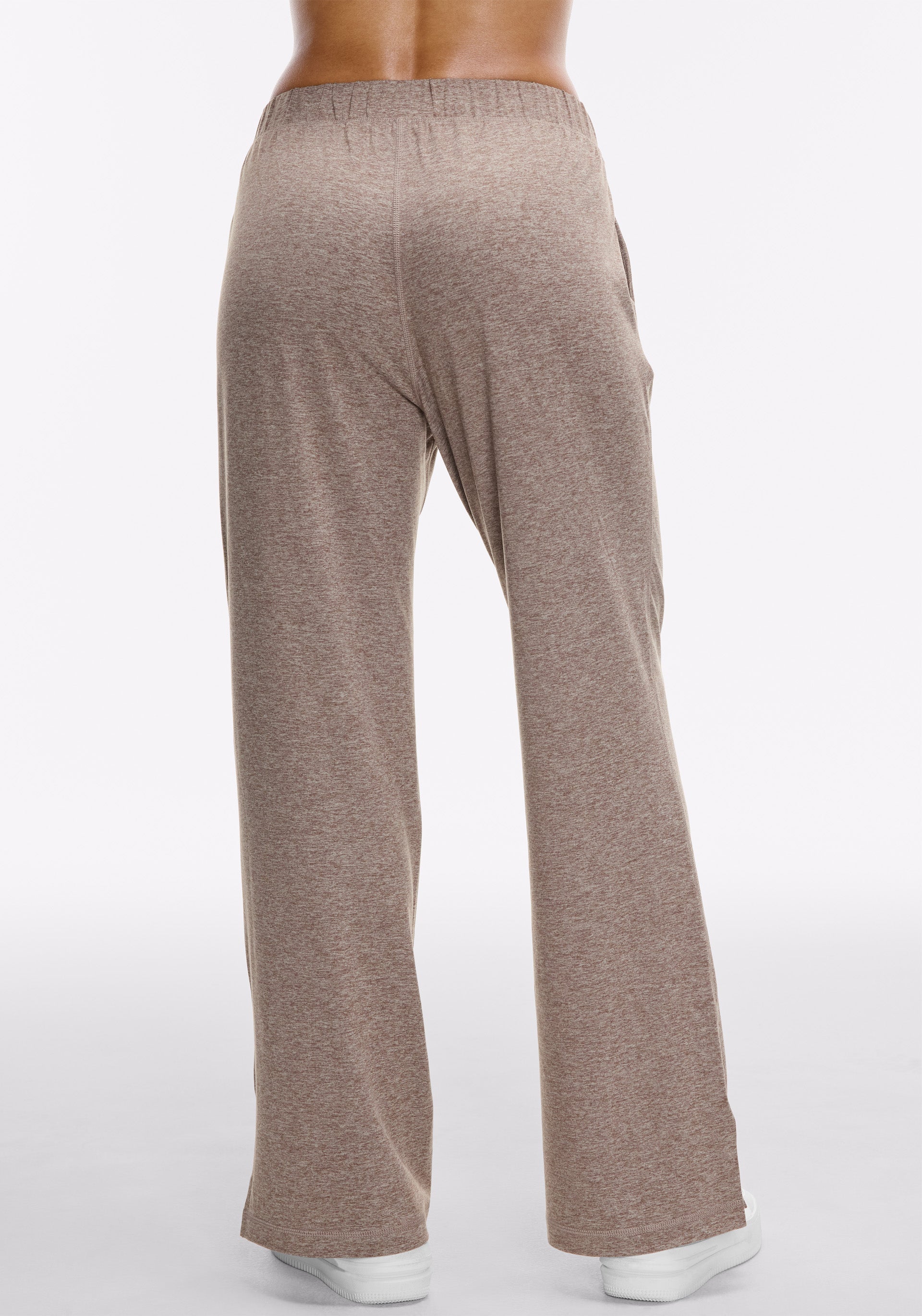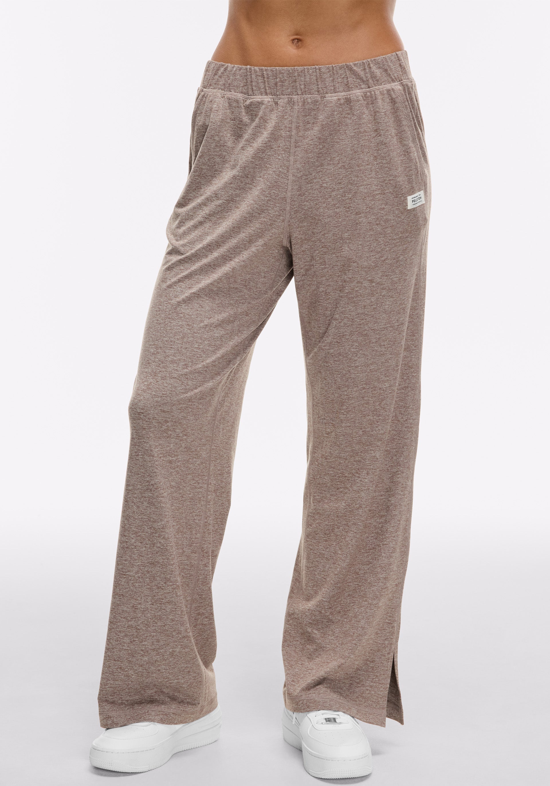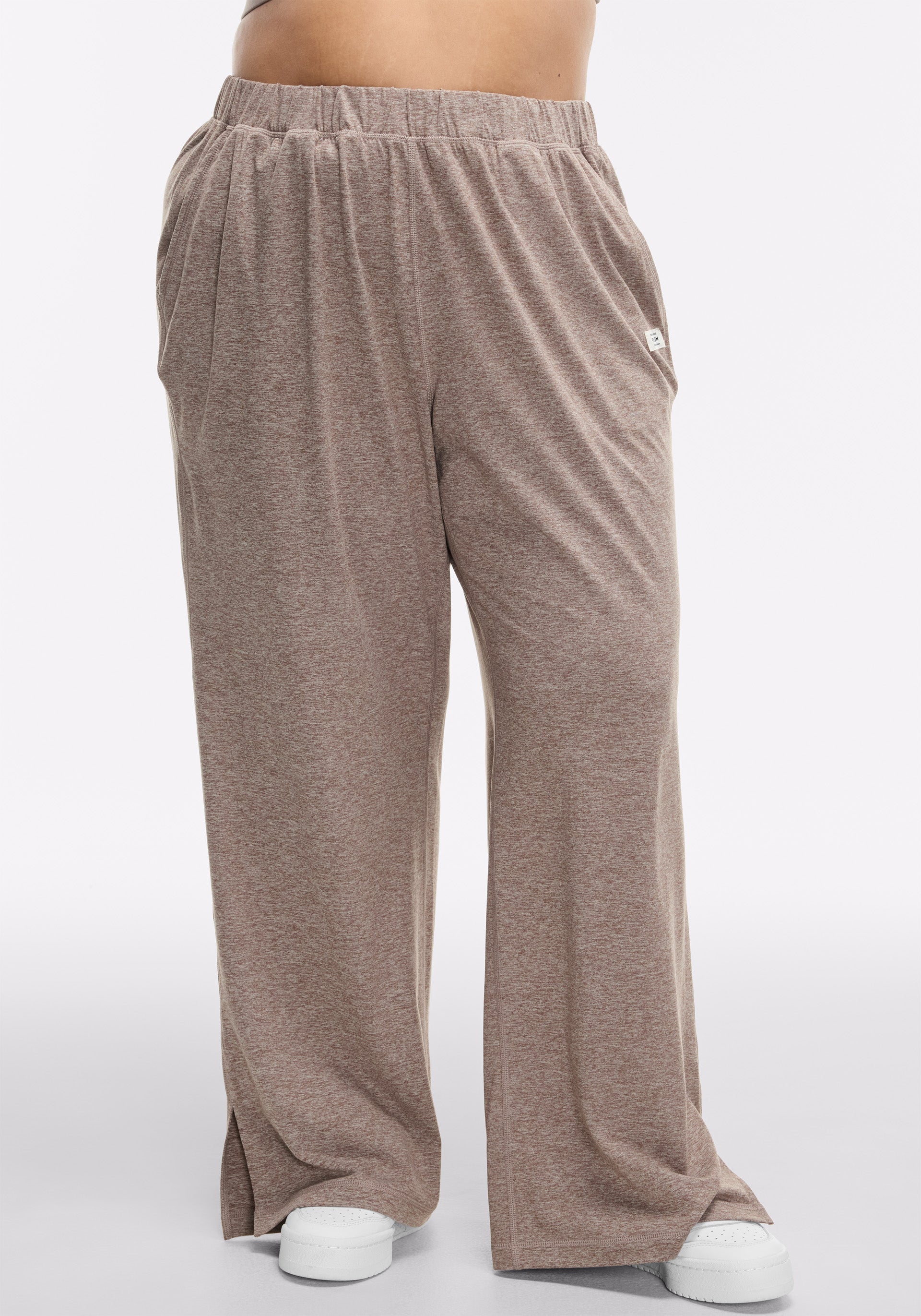 • Wide leg pant with side slit, side hand pockets, and elastic waistband