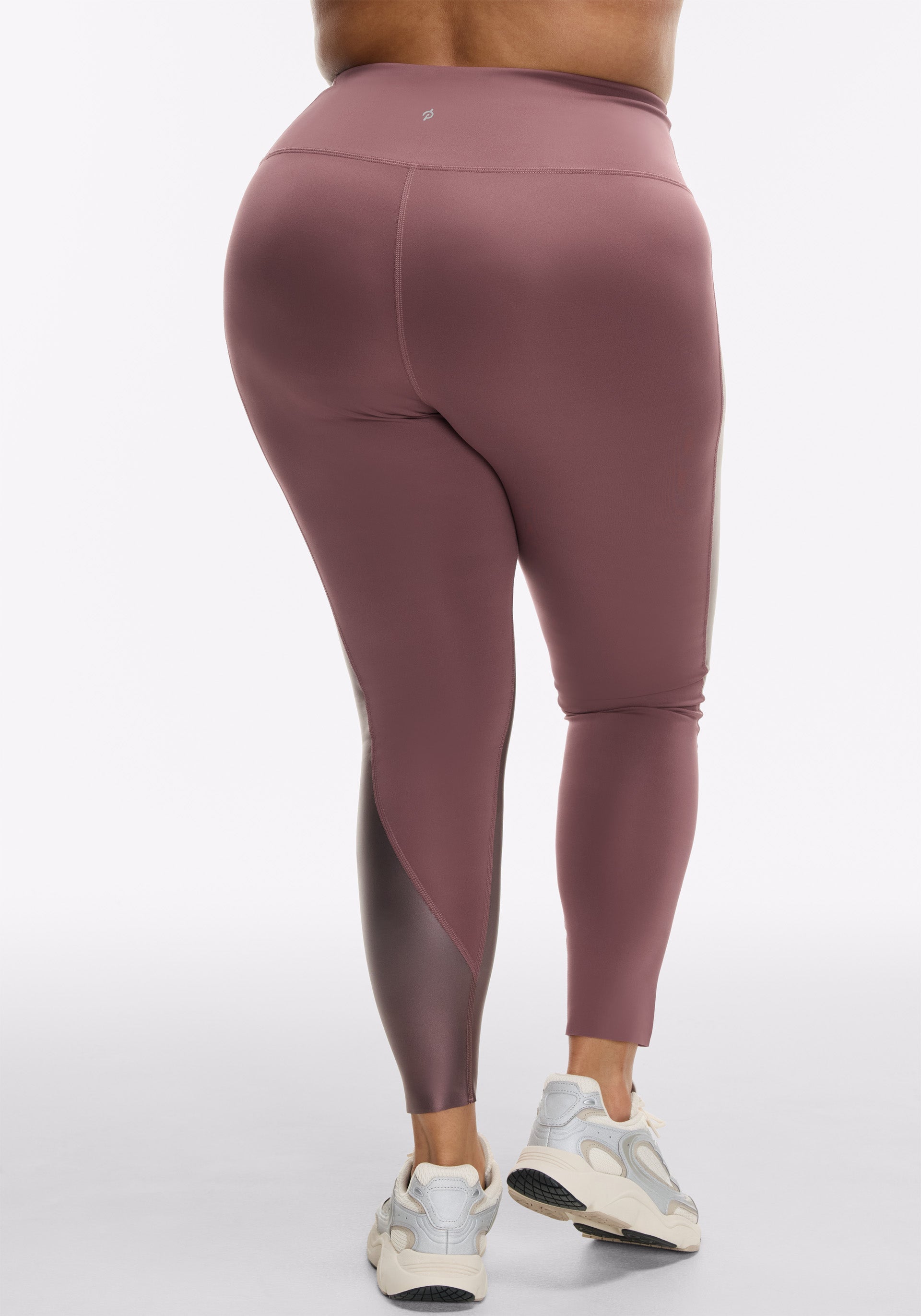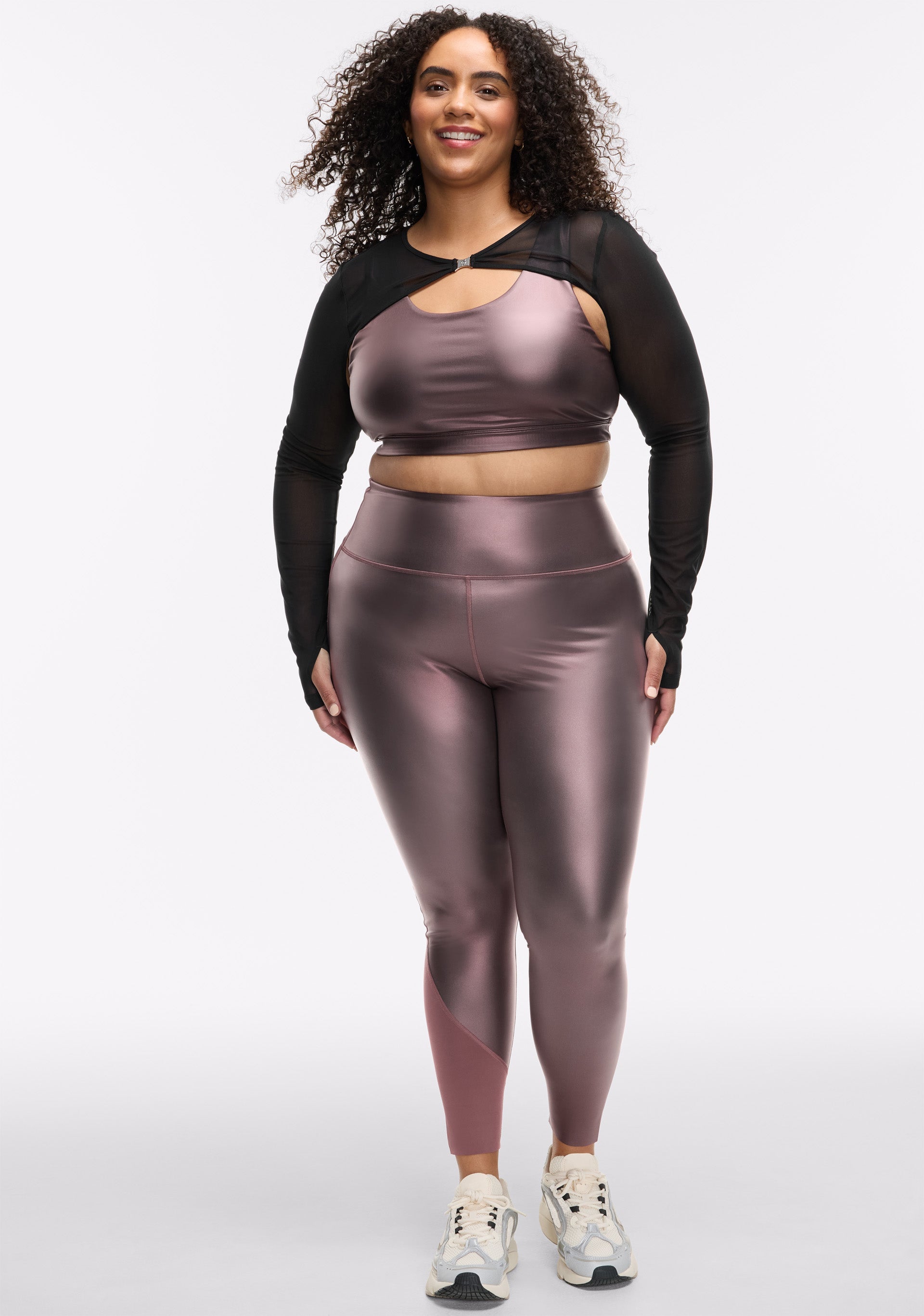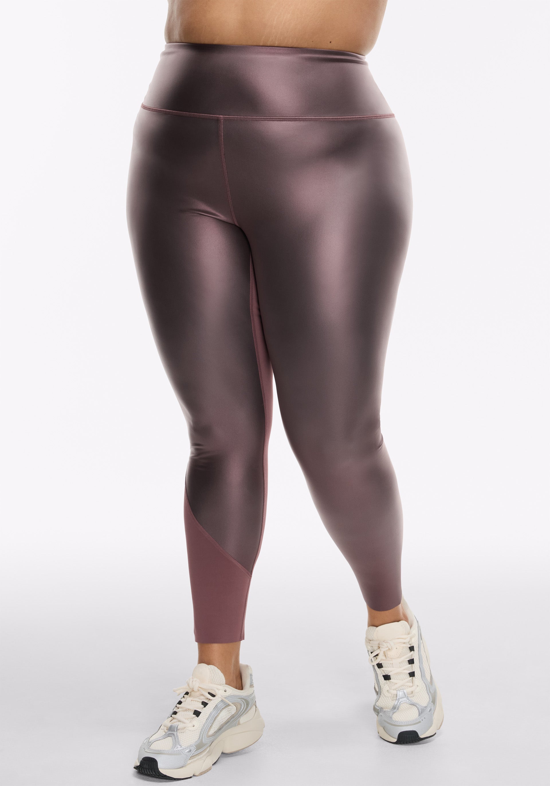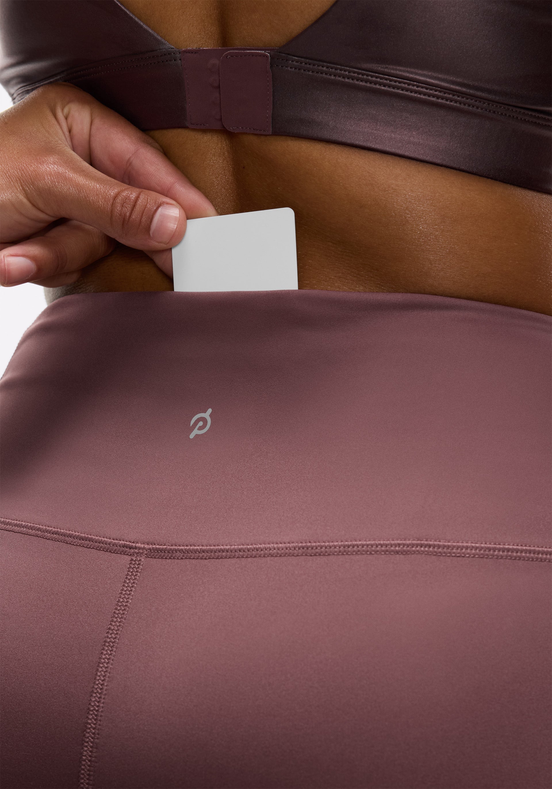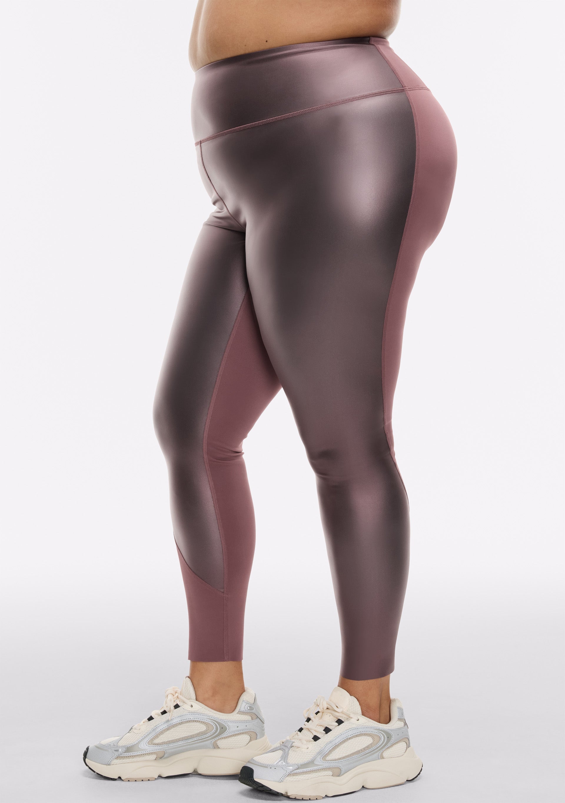 • High rise, 25” inseam legging with shine detail at front and back stash pocket