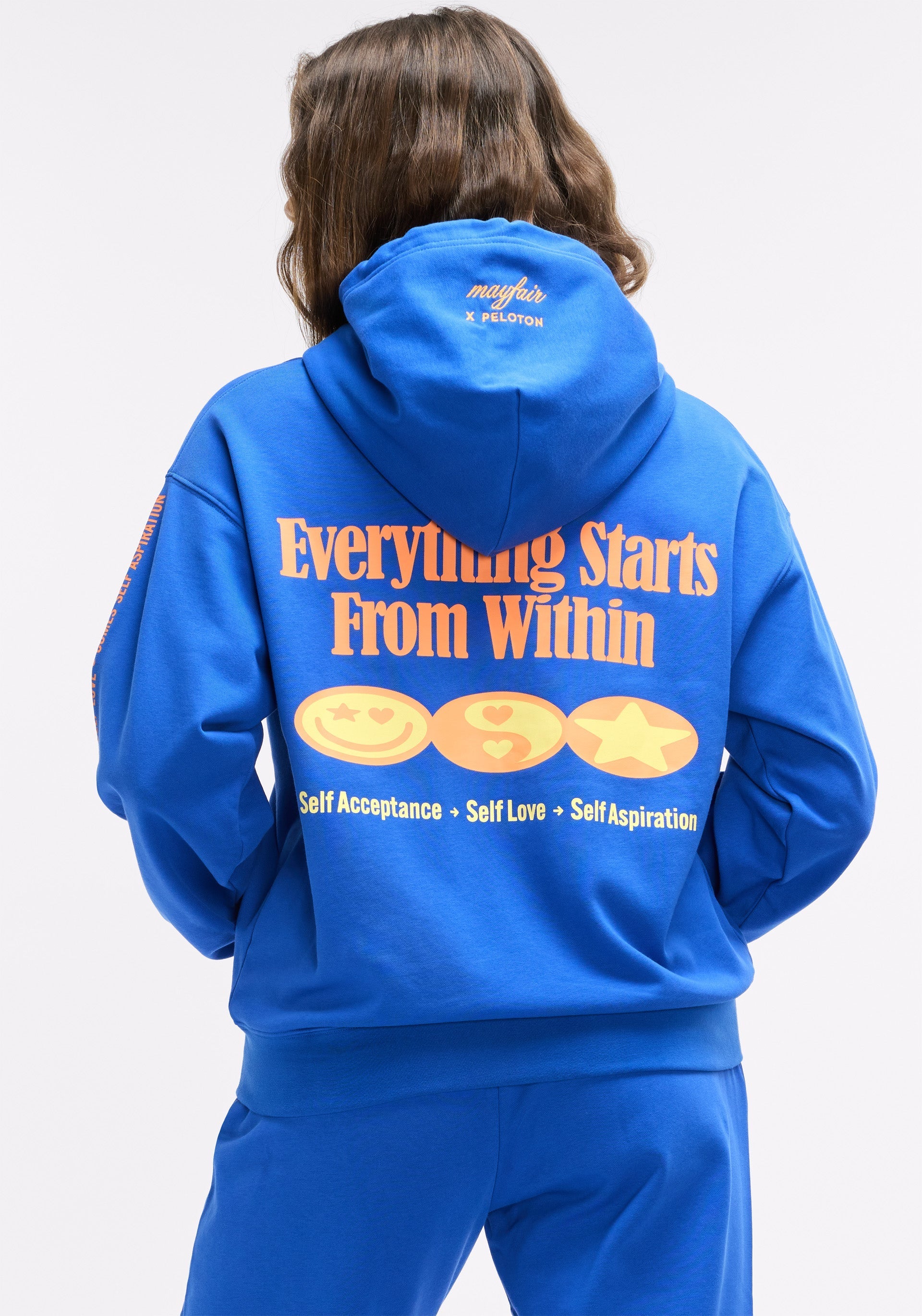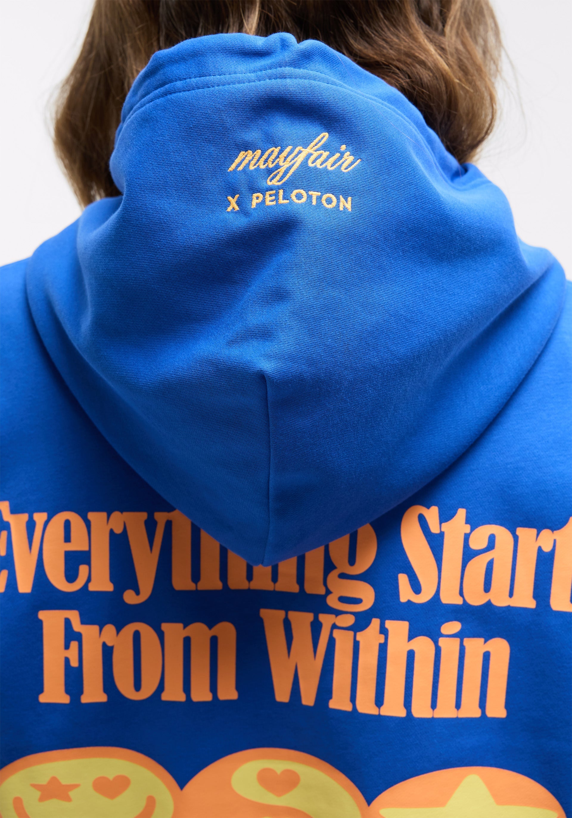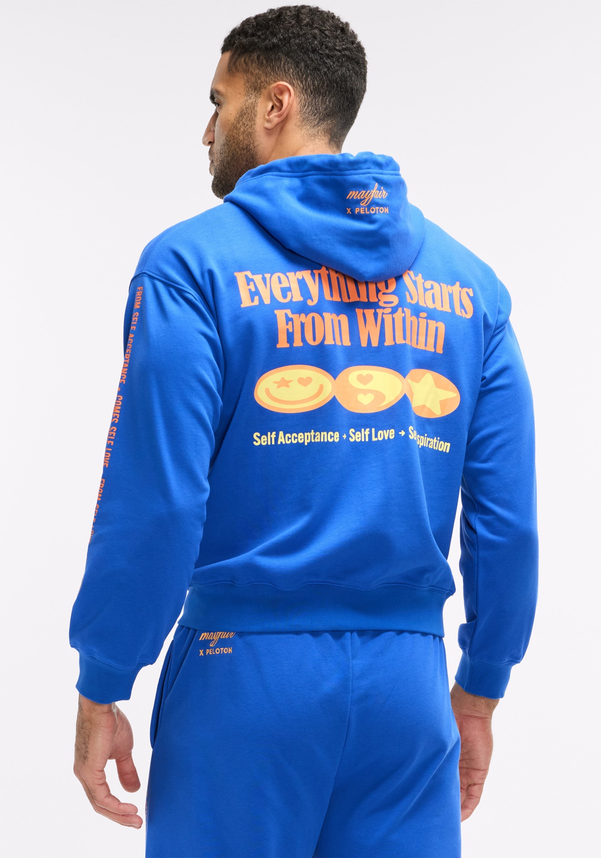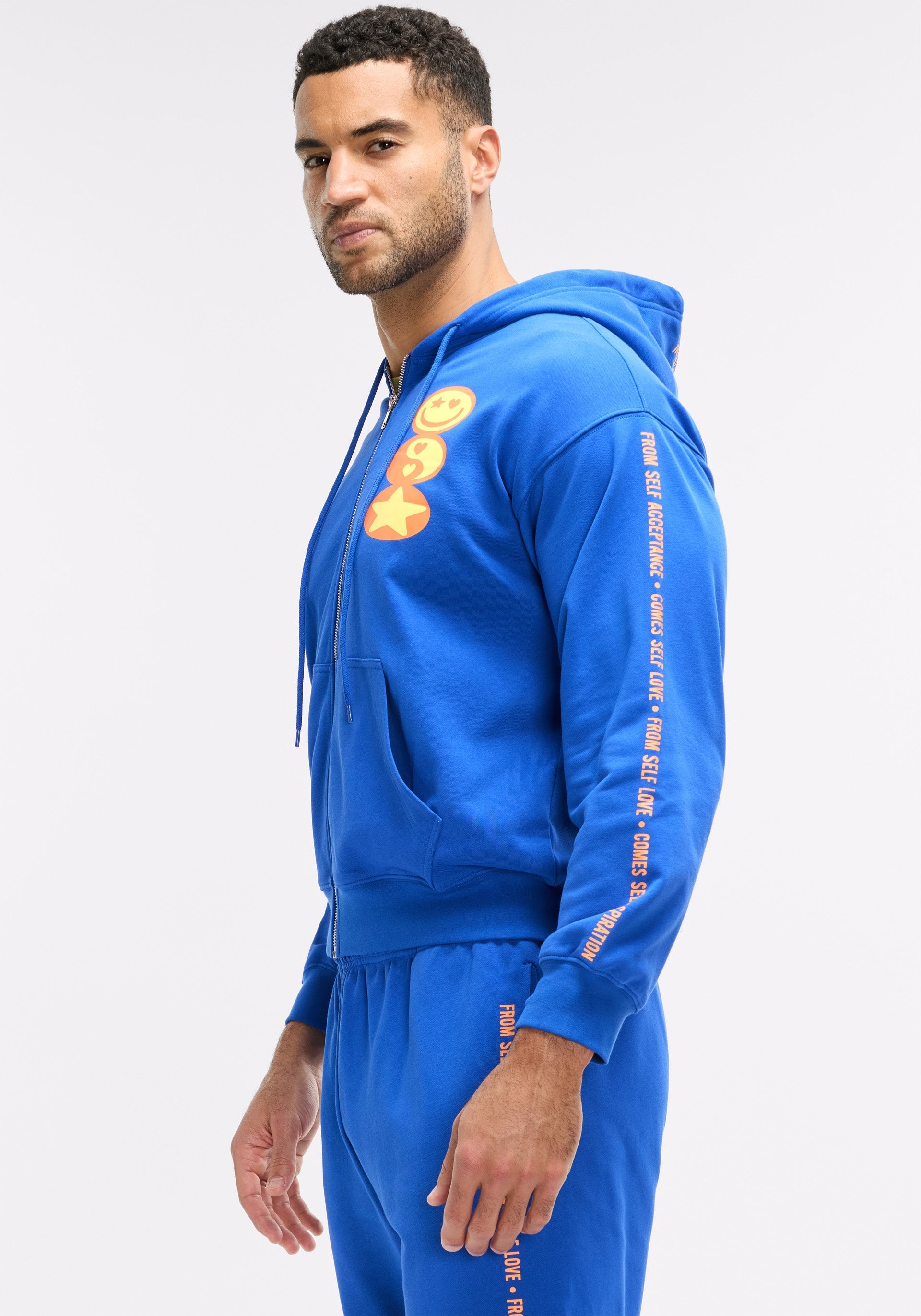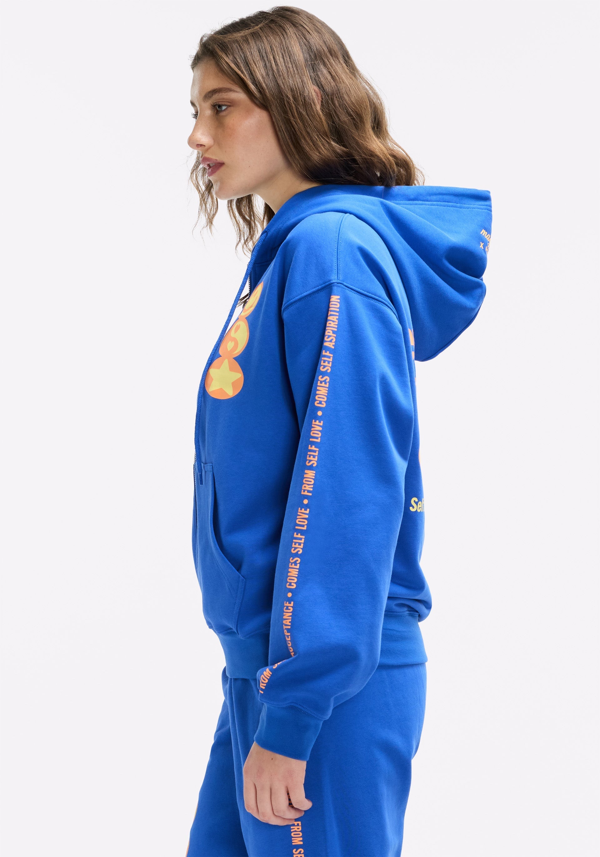 • Cotton fleece zip-up with adjustable drawcord at hood and hand pockets