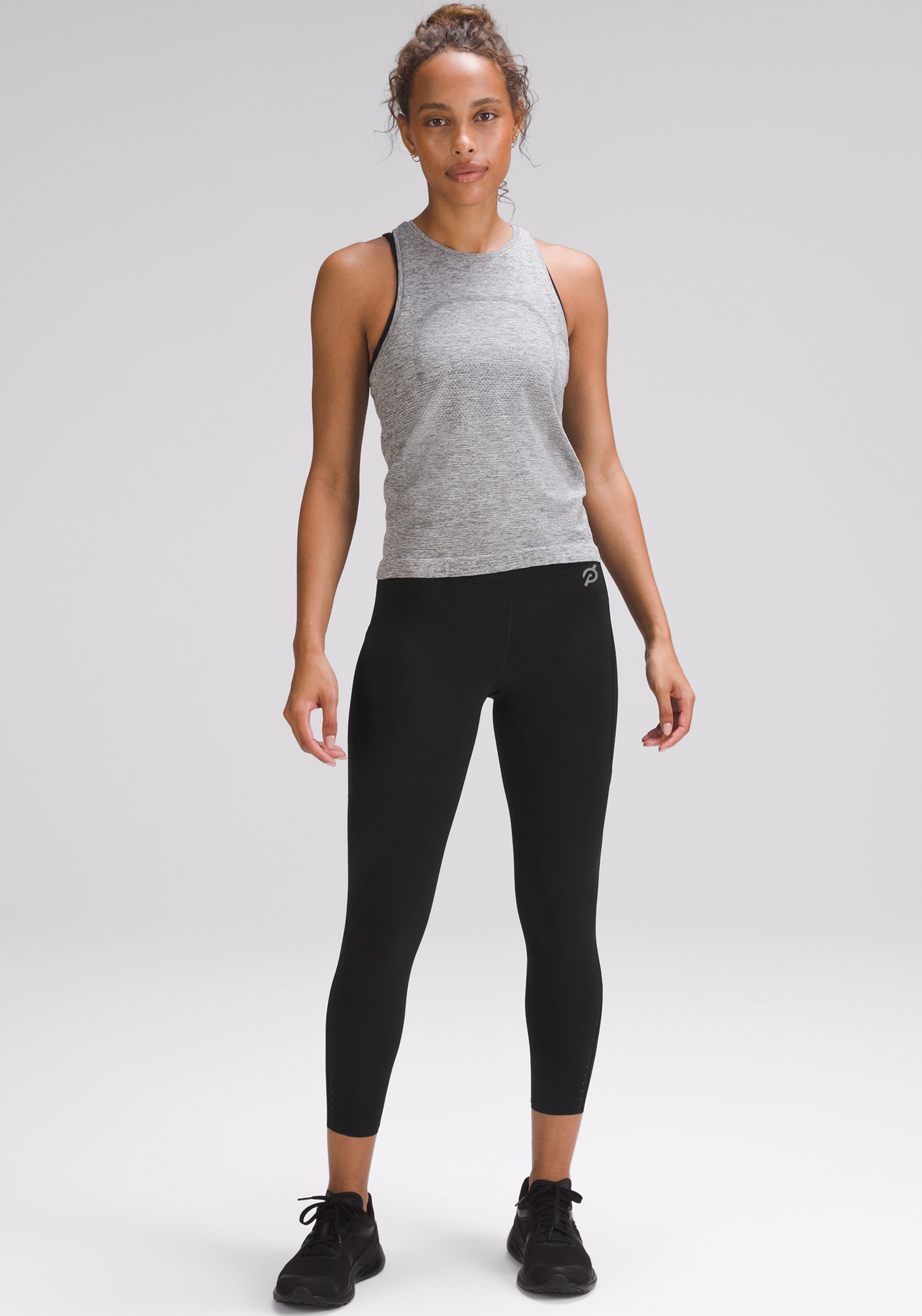 • lululemon logo at left calf