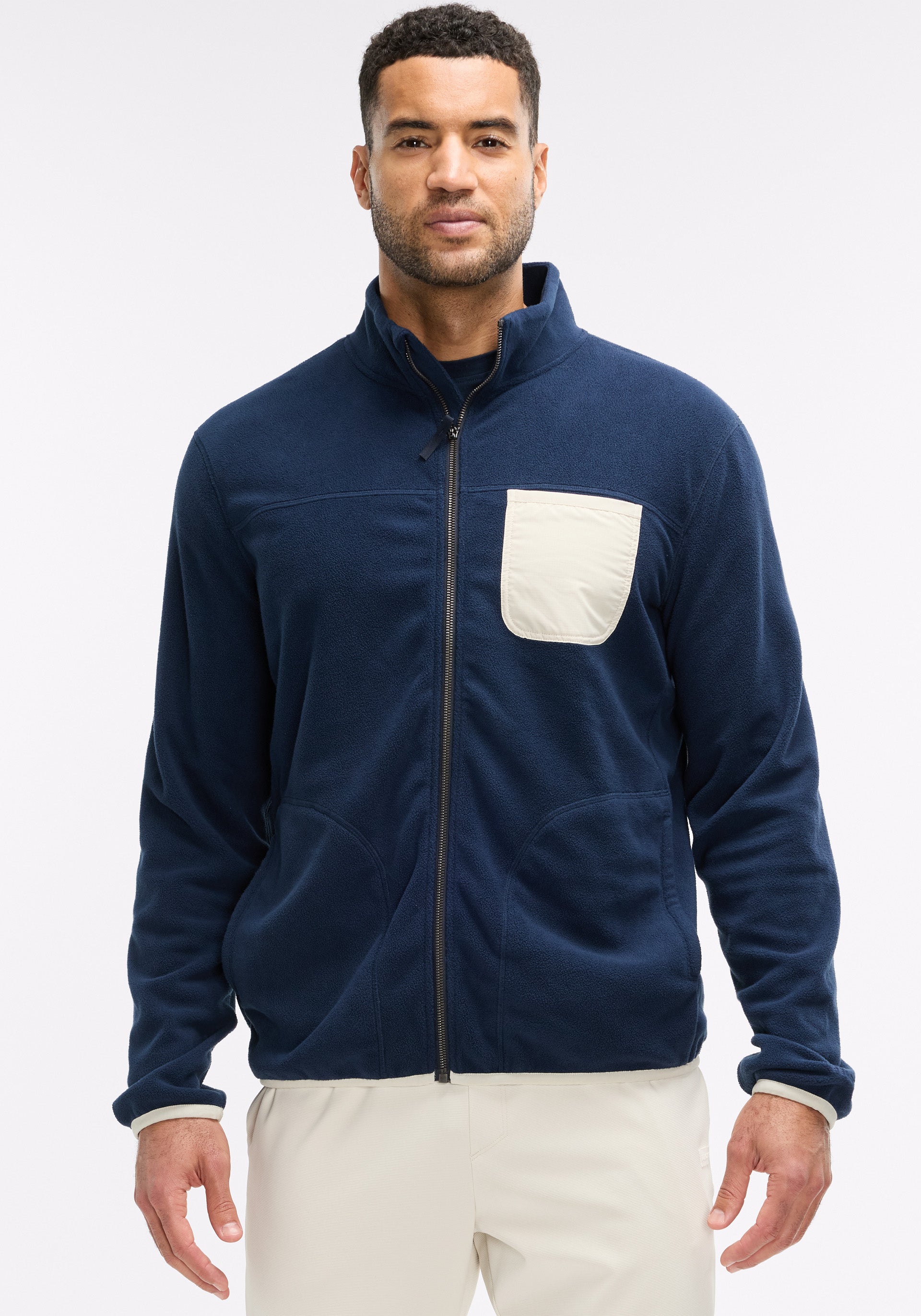 • Fleece full zip with contrast ripstop chest pocket, elastic binding at hem and cuff, and hand pockets