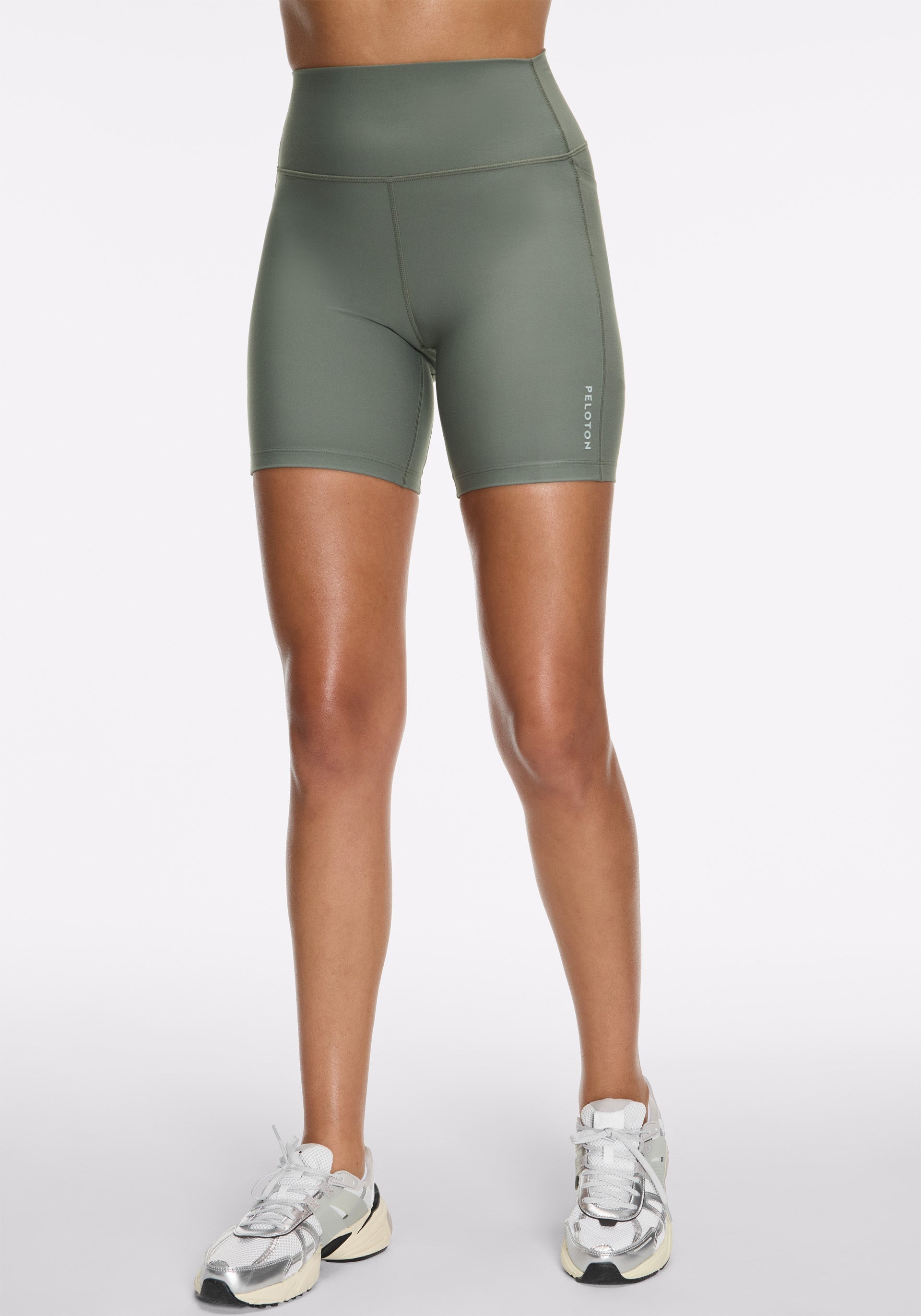 High rise, 7" inseam bike short with medium compression, side pockets, and elongated gusset