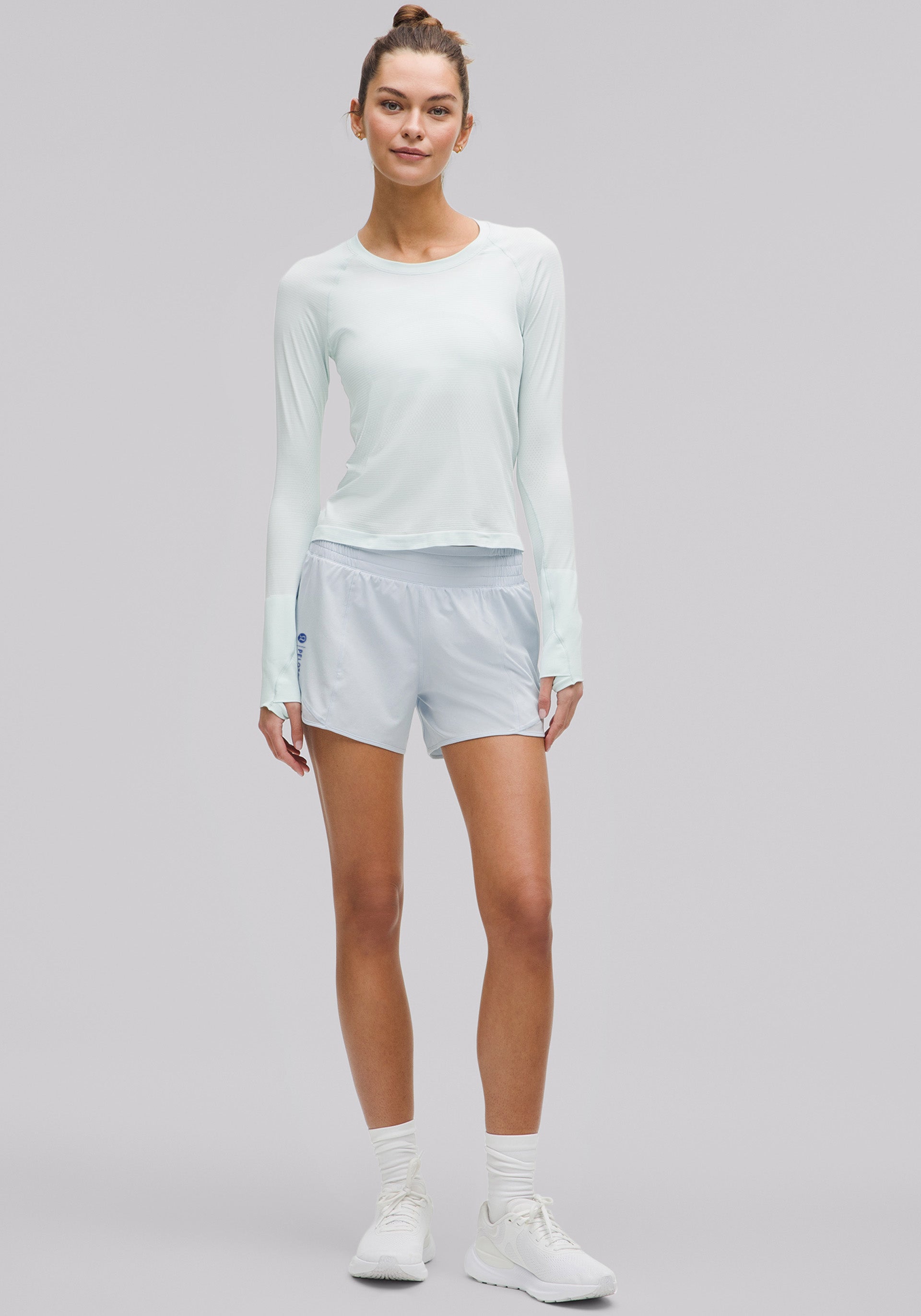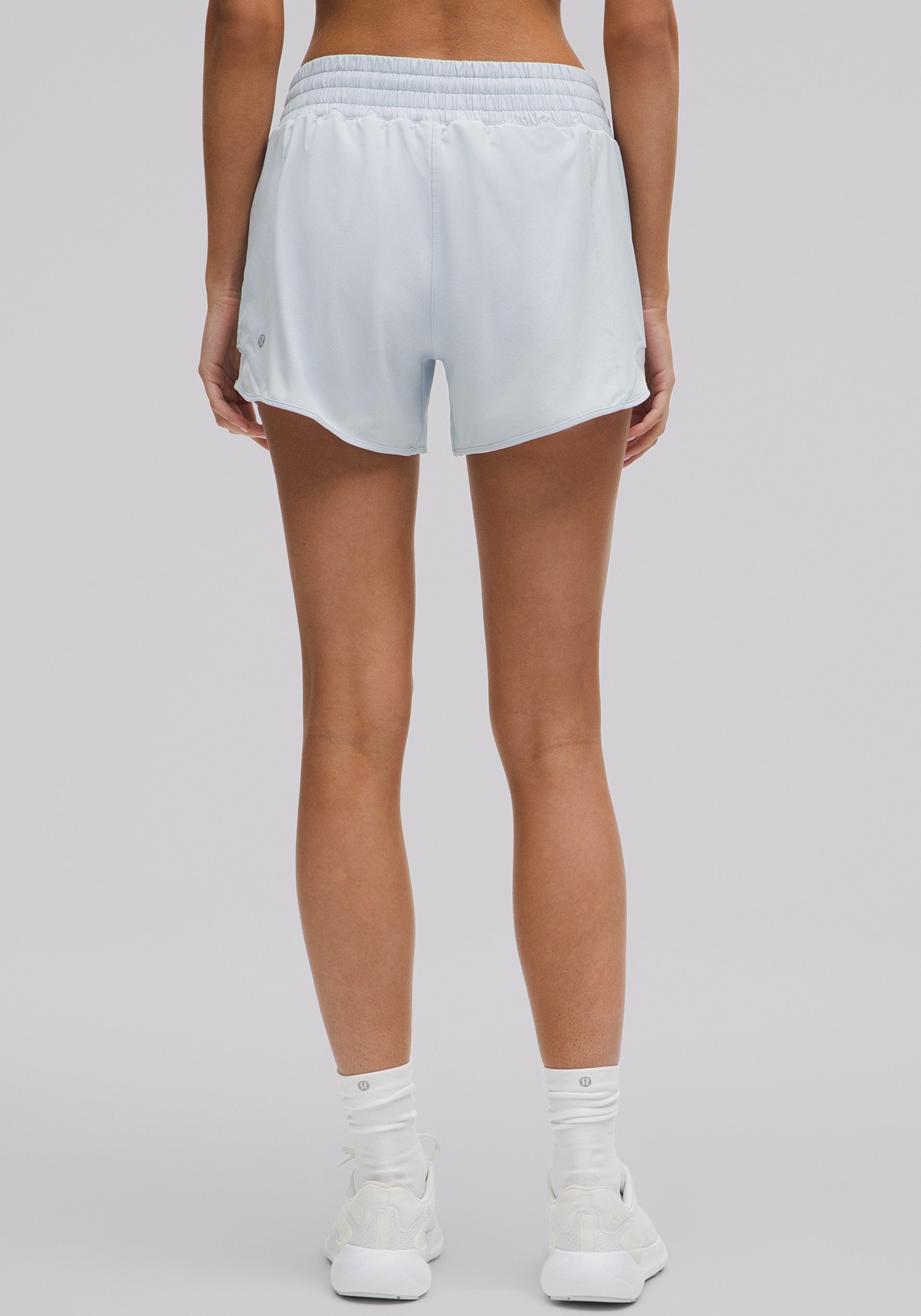 • High rise, 4” inseam short with built-in liner, mesh fabric panels for ventilation, continuous drawcord, and reflective details