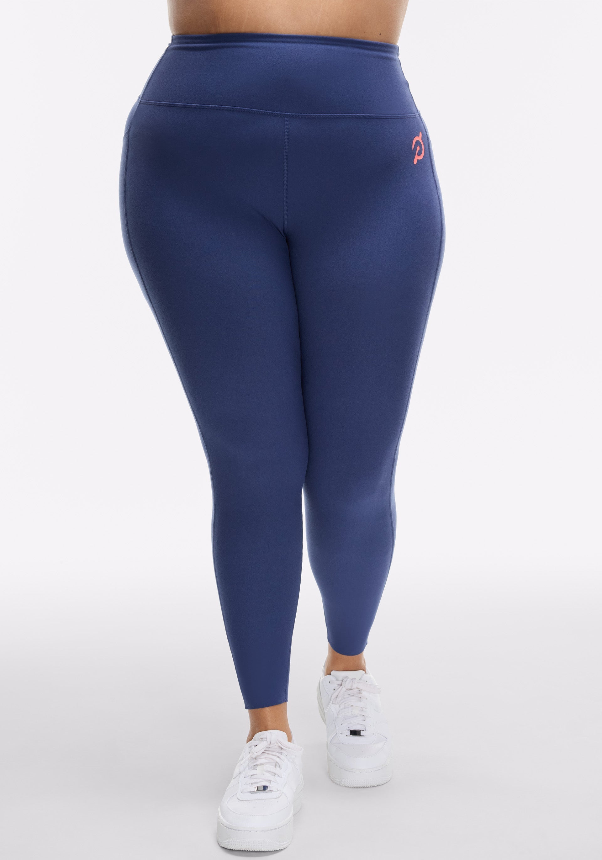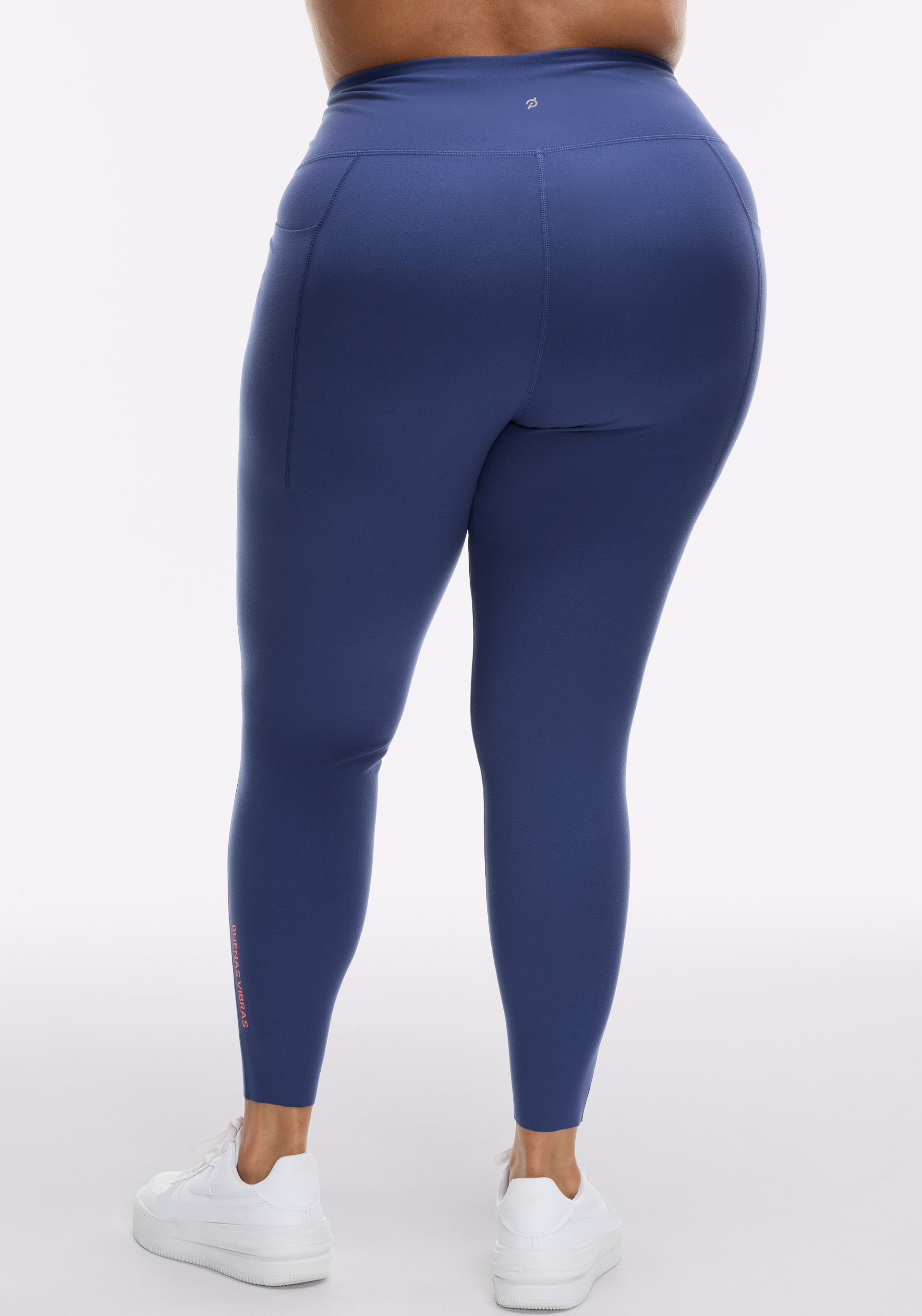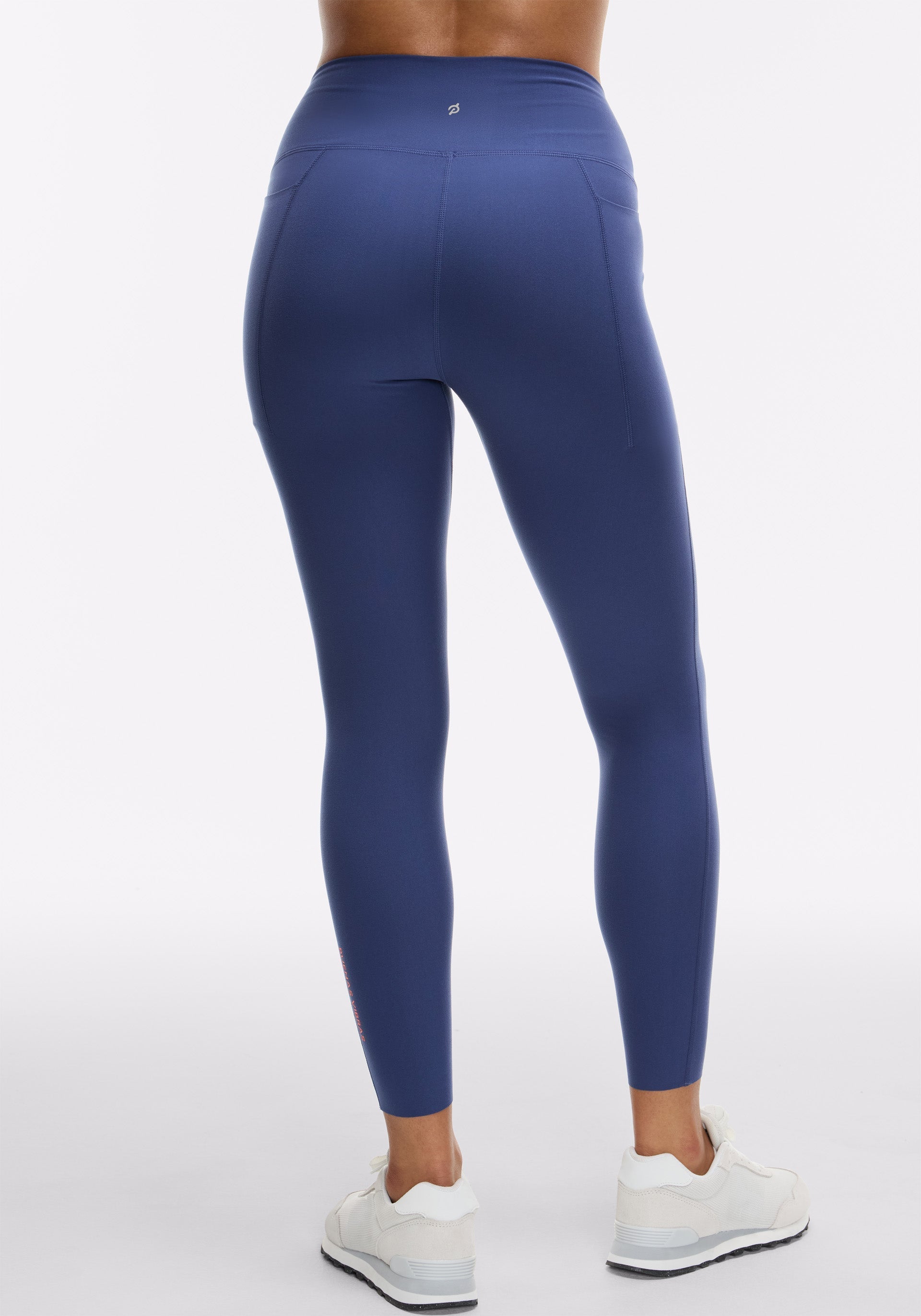 • High rise, 25" inseam legging with medium compression, side pockets, and elongated gusset