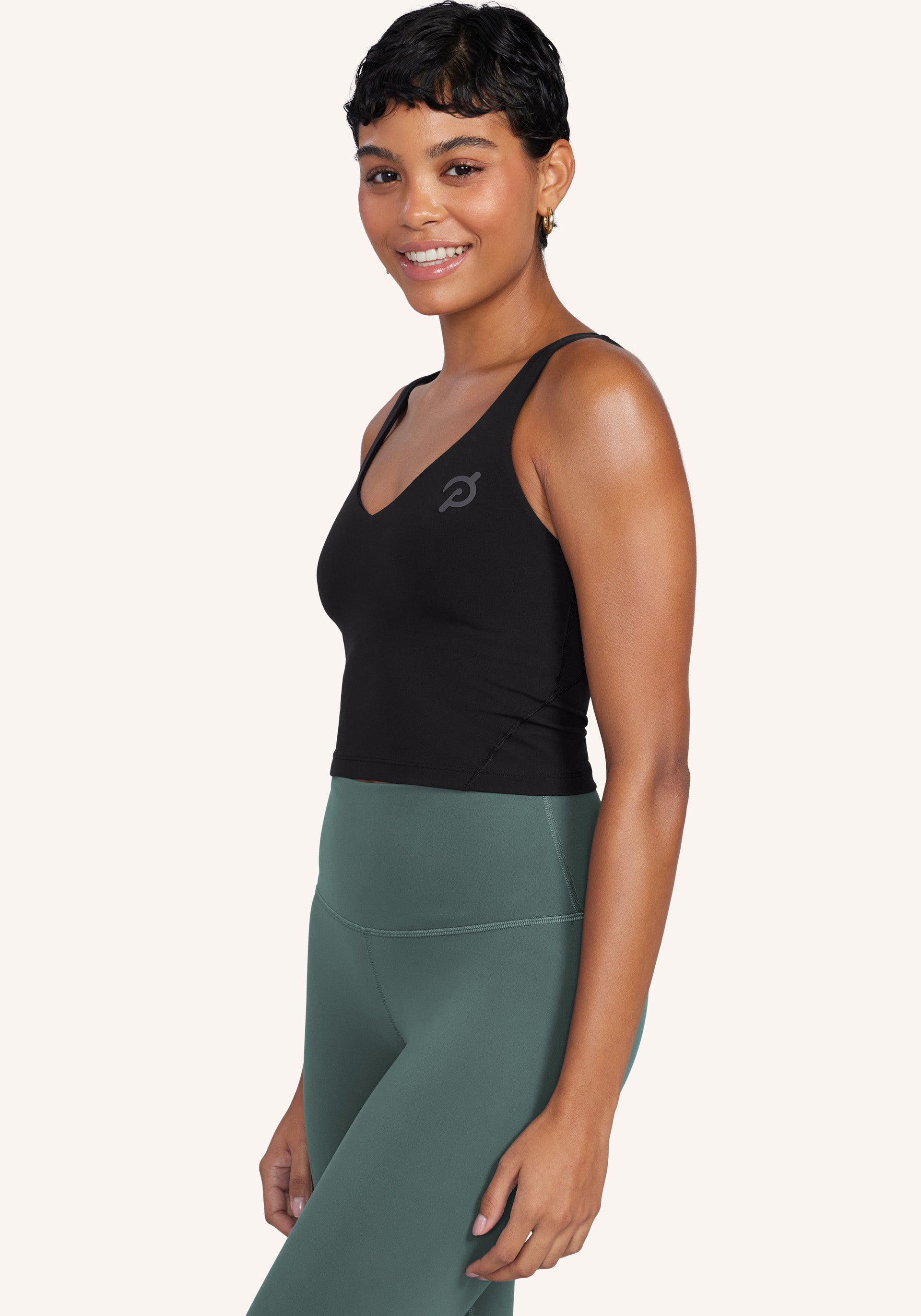• Light support, cropped tank cut above the waist with built-in shelf bra for added support and coverage as well as pockets for removable cups