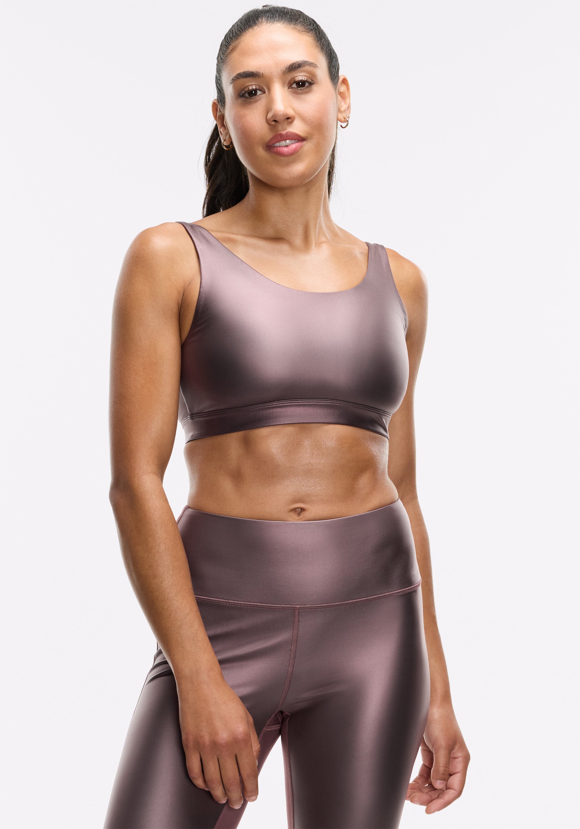 Yes — medium to high support, with removable pads and moisture-wicking stretch fabric.