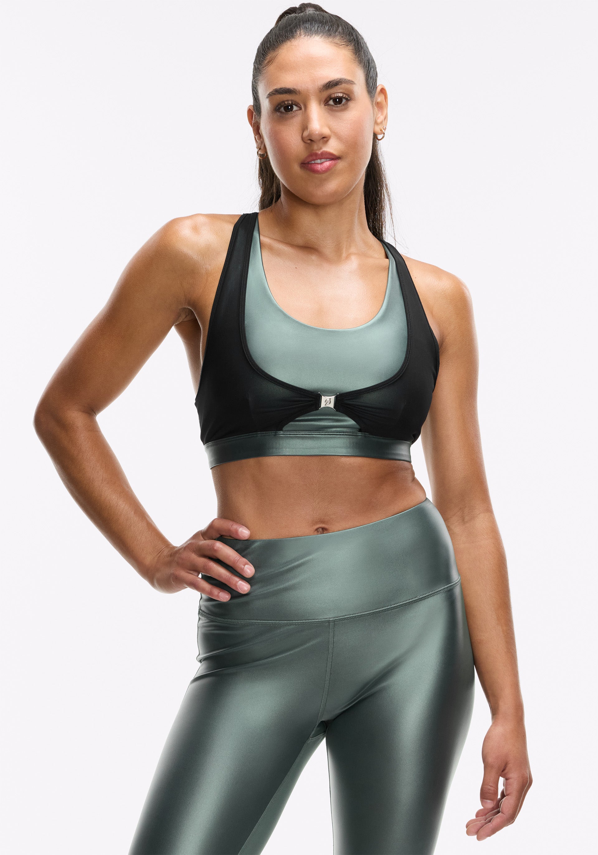 Yes — medium to high support, with removable pads and moisture-wicking stretch fabric.