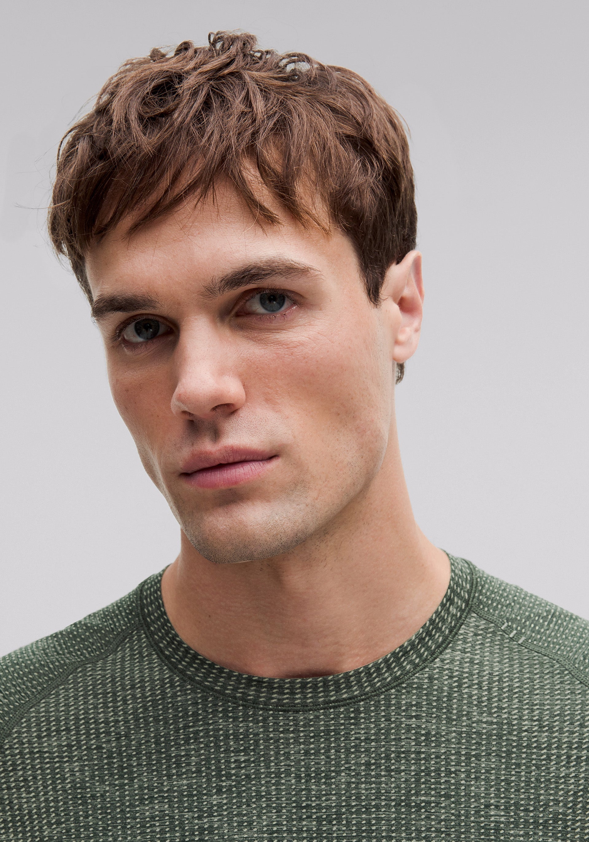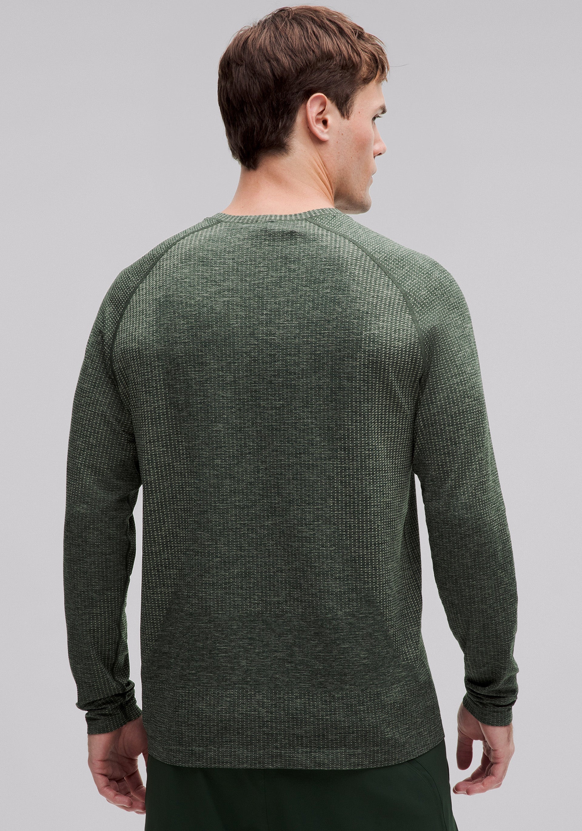 • Crewneck, long sleeve with no side seams so you can skip the chafe and a rebalanced fabric and fit for less cling on sweaty skin