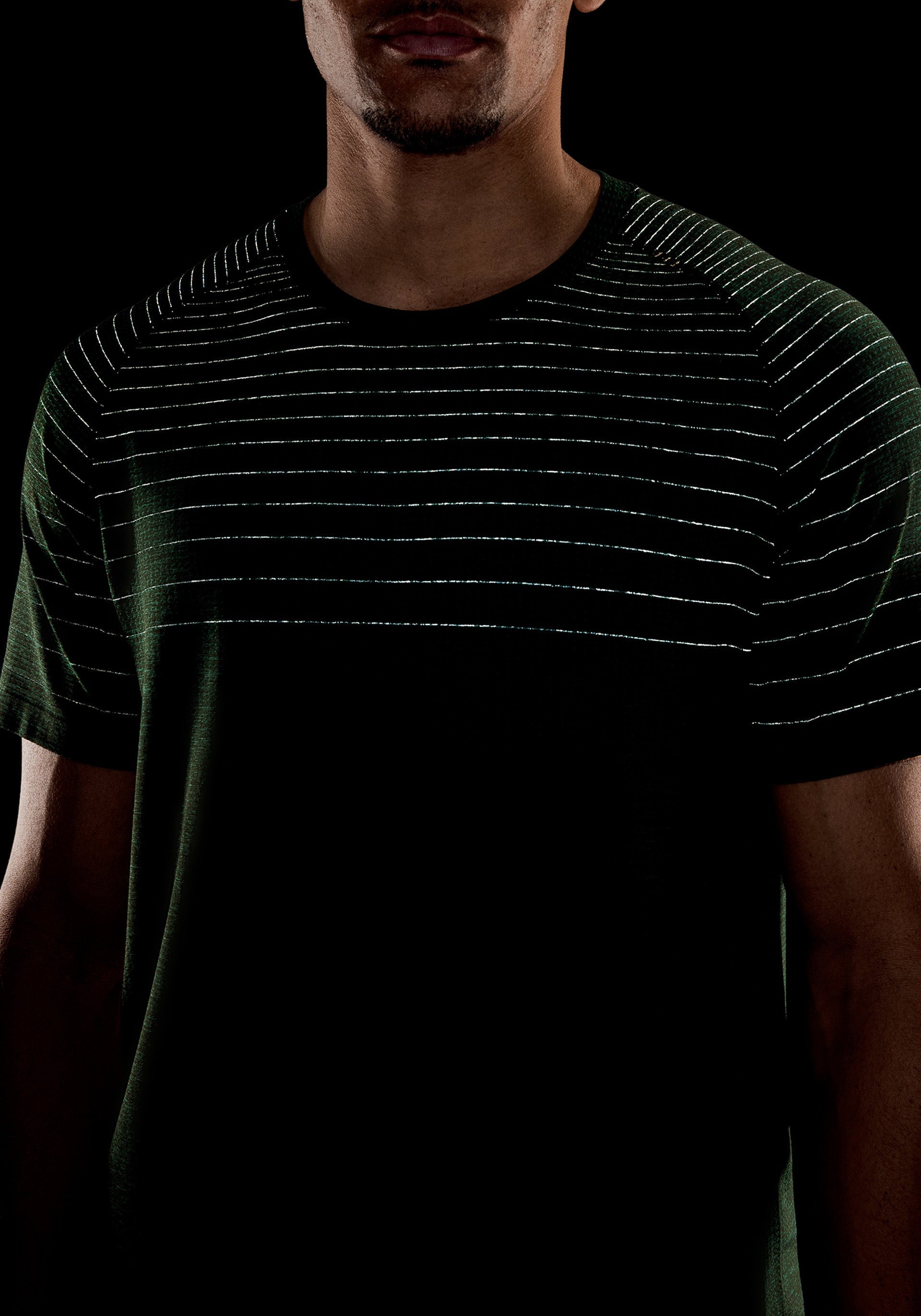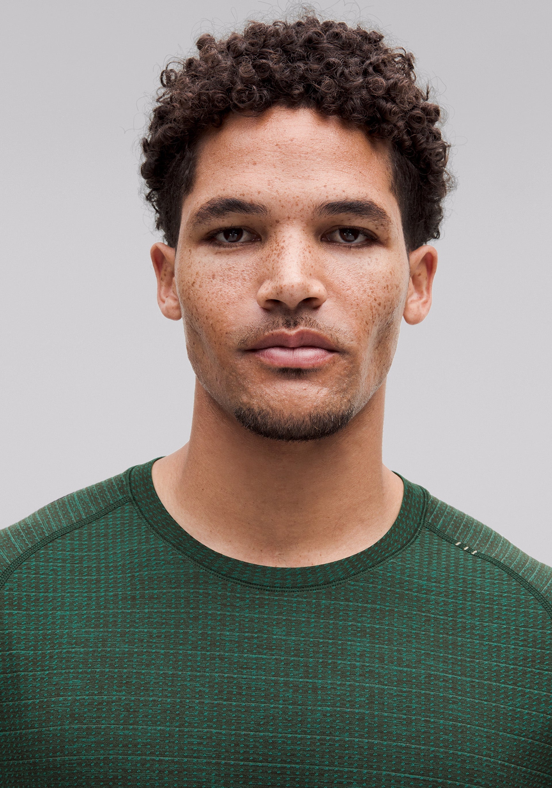 • Crewneck, short sleeve with no side seams so you can skip the chafe and a rebalanced fabric and fit for less cling on sweaty skin