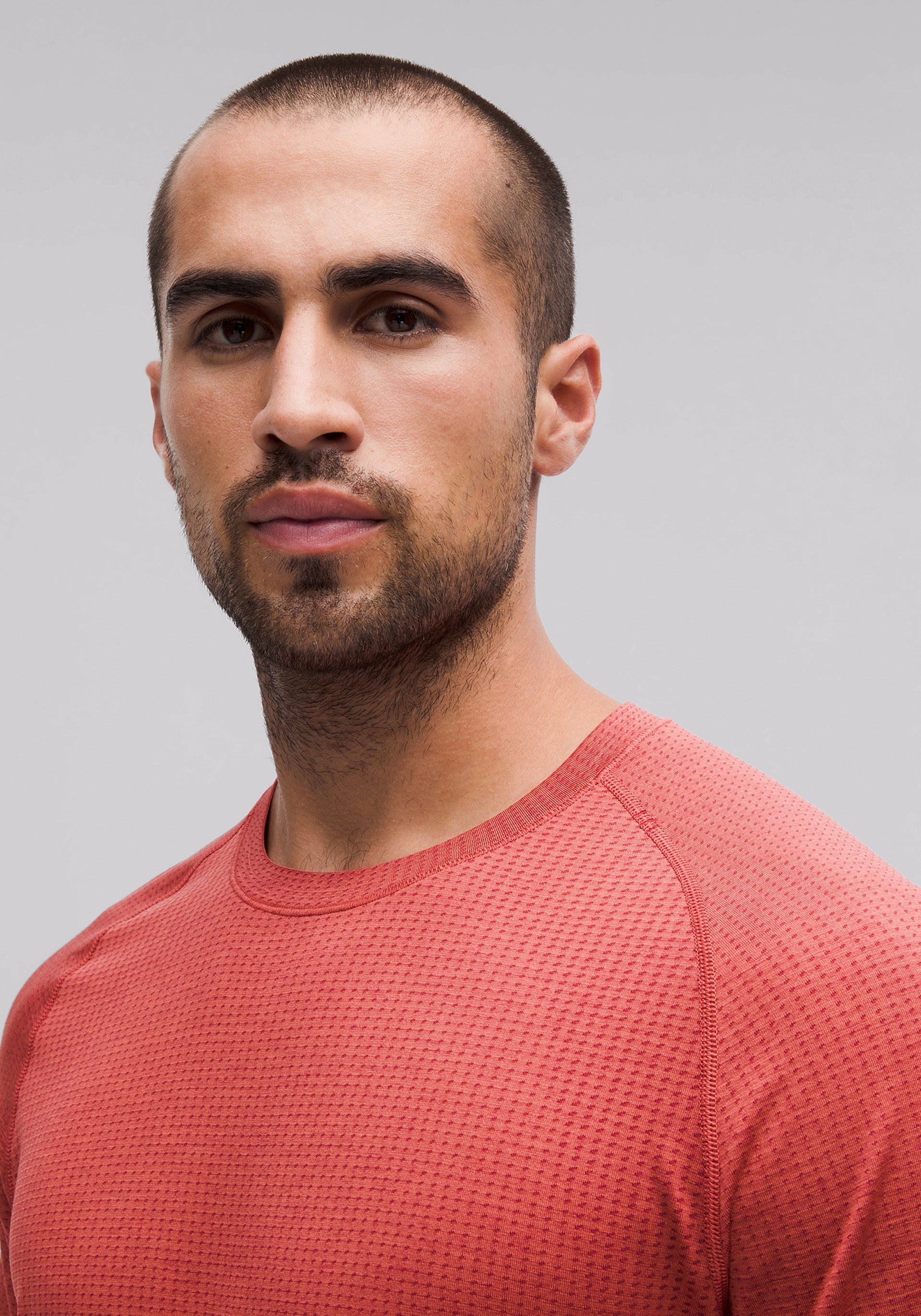 • Crewneck, short sleeve with no side seams so you can skip the chafe and a rebalanced fabric and fit for less cling on sweaty skin