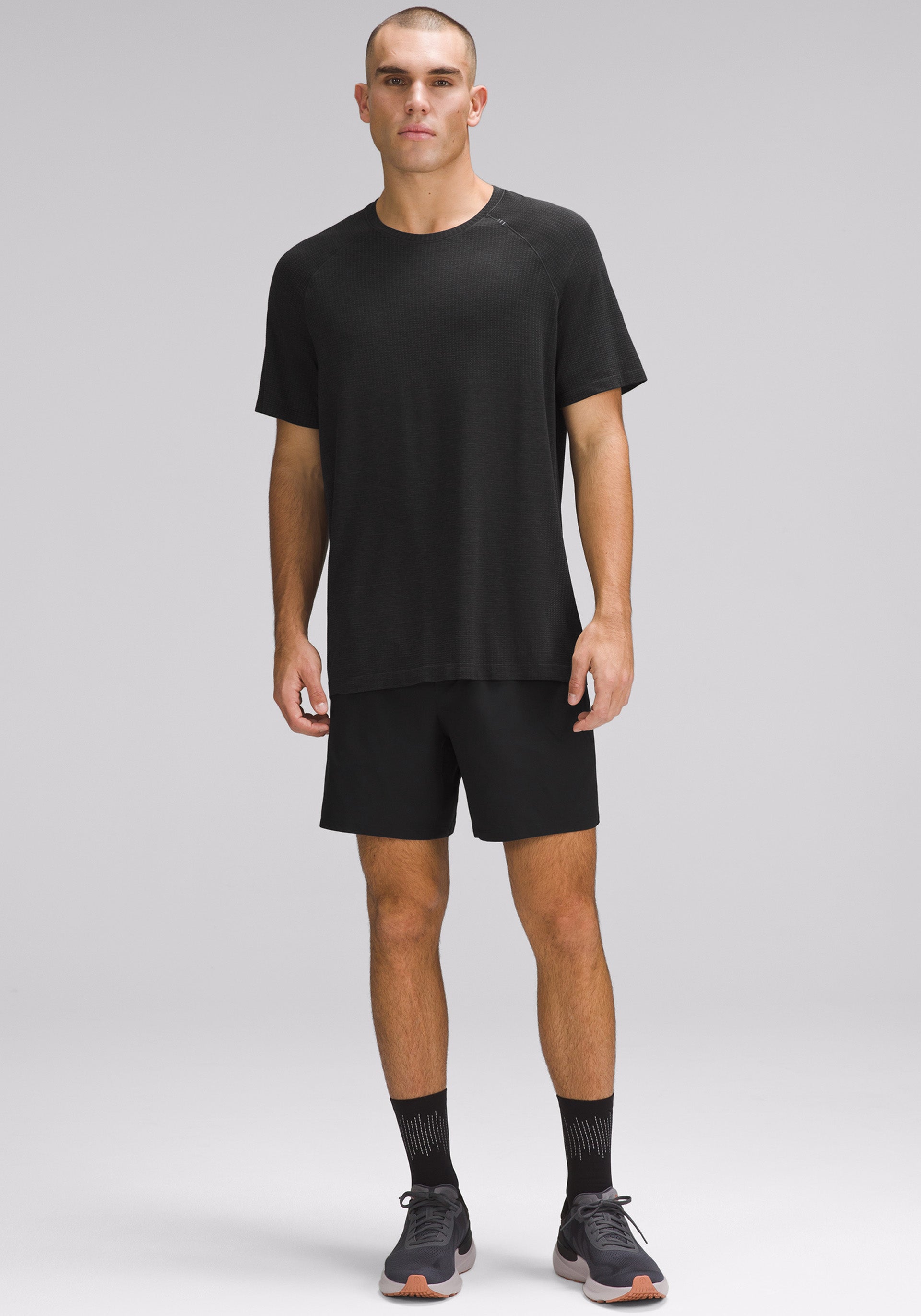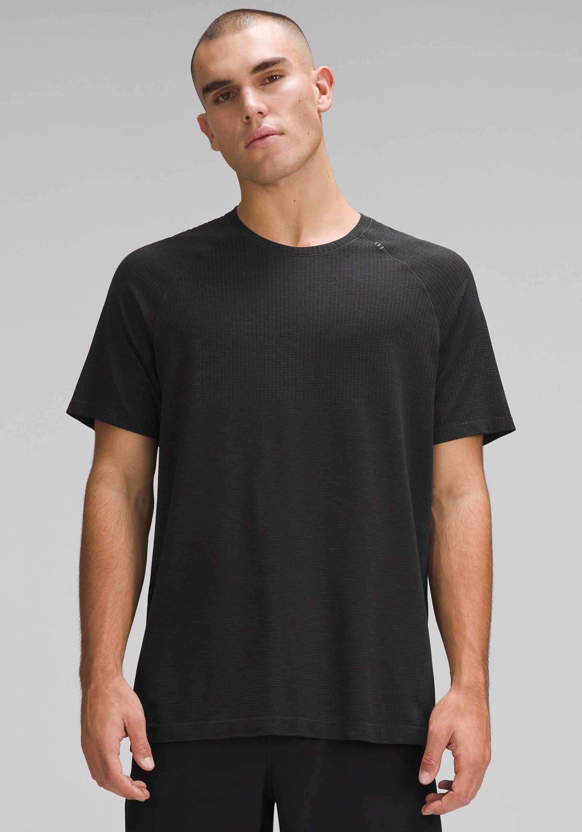 • Crewneck, short sleeve with no side seams so you can skip the chafe and a rebalanced fabric and fit for less cling on sweaty skin