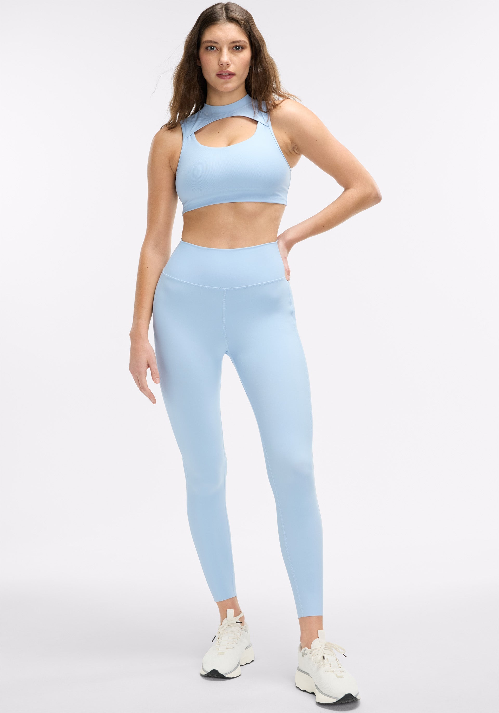 High rise, 25" inseam legging with medium compression, side pockets, and elongated gusset