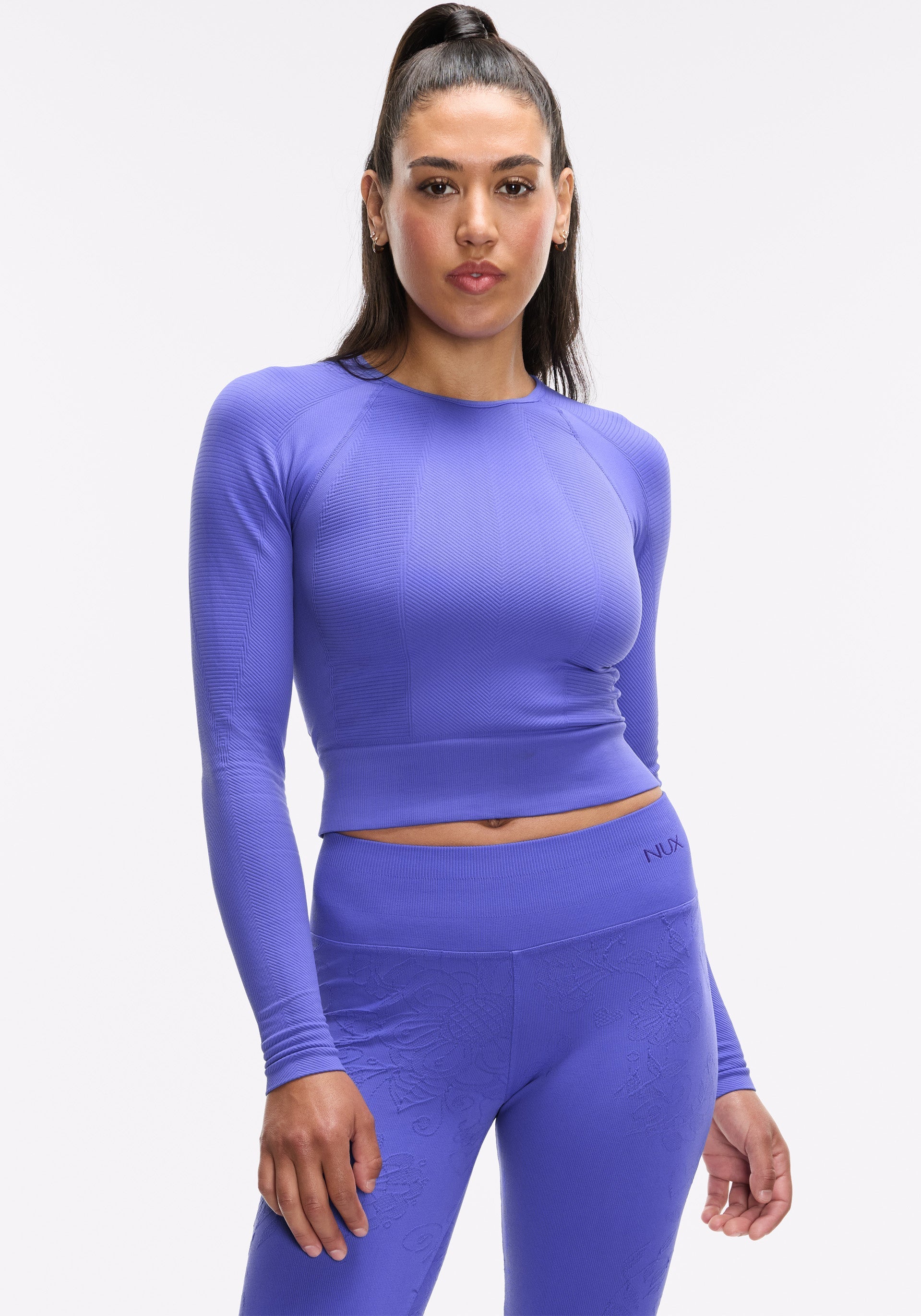 • Cropped, crewneck neck long sleeve with ribbed fabrication and light compression
