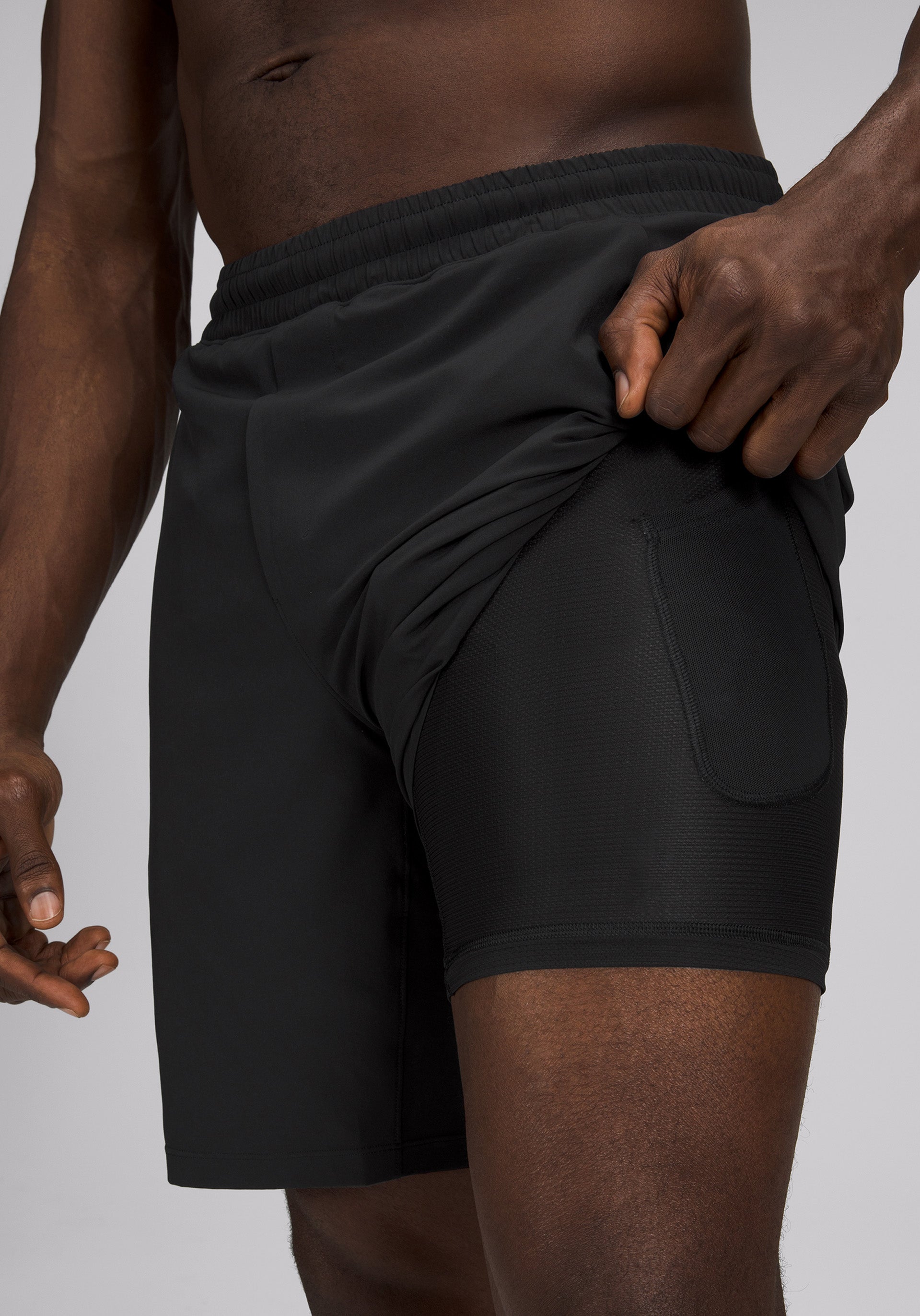 • 7” inseam, lined performance short with ultra-soft inner waistband and low-bounce side zippered pocket. Soft grid mesh liner is sweat-wicking and quick-drying with a supportive built-in pouch and a pocket for drawcord strings
