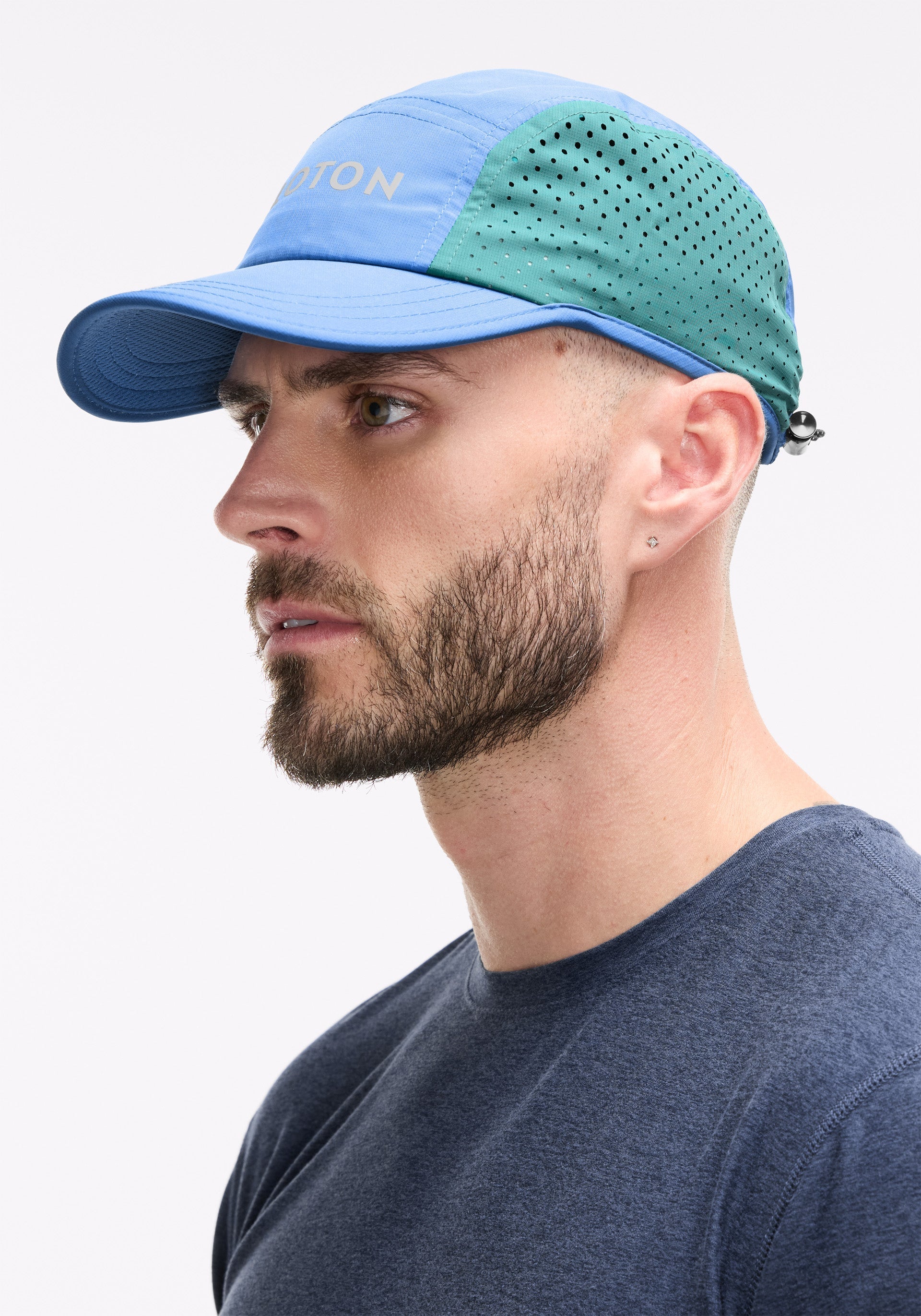 • Multi panel run cap with topstitched bill and adjustable bungee back