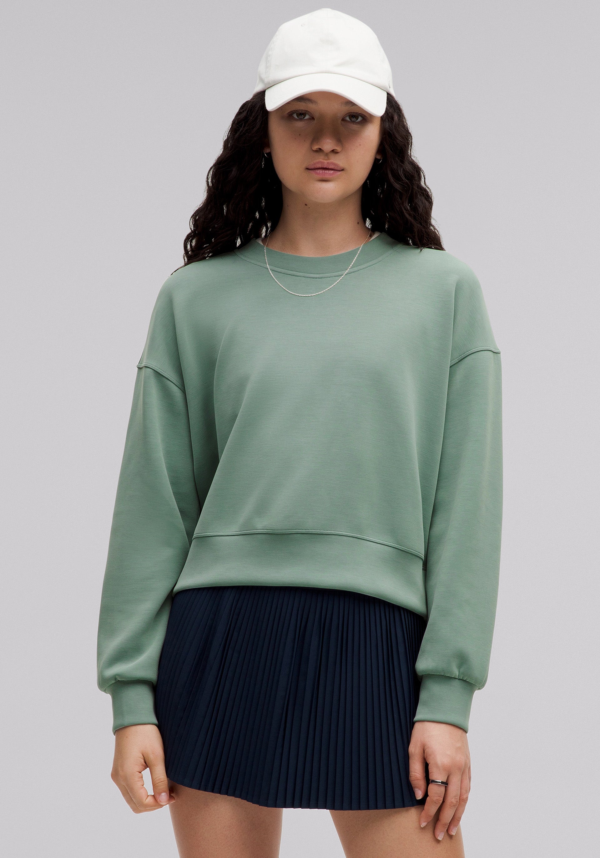 Nothing but love for this perfectly oversized cropped sweatshirt. Super-soft fabric with a matte, peach-fuzz finish make this pullover impossible to take off.