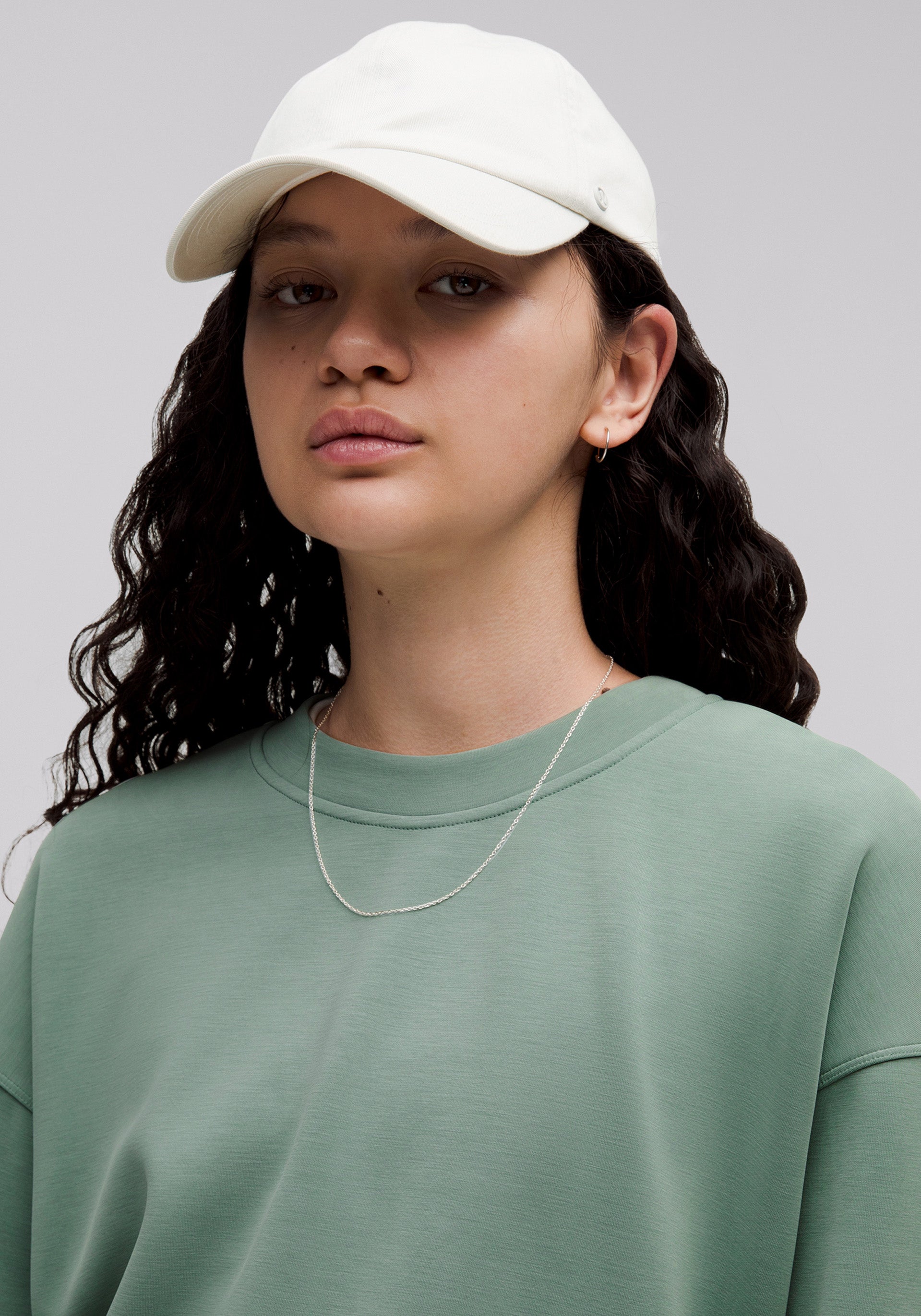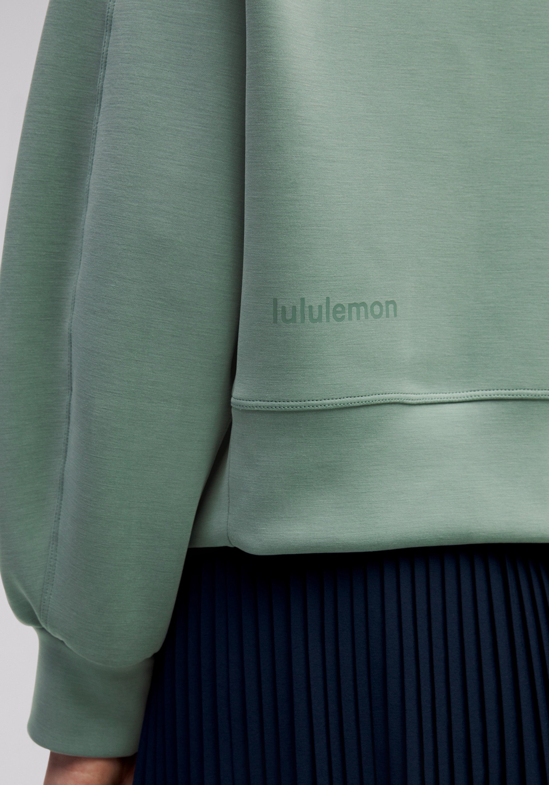 • Drop shoulder, oversized crew neck that sits below the waistband for moderate, everyday coverage