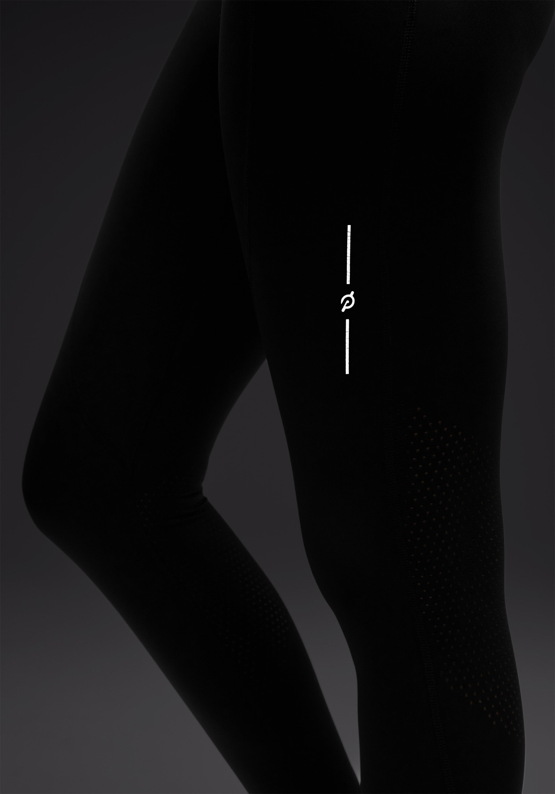 • High rise, 25” inseam legging with side pockets, back yoke placed to avoid chafing, raw hem, and perforation at back knee for breathability
