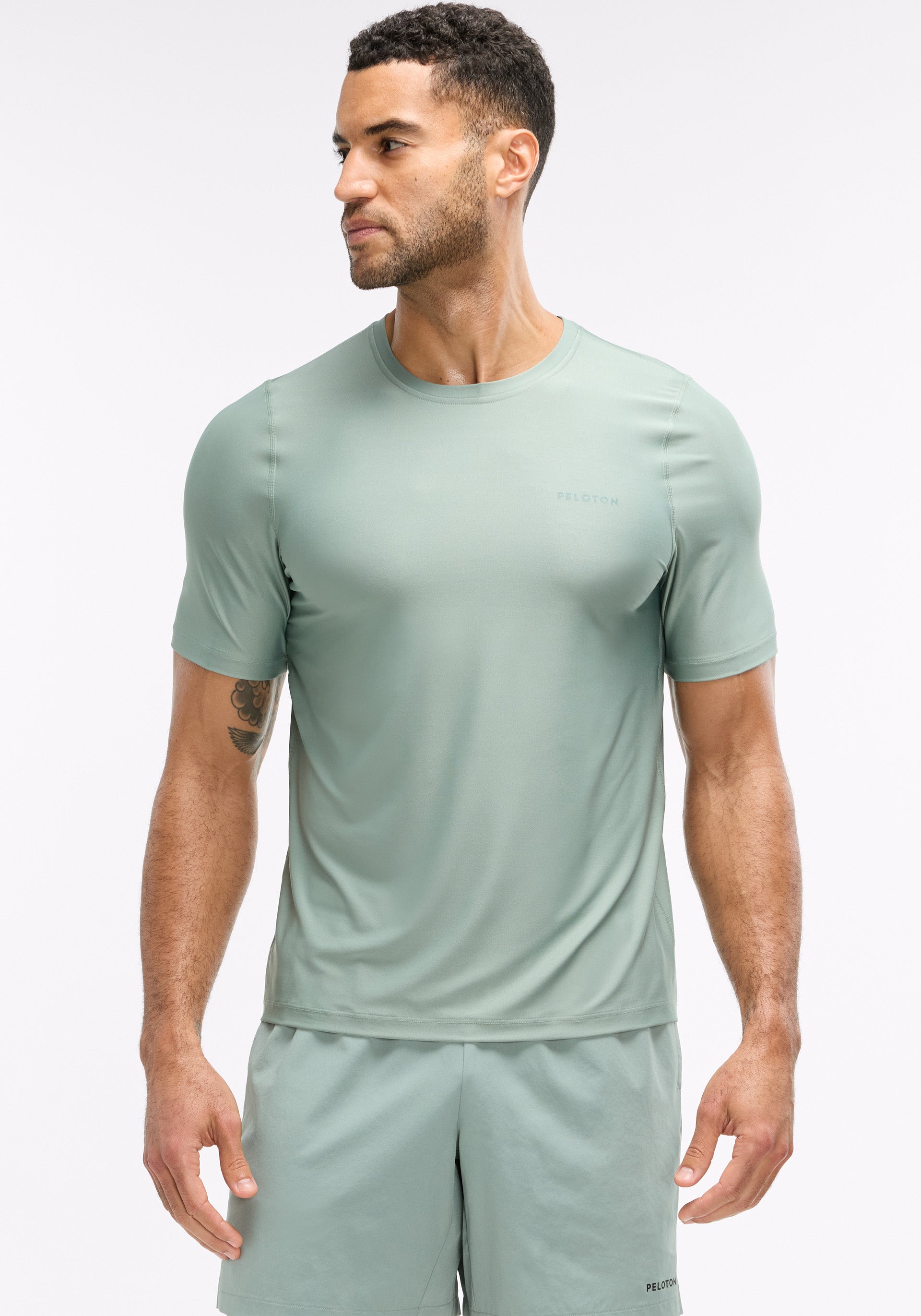 • Crewneck, set-in short sleeve tee with mesh inset at back yoke