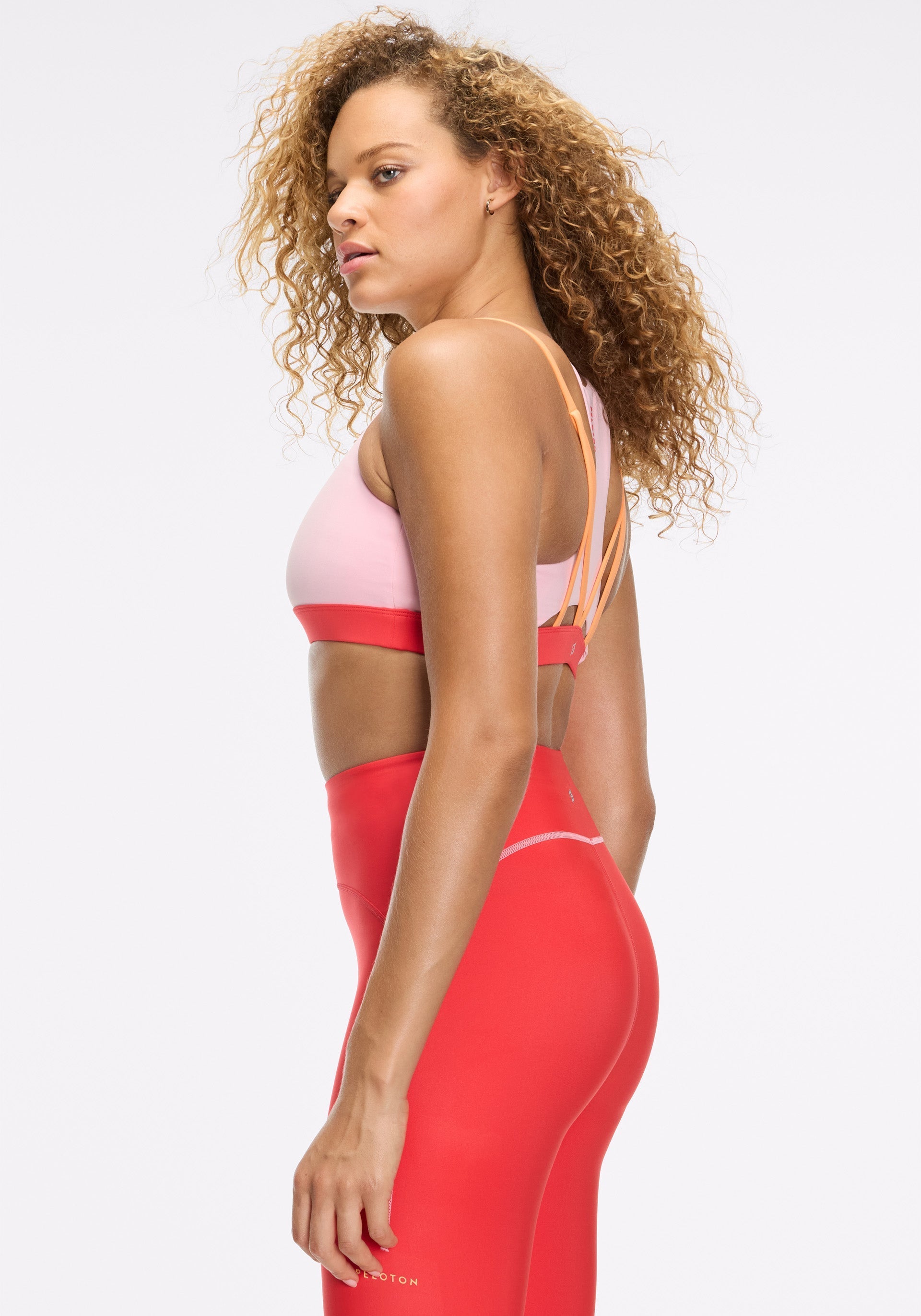 Low-Medium support bra with colorblocking, back strappy detail, and interior cup pockets