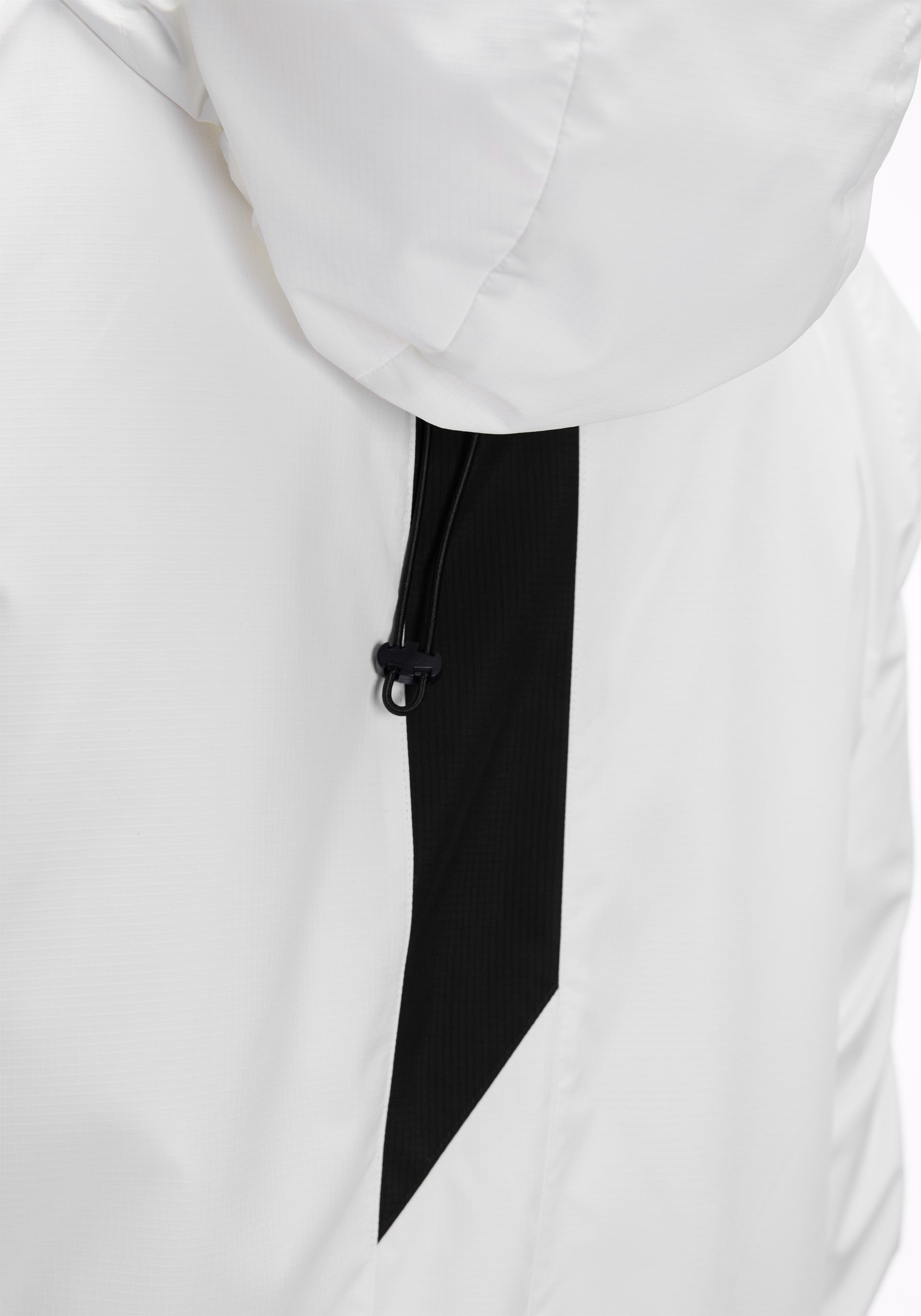 • Full zip jacket with zipper garage, elastic at hem and cuffs, hand pockets, and adjustable velcro and bungee at hoo