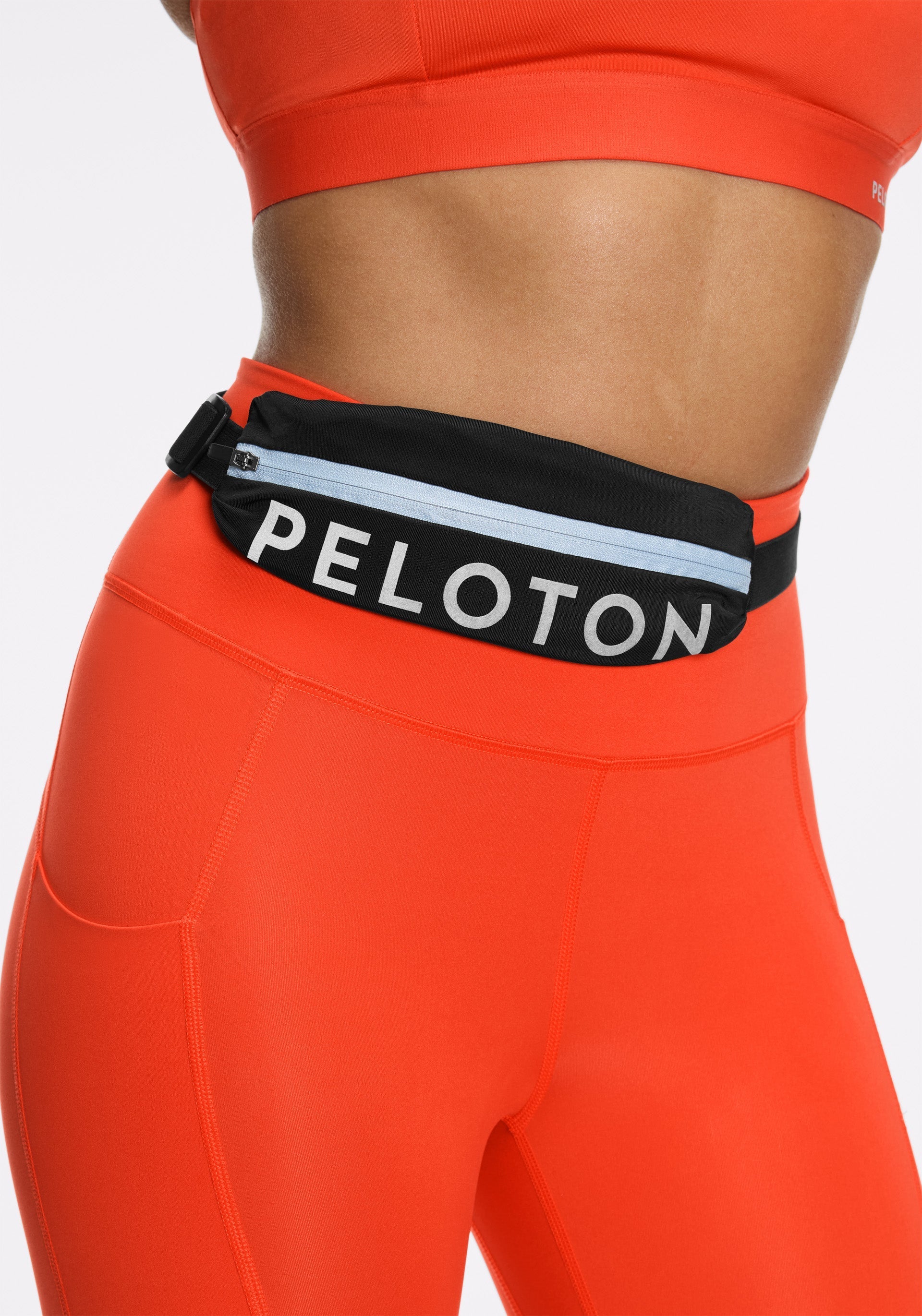 • Run belt with exterior zippered pocket and adjustable belt