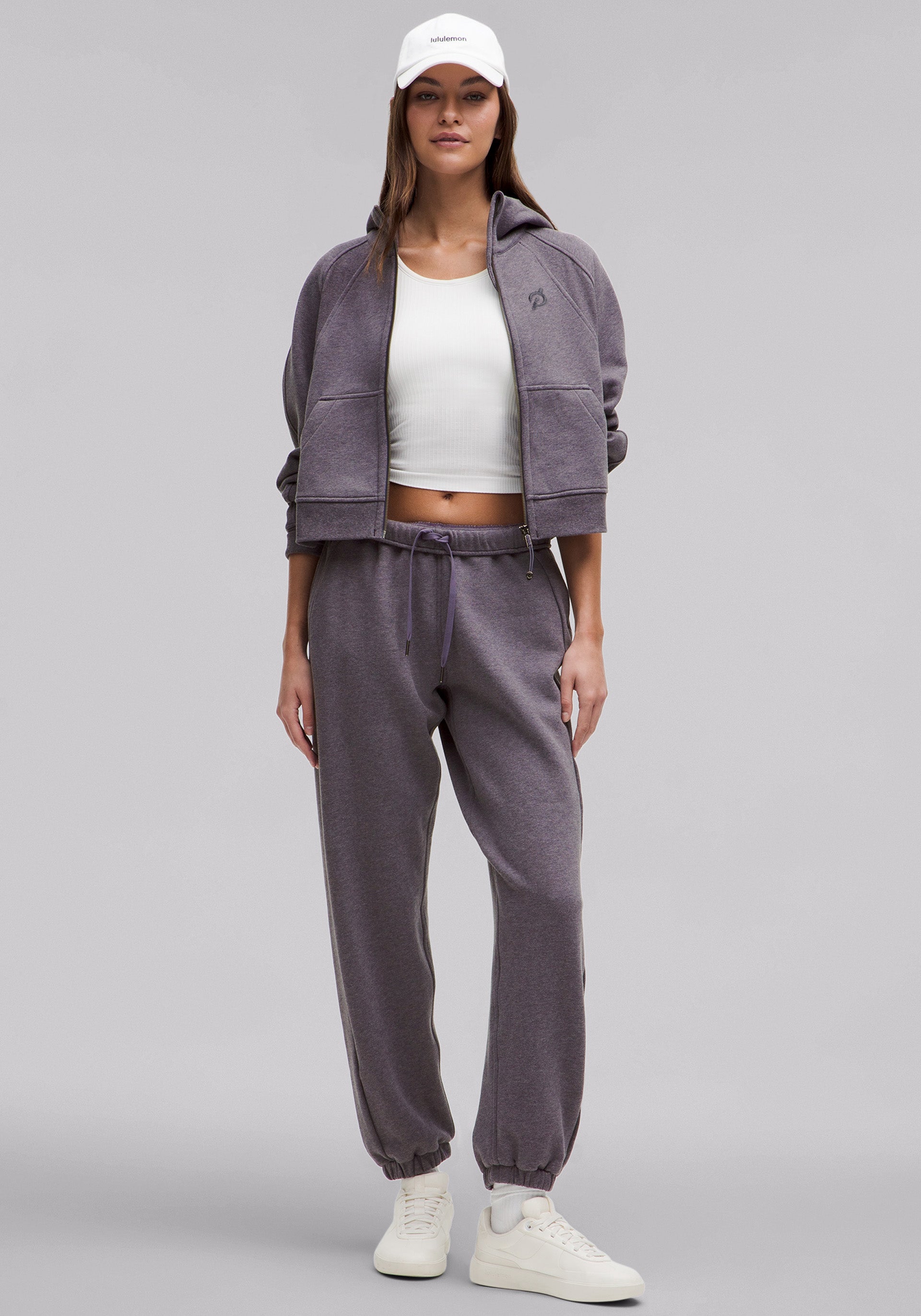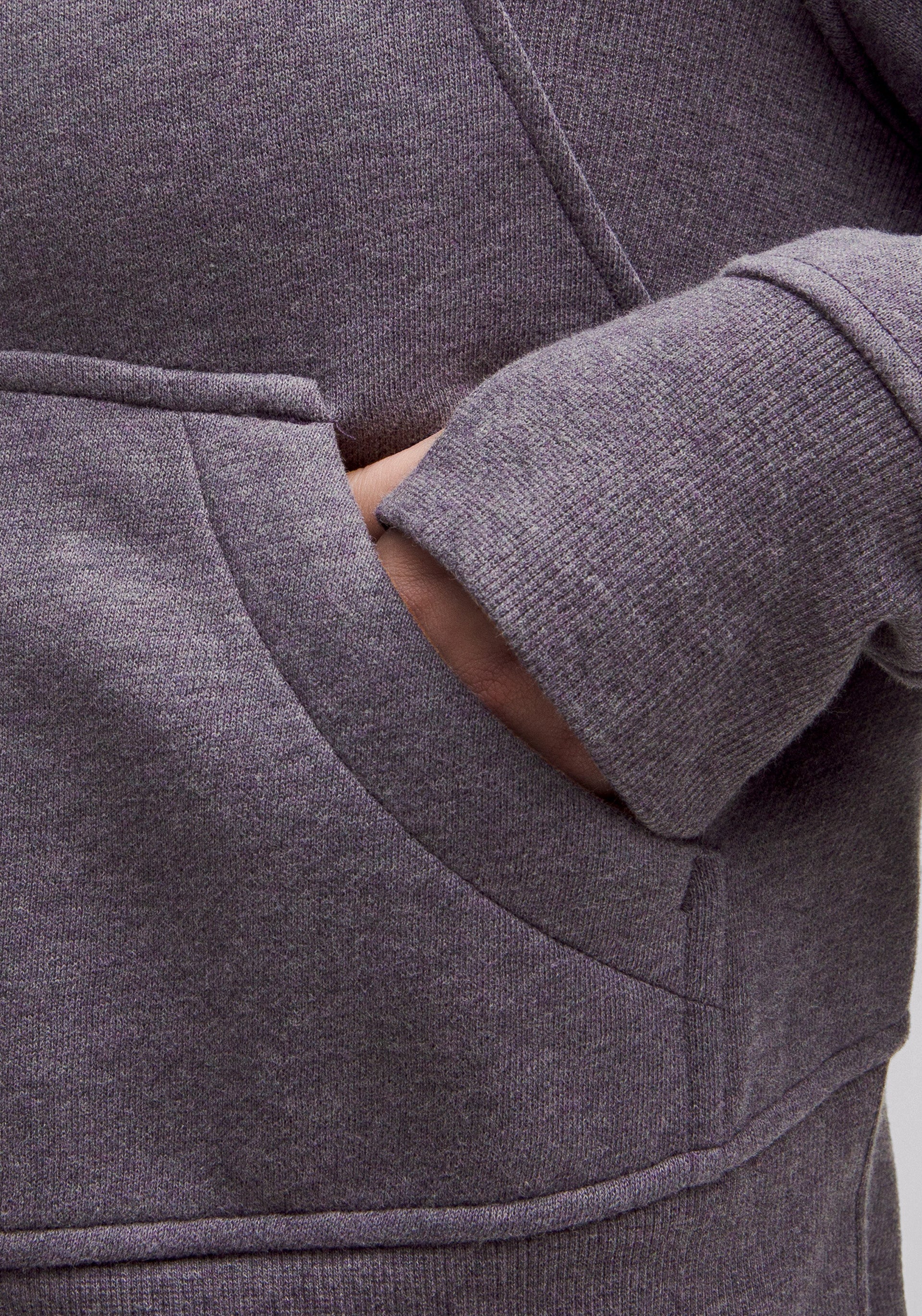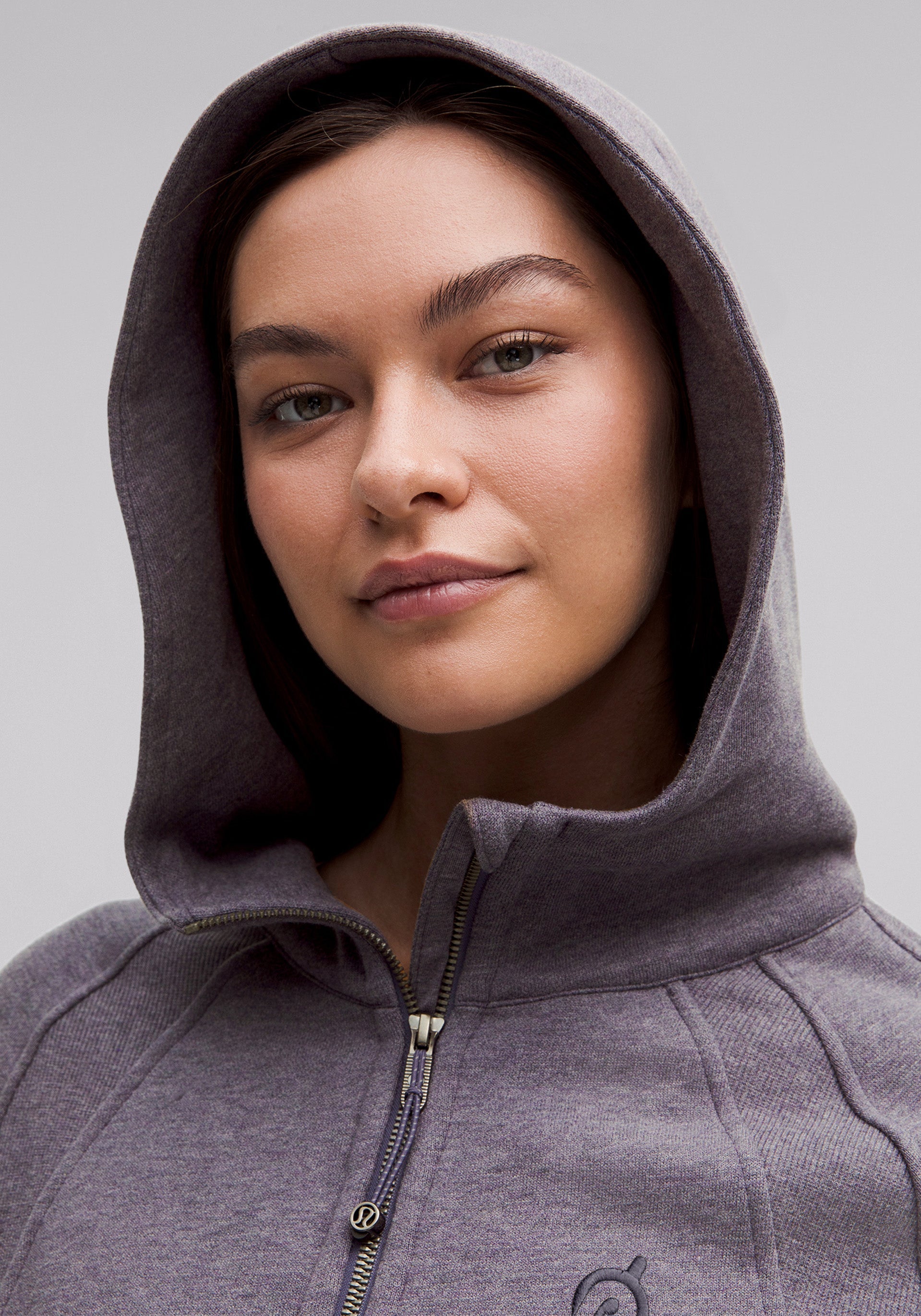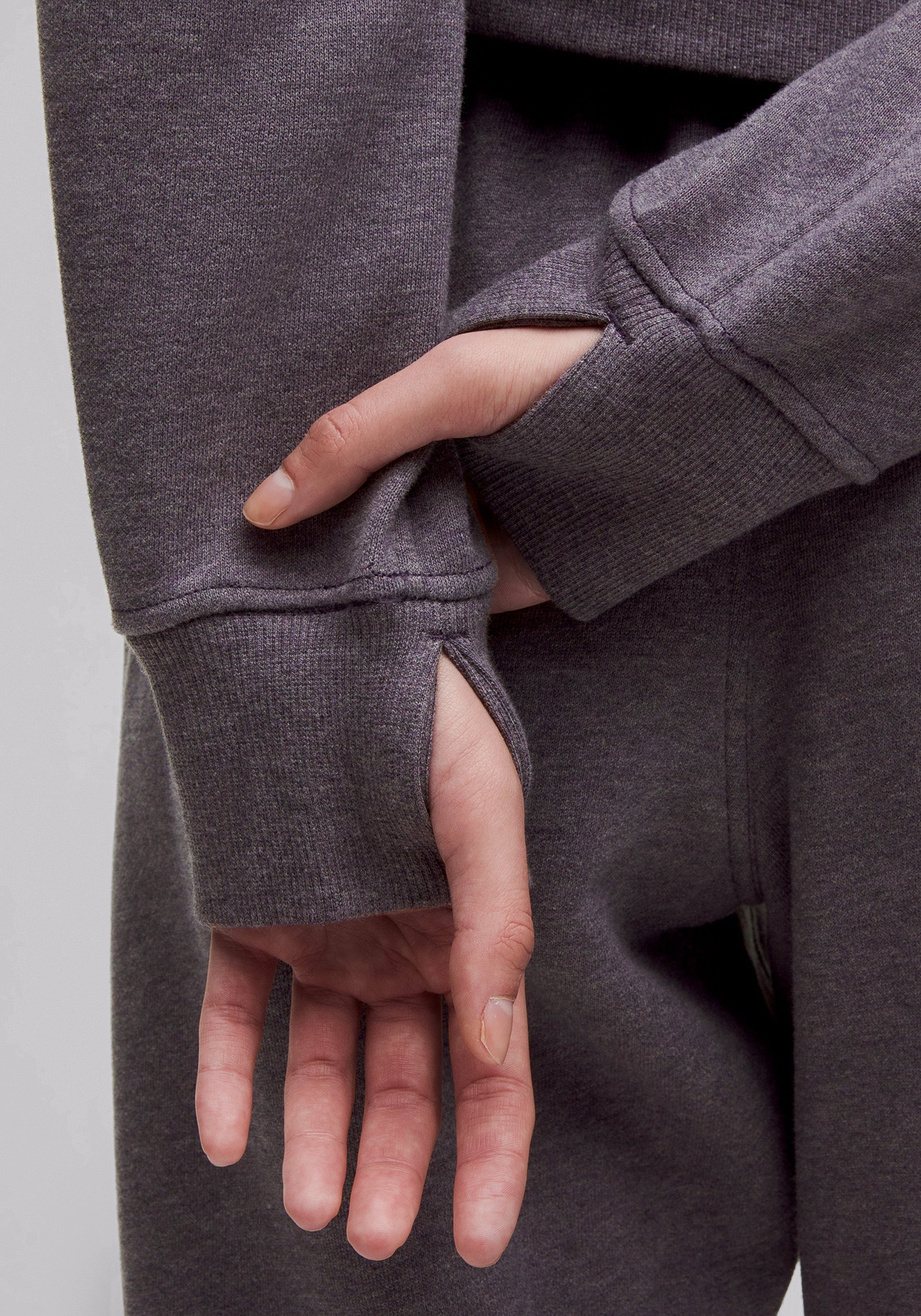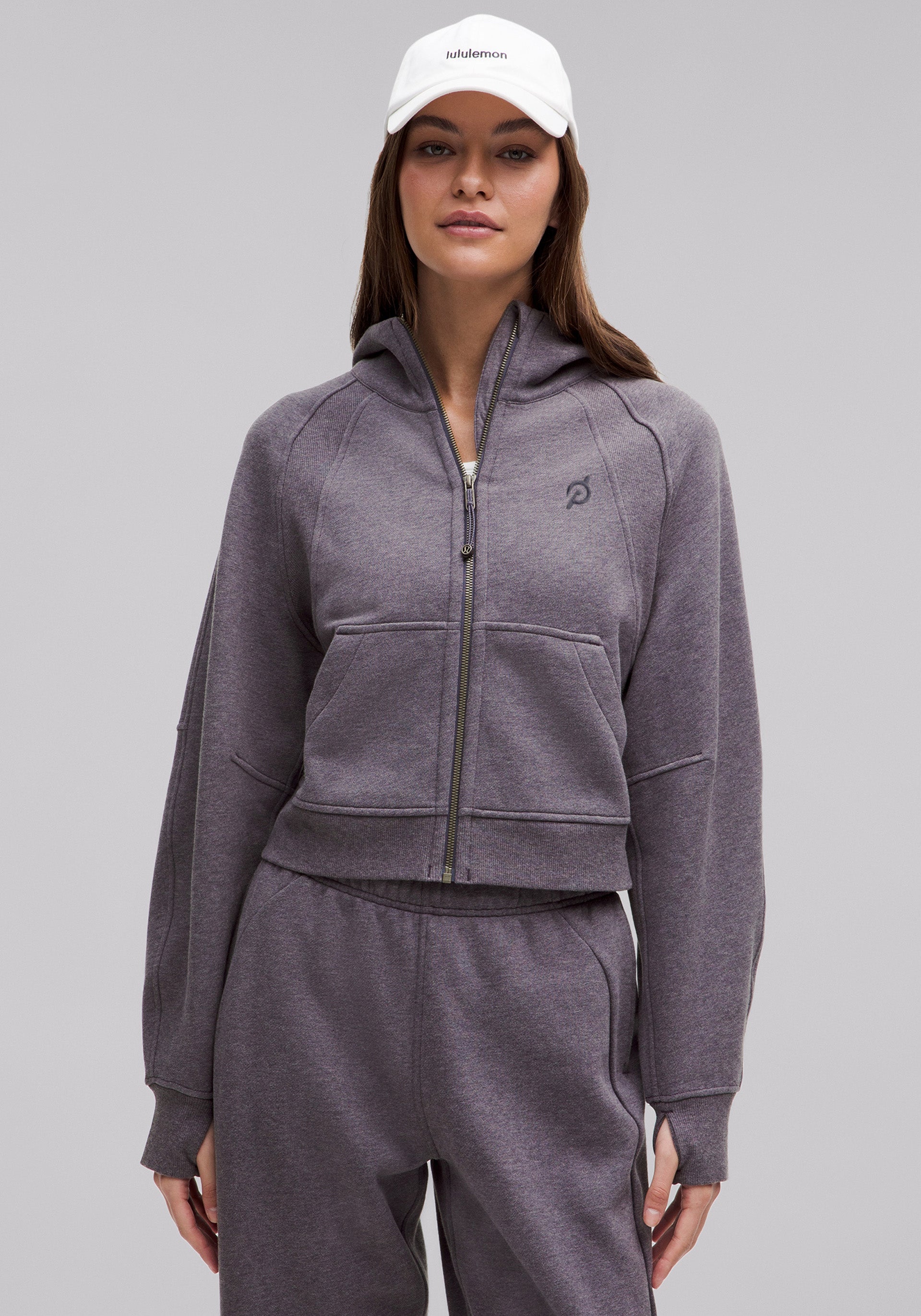 • Full-zip, hooded sweatshirt with elastic zipper pull that doubles as an emergency hair tie, hand pockets with hidden phone sleeve, zipper garage, and thumbholes