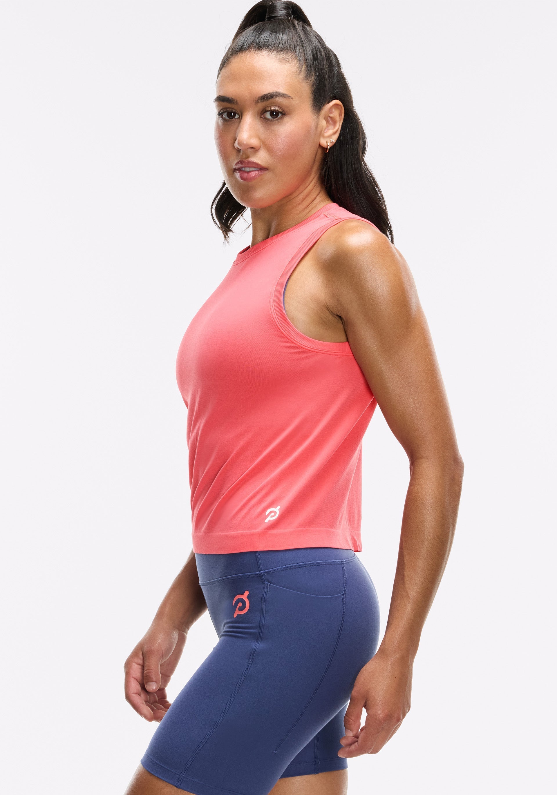 • Peloton logo at bottom left hem
