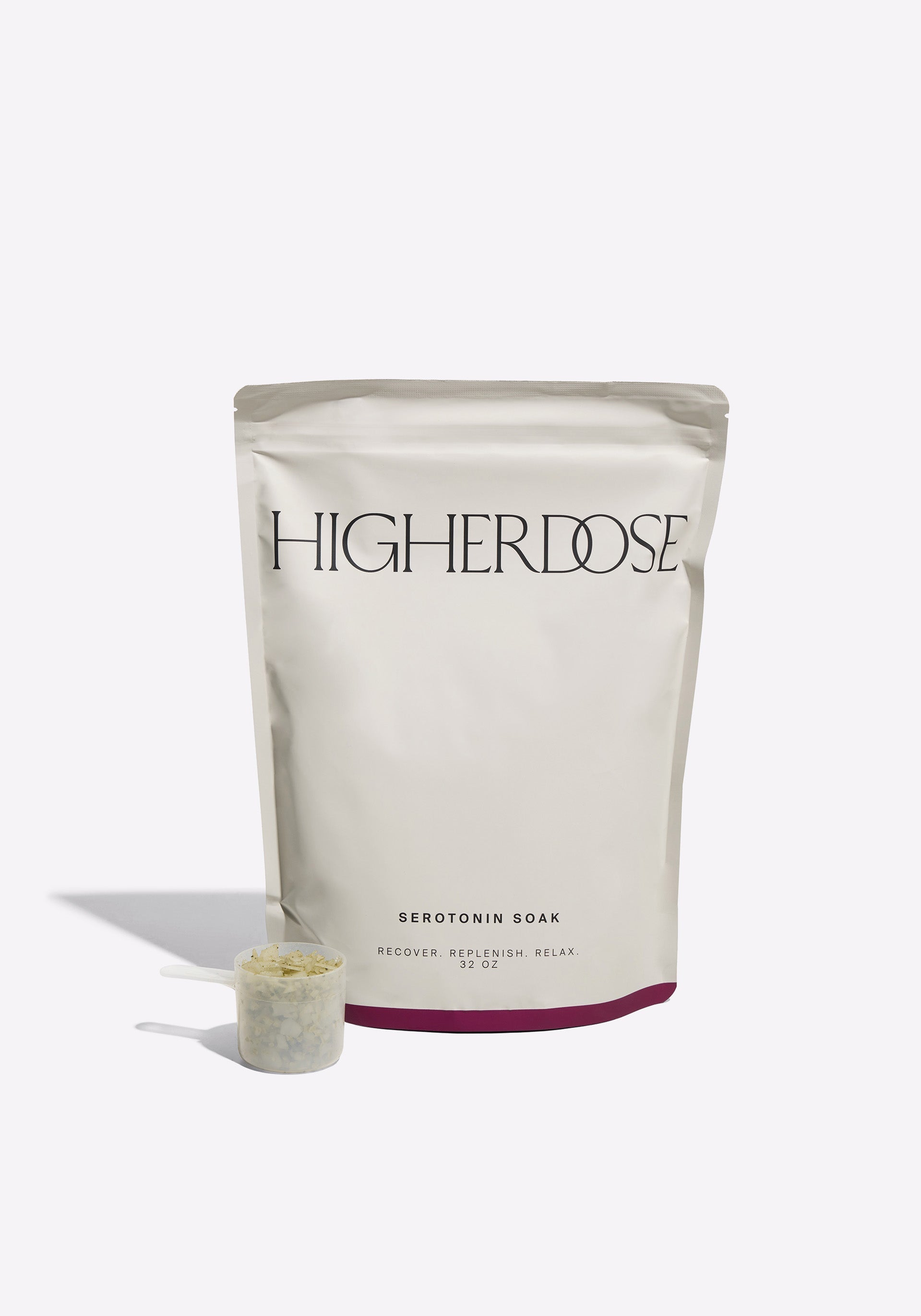 Draw a hot bath and drop in four scoops (8oz) of SEROTONIN SOAK.
