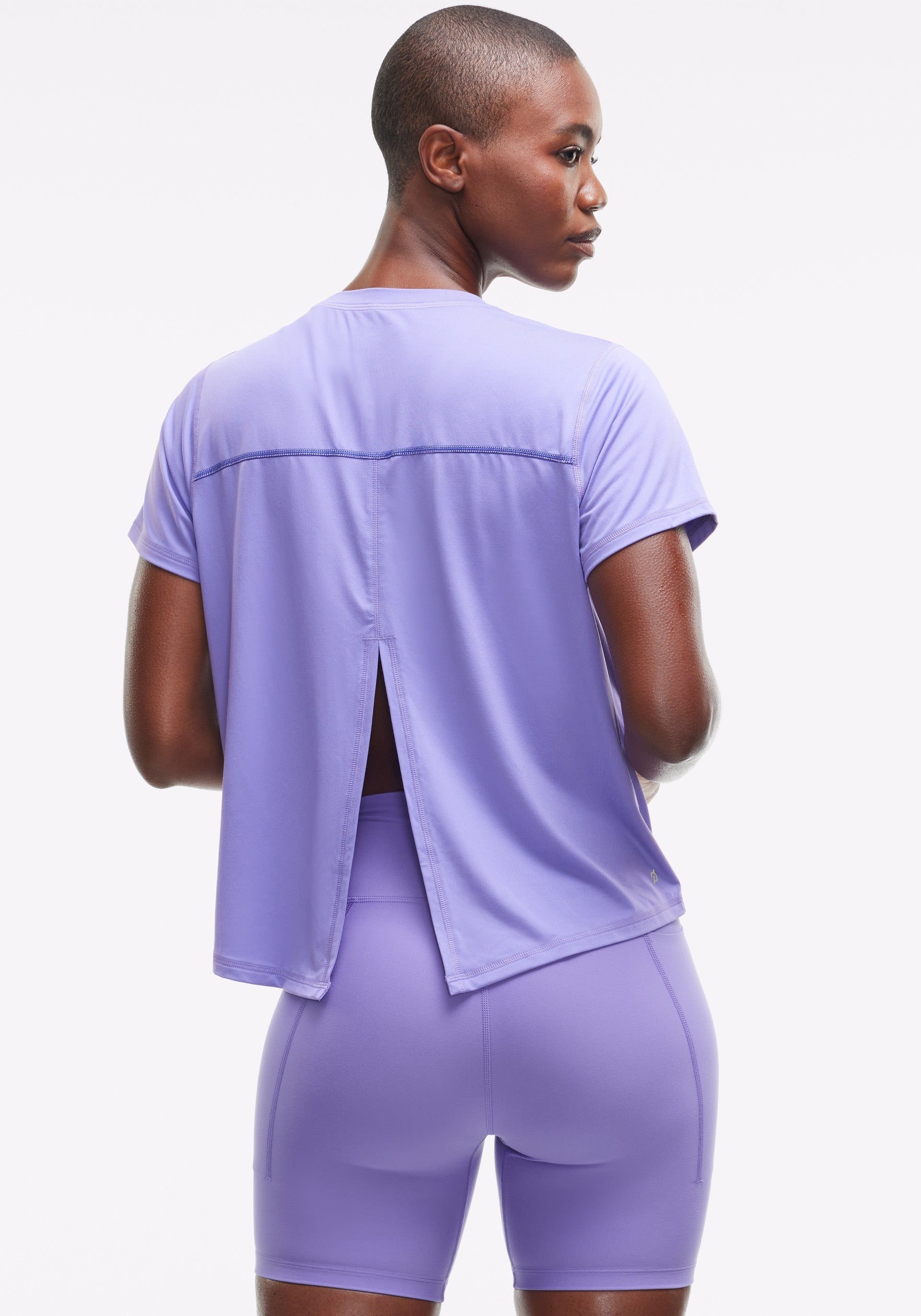 • Crewneck short sleeve with splice back detailing for added ventilation and pop stitch detail at back
