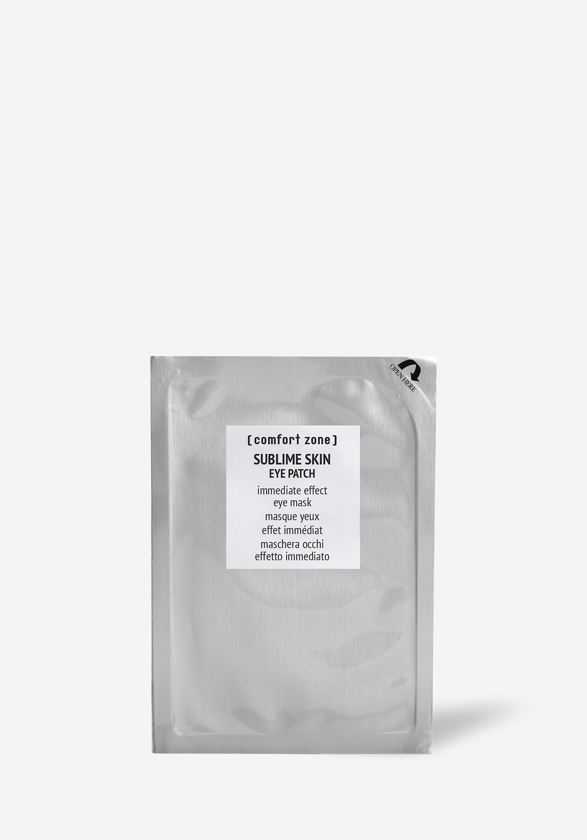 Need a quick and effective solution for tired, dull eyes? Try [ comfort zone's] new hydrogel patches enriched with caffeine and Fucus vesiculosus plant extract to brighten and freshen the eye area instantly. It reduces the visibility of wrinkles and puffiness for a visibly smoother and younger-looking eye contour. Suitable for tired eyes with wrinkles, puffiness, and dark circles. Ultra-fresh, pleasant, and easy to use. Formulated with peptides for an intensive effect that gives immediate vitality to the eye area and visibly corrects in just a few minutes.