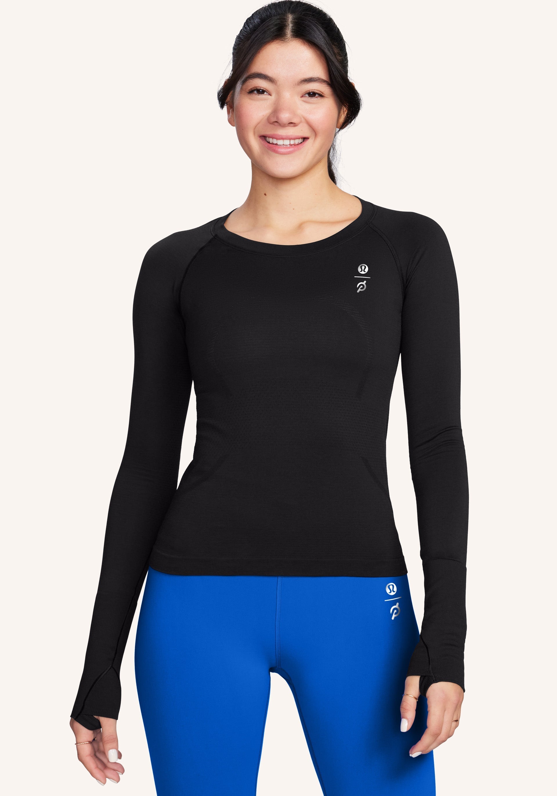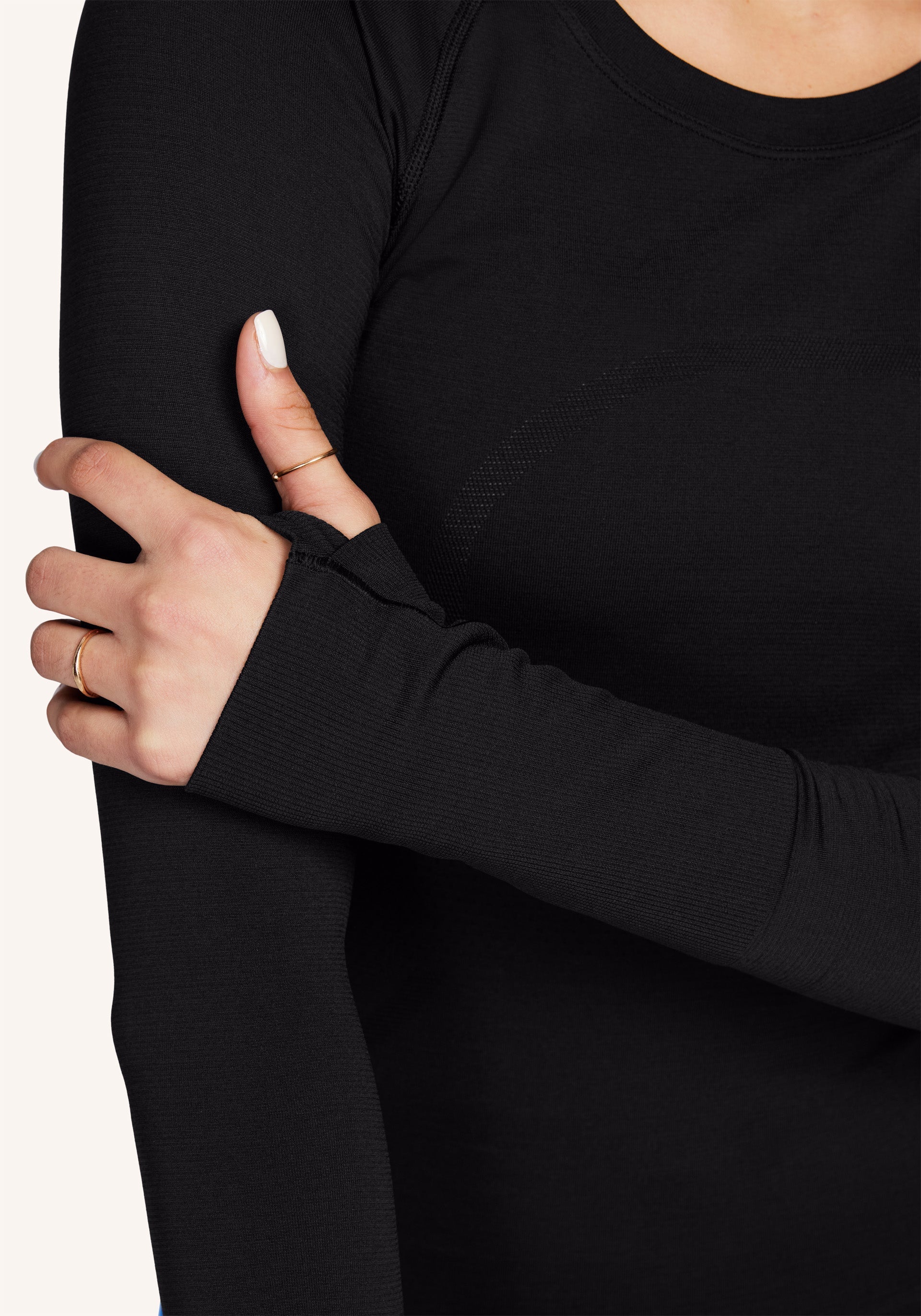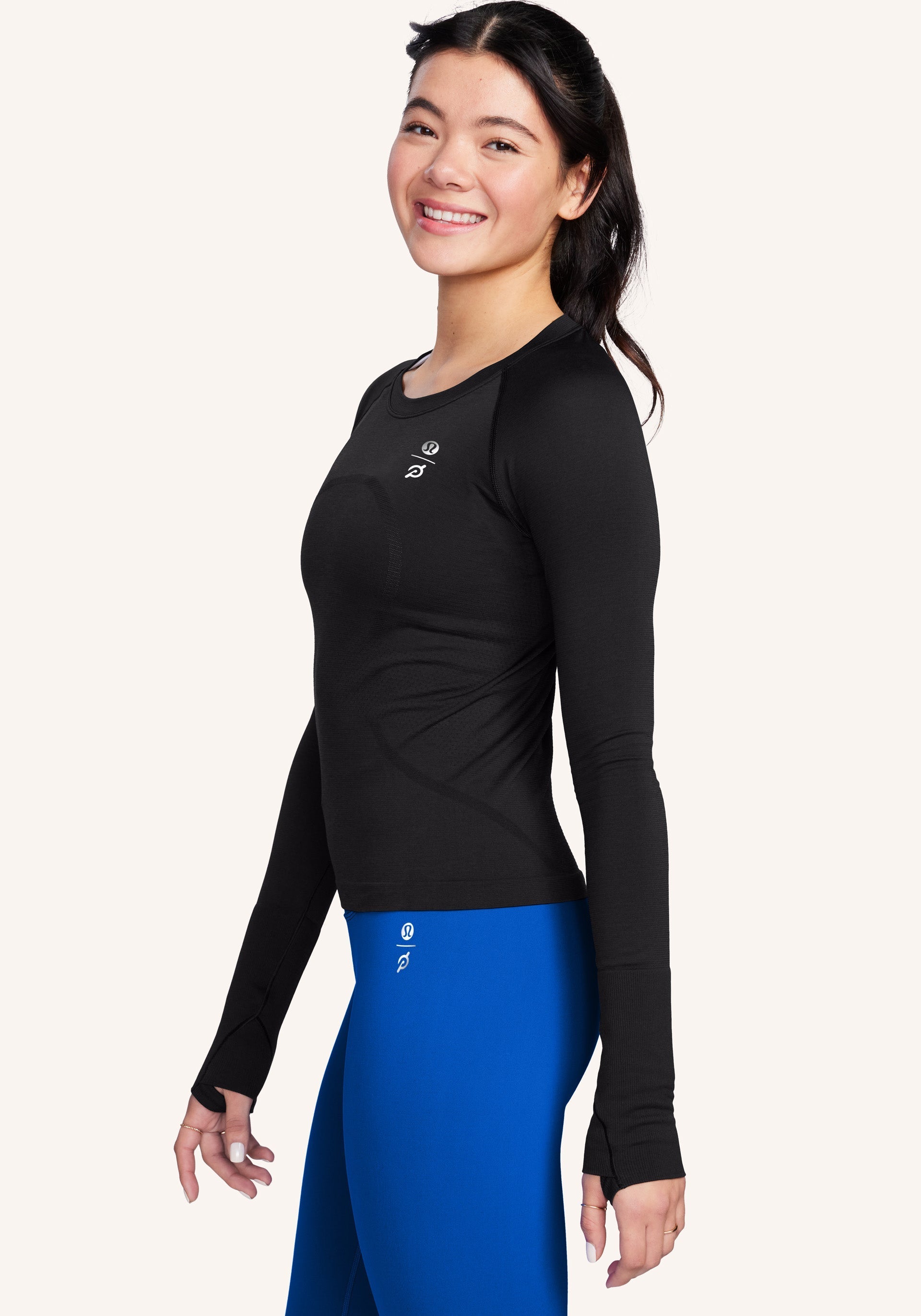 • Slim fit, seamless long sleeve that meets at your waistband so it won't ride up on long runs or race day