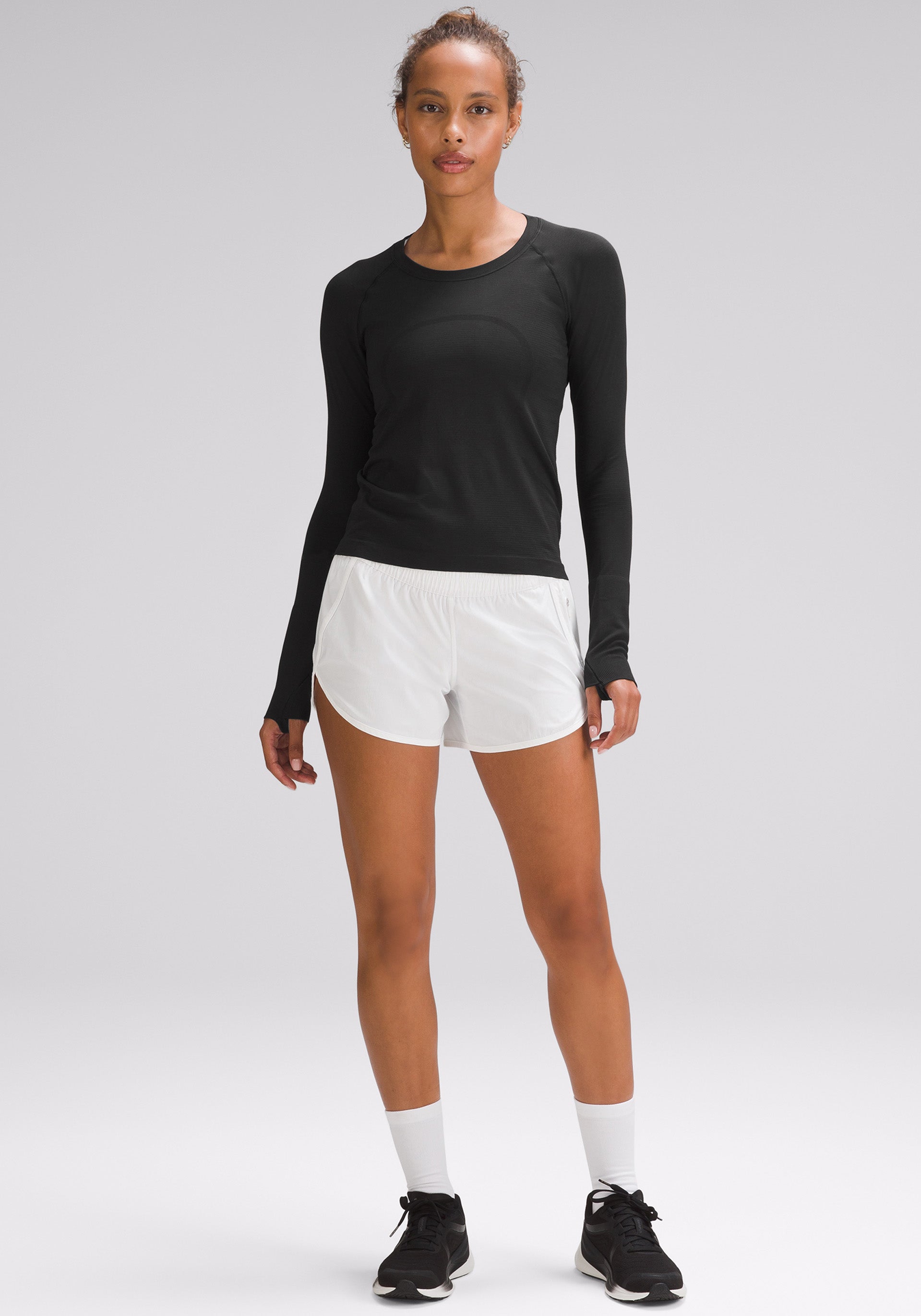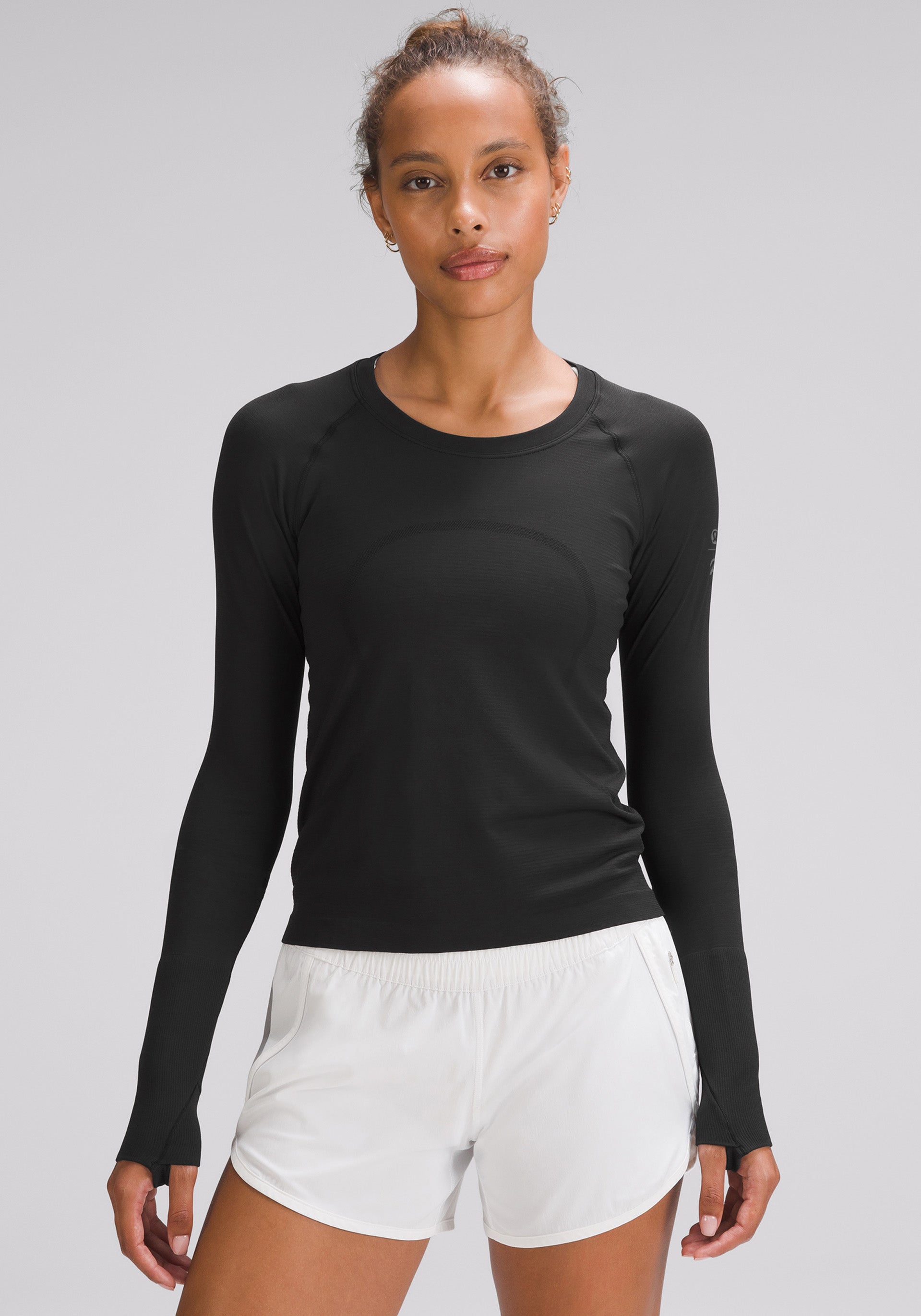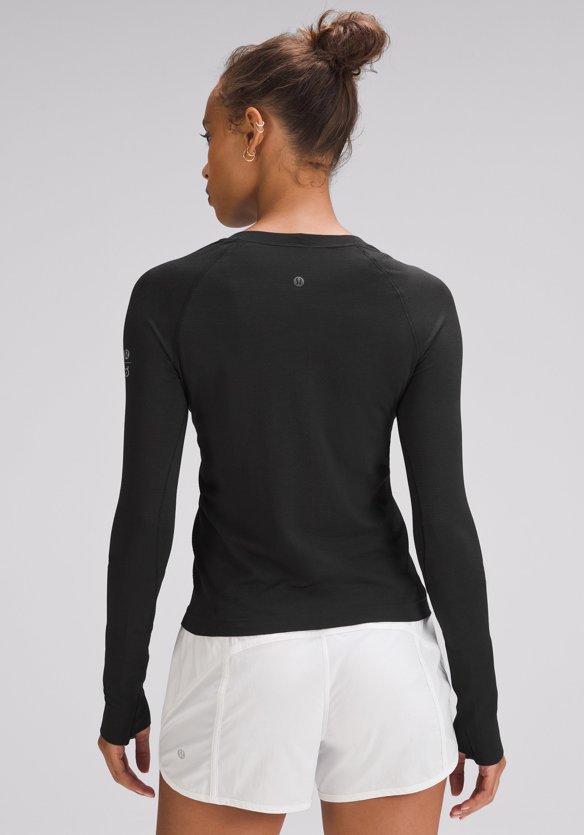 Slim fit, seamless long sleeve that meets at your waistband so it won't ride up on long runs or race day