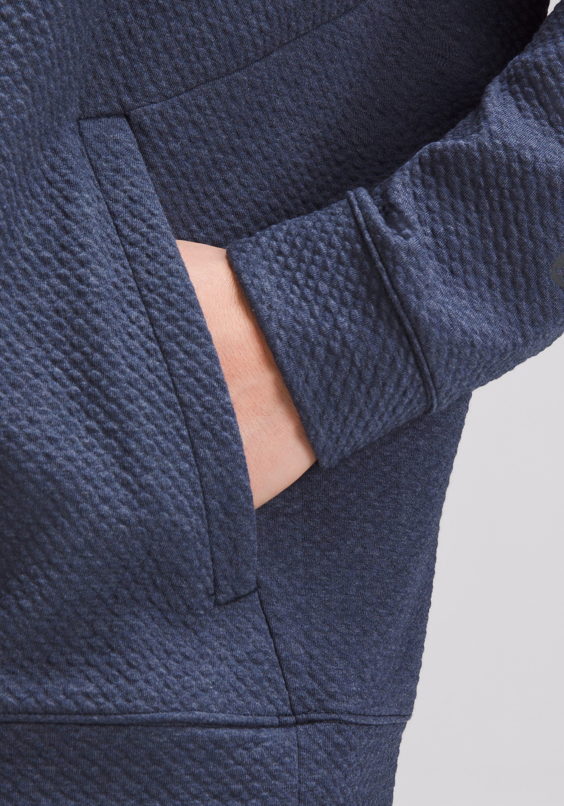 • Textured, double knit hoodie with underarm gusset for greater mobility, secure zippered pockets to store your phone and cards, and center-back tape doubling as a locker loop