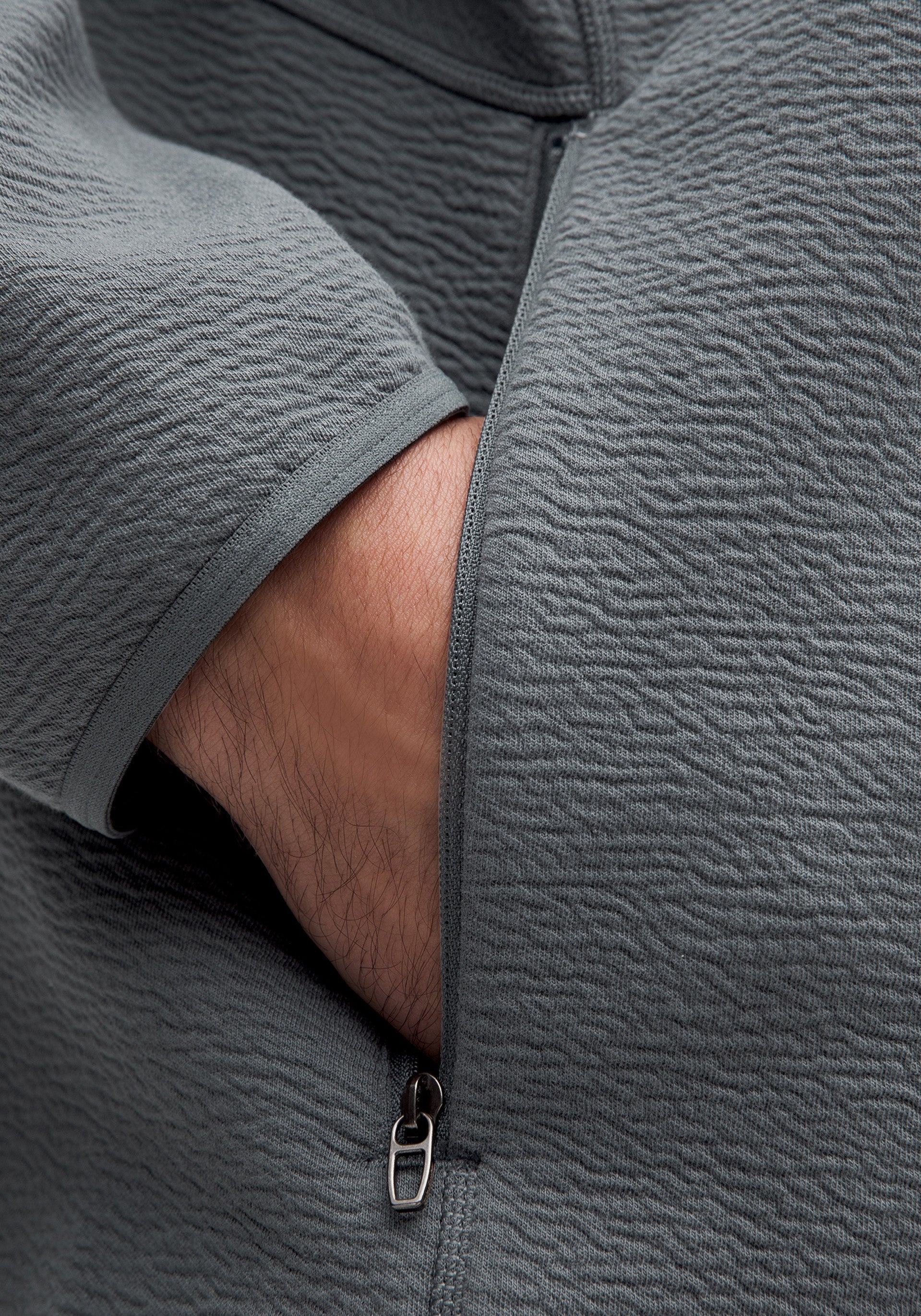 • Technical comfort at its finest. This anorak uses spacer construction to create a warm, lofty fabric that feels soft and has a slightly structured look.