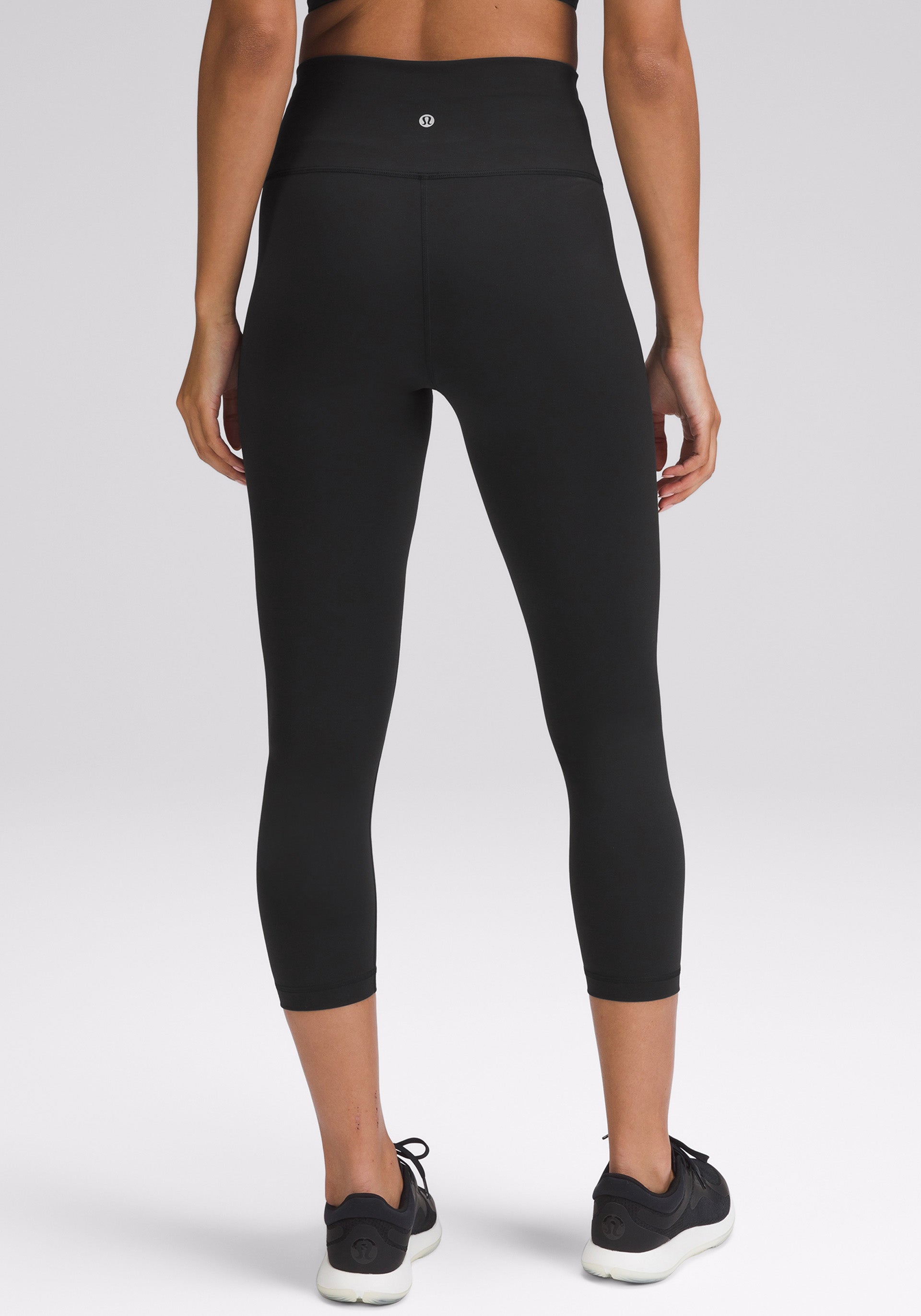 High Rise, 23” inseam crop with waistband drawcord to keep your leggings in place and a hidden pocket in the waistband for your card and keys.